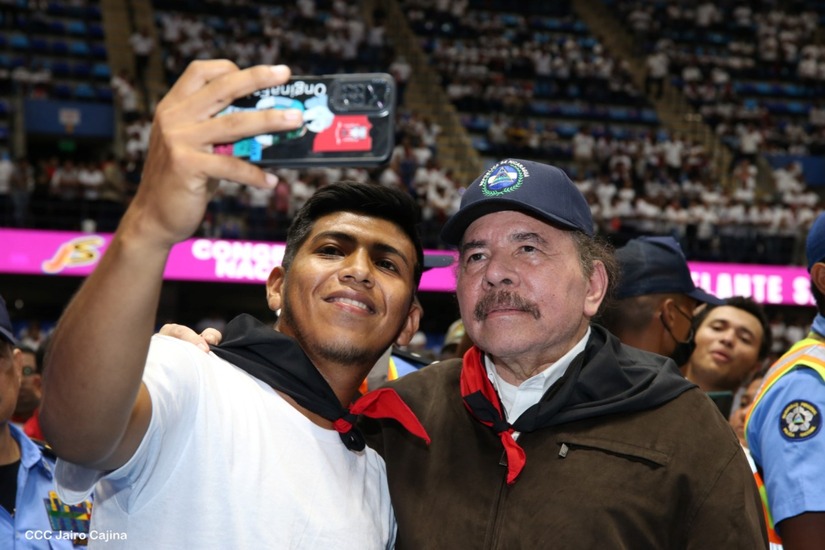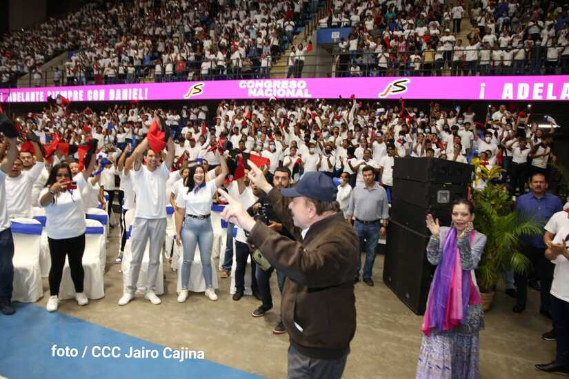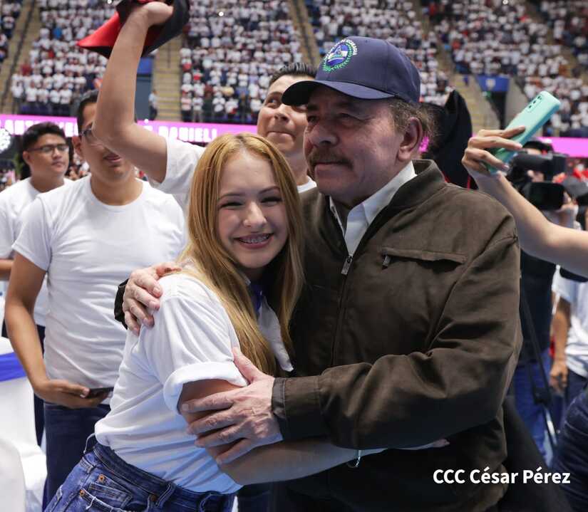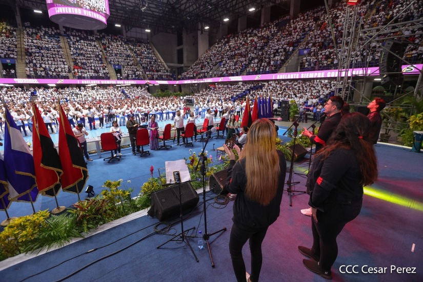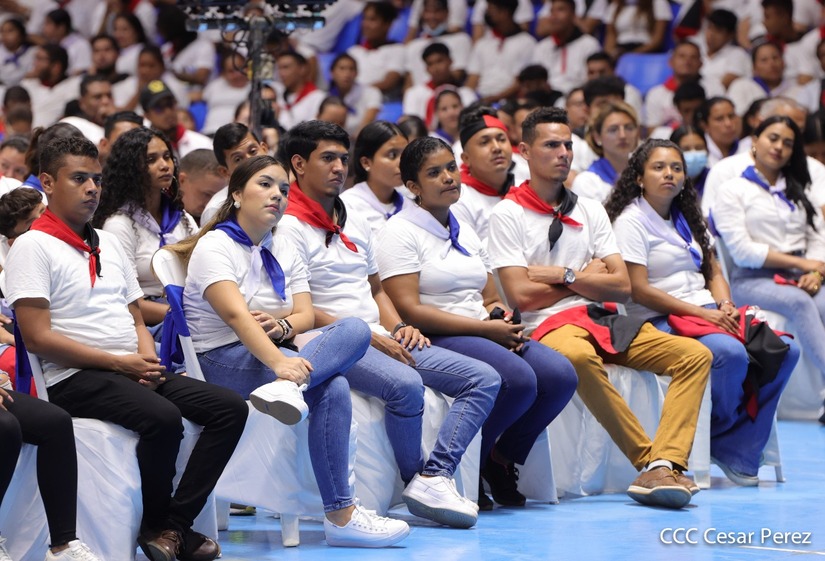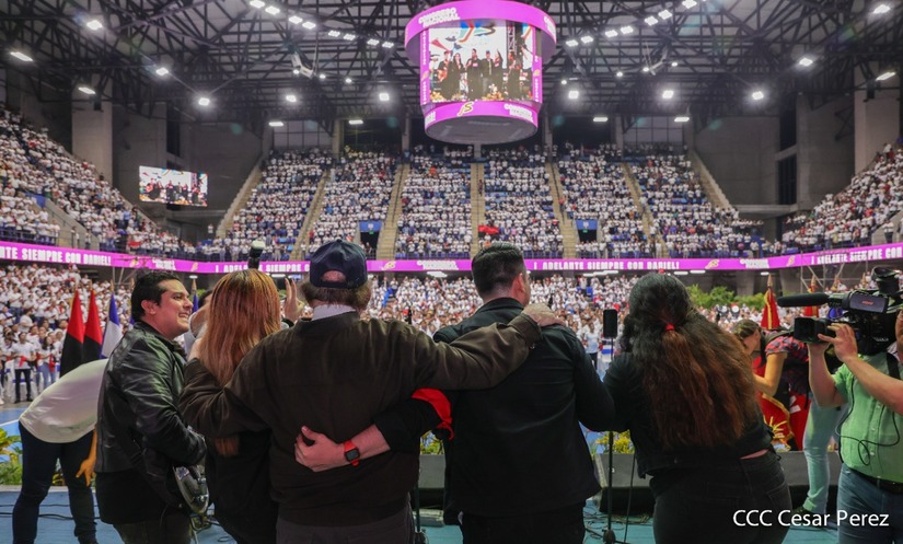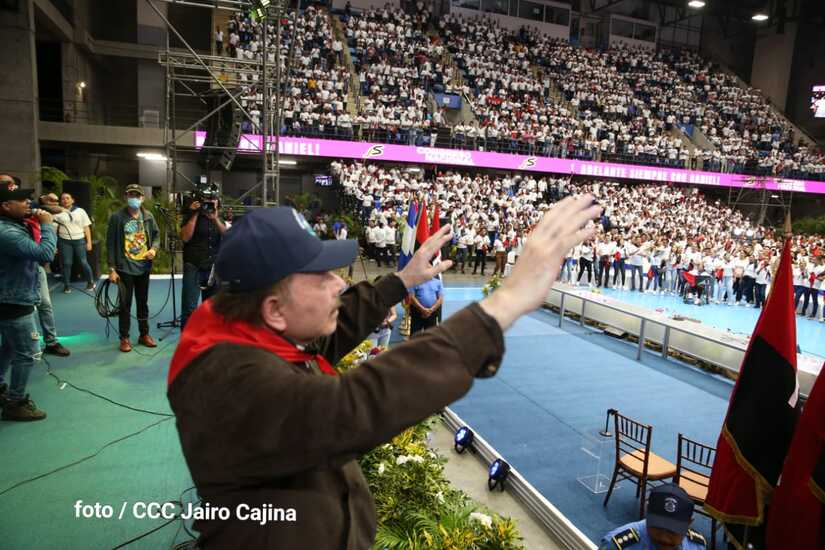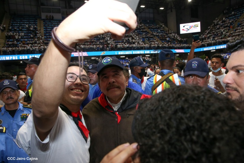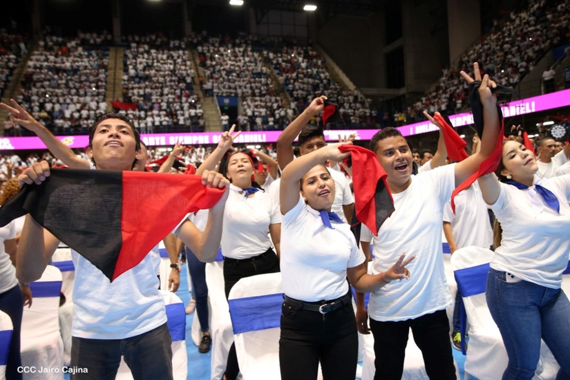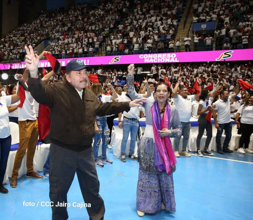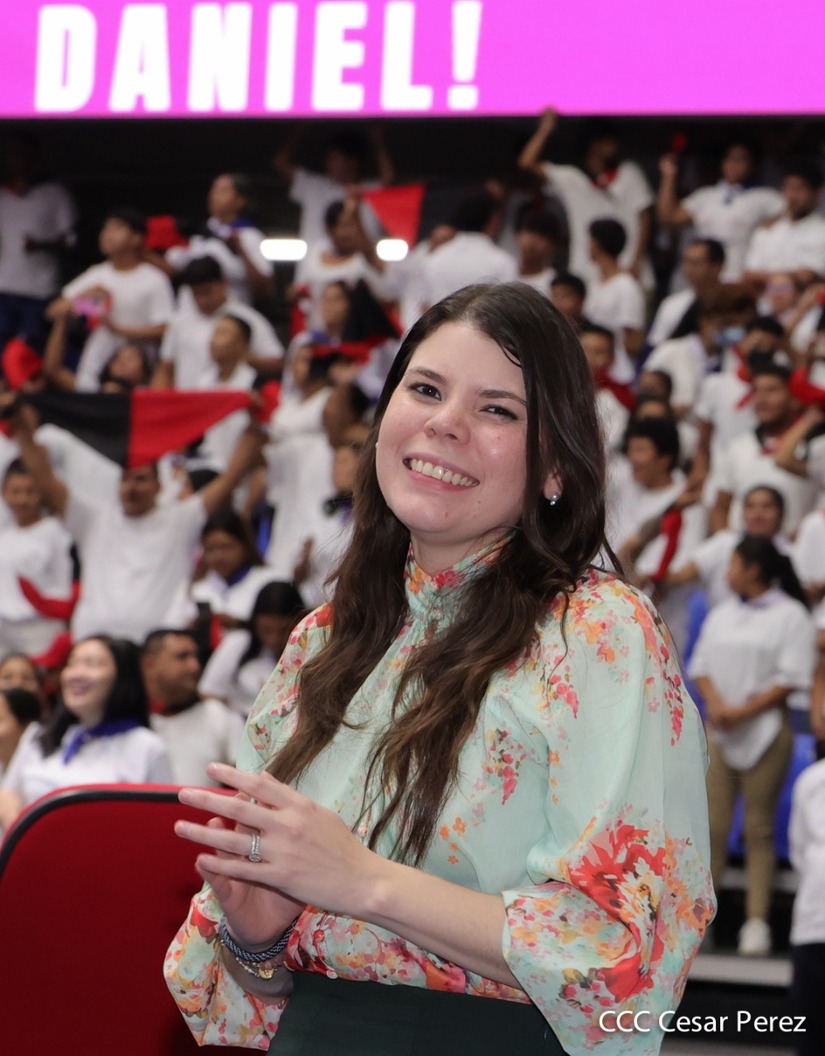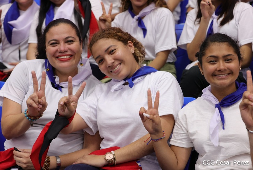 El Presidente Comandante Daniel Ortega y la Vicepresidenta Compañera Rosario Murillo participan en la clausura del Congreso Nacional de la Juventud Sandinista desde el Polideportivo Alexis Argüello.