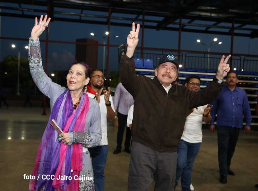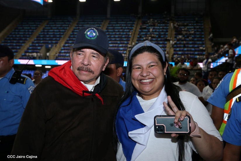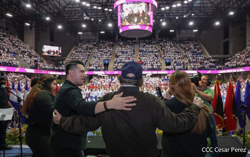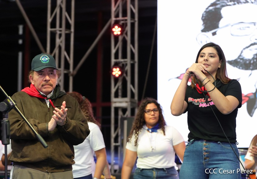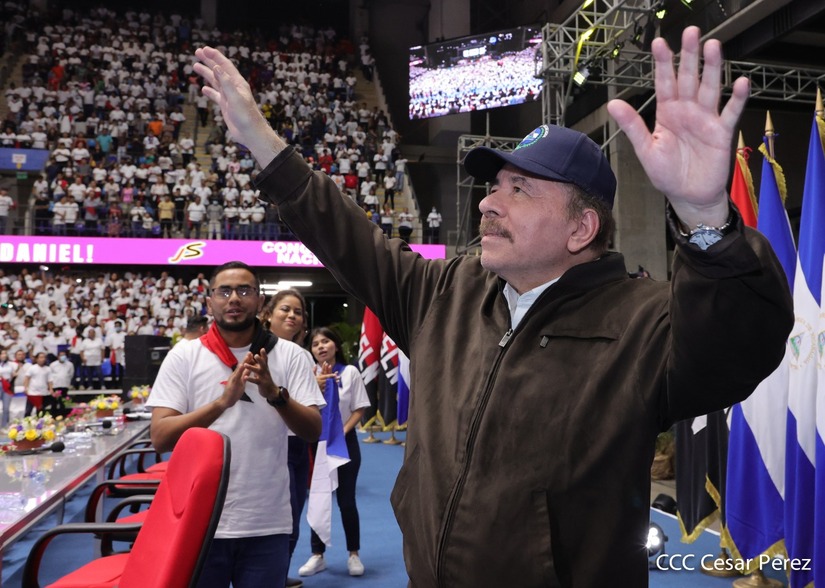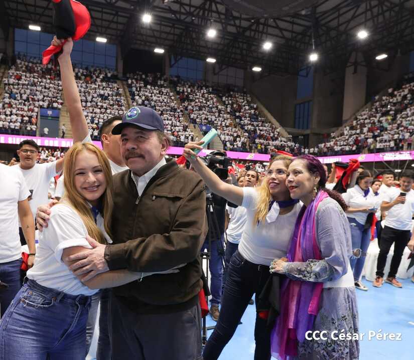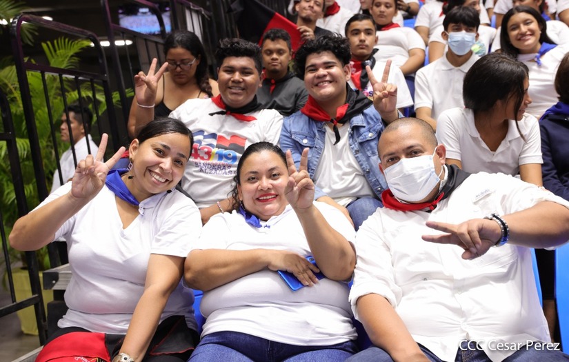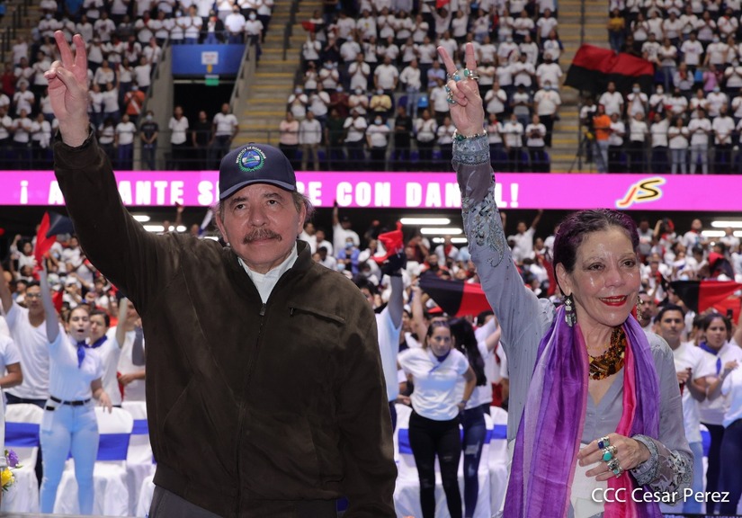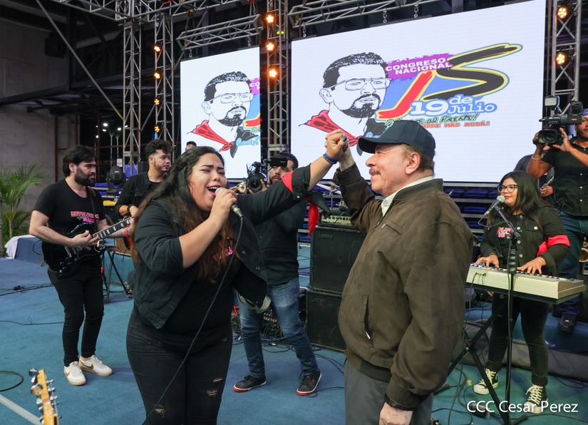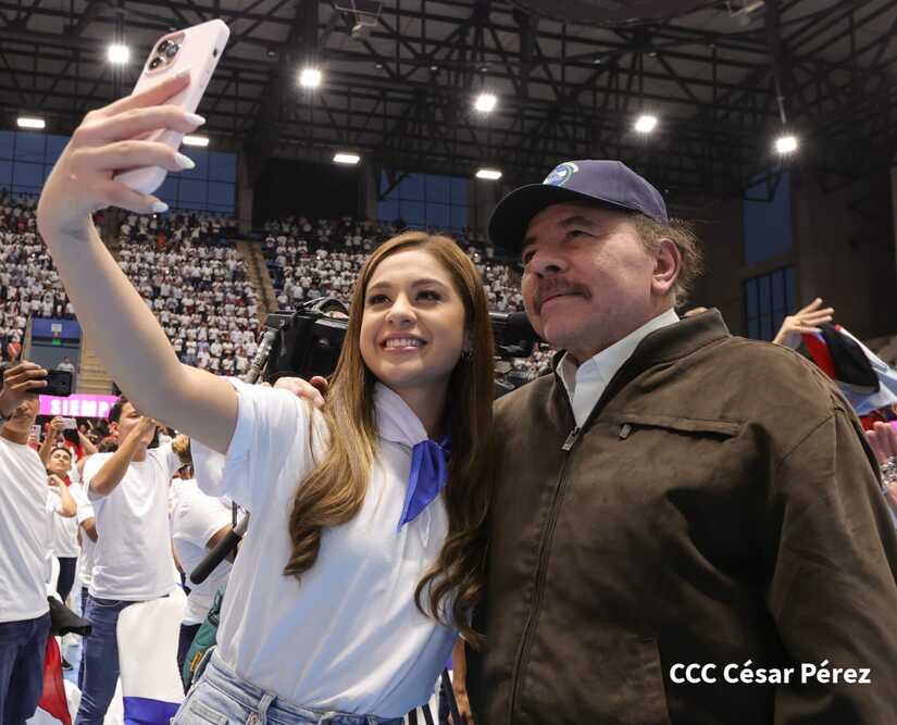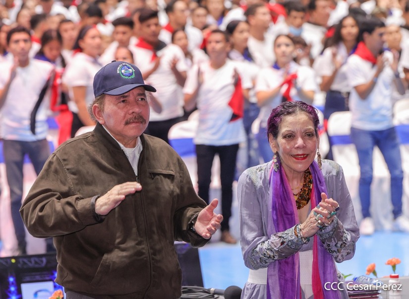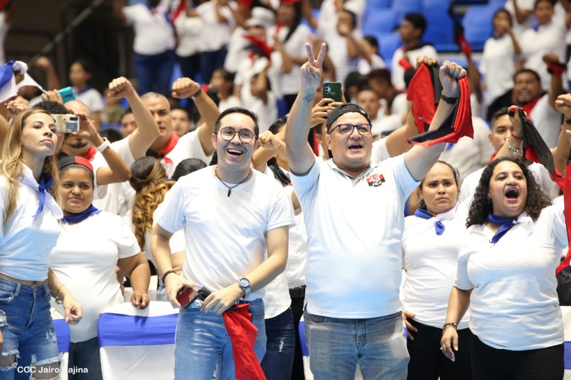 El Presidente Comandante Daniel Ortega y la Vicepresidenta Compañera Rosario Murillo participan en la clausura del Congreso Nacional de la Juventud Sandinista desde el Polideportivo Alexis Argüello.