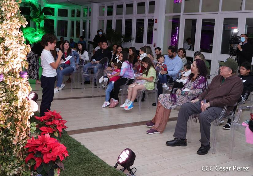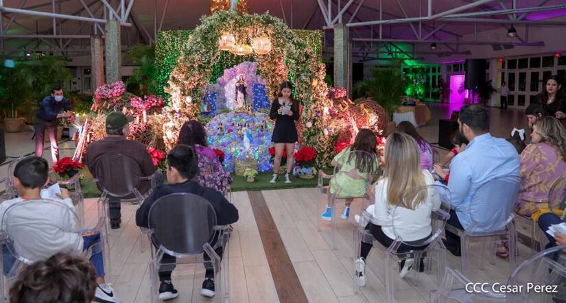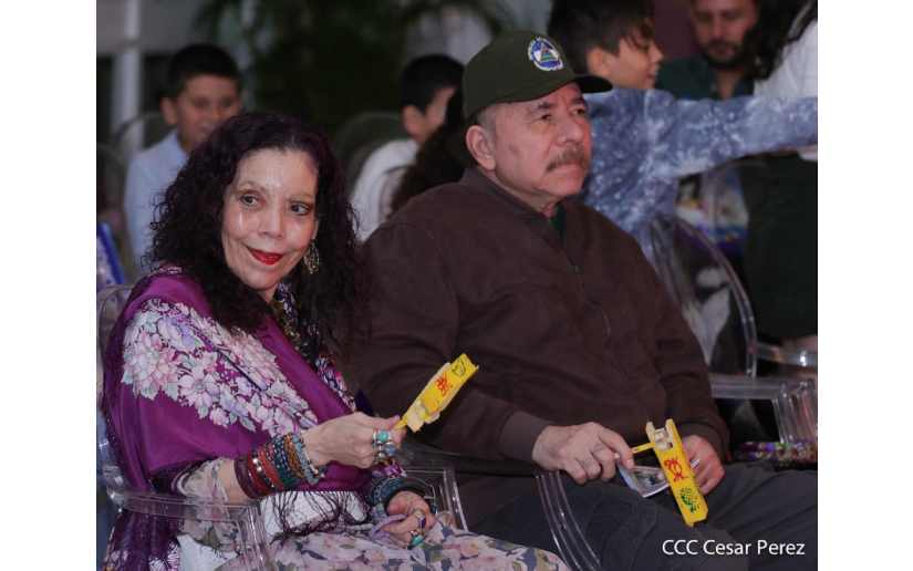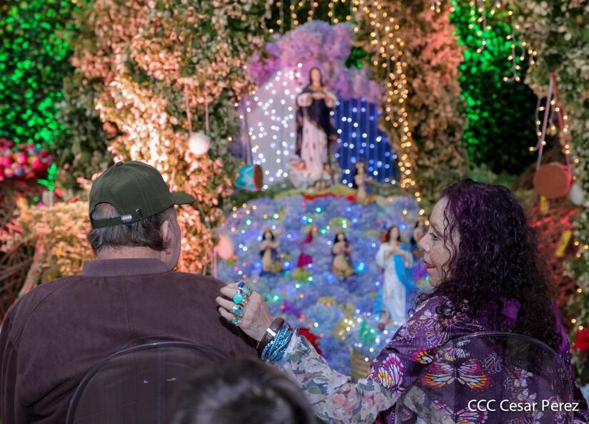 El Presidente Comandante Daniel Ortega y la Vicepresidenta Compañera Rosario Murillo, junto a sus hijos y nietos le cantaron con fervor y devoción a la Inmaculada Concepción de María, conocida también como la Purísima.