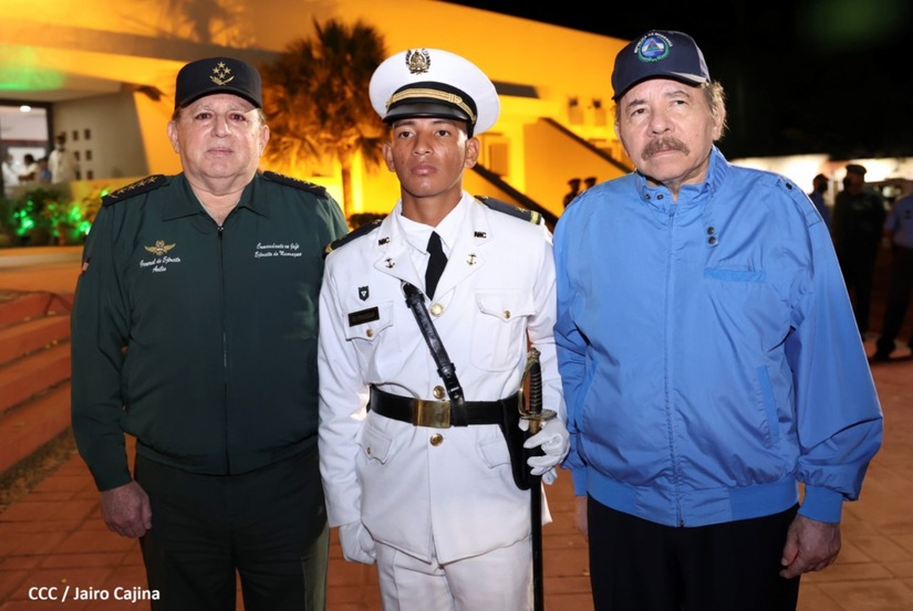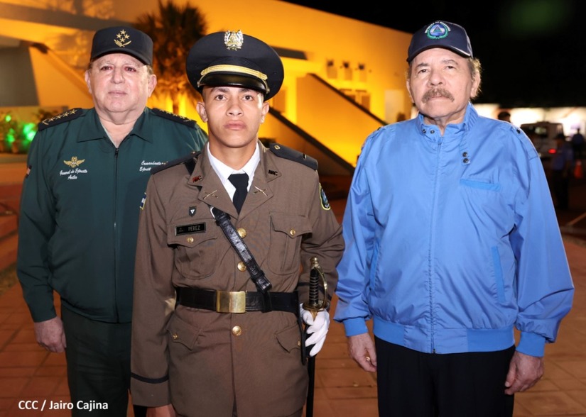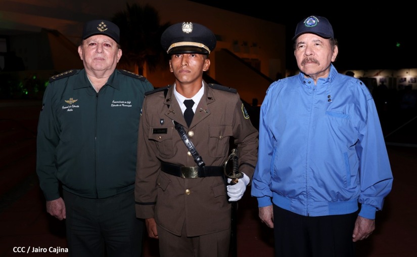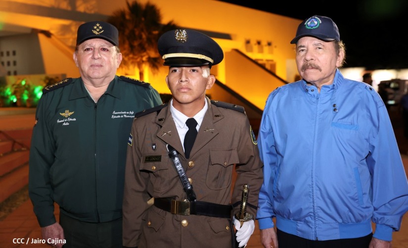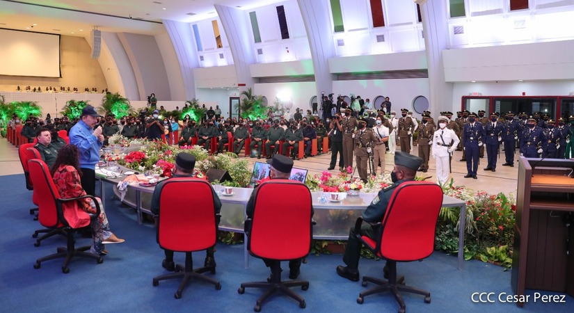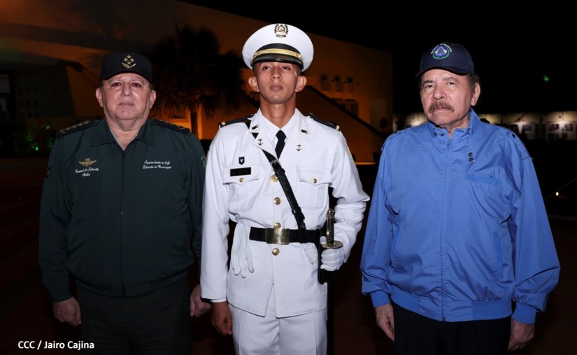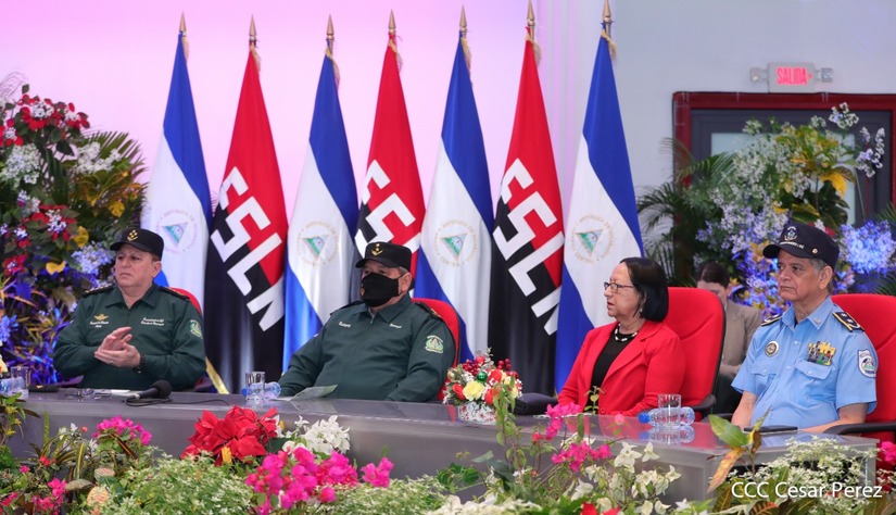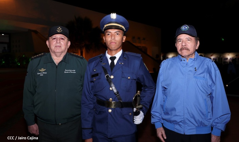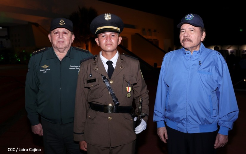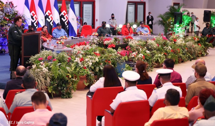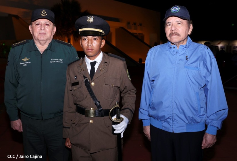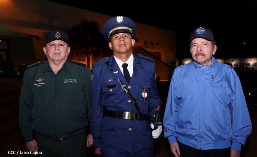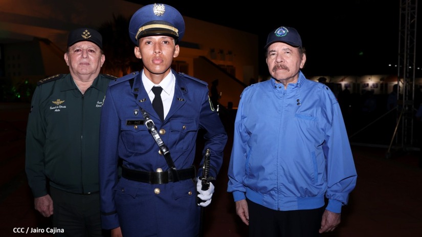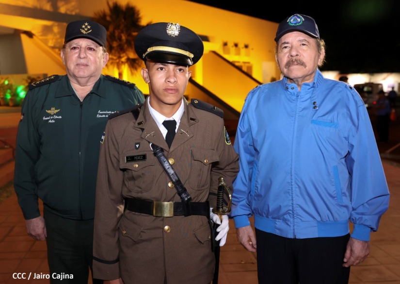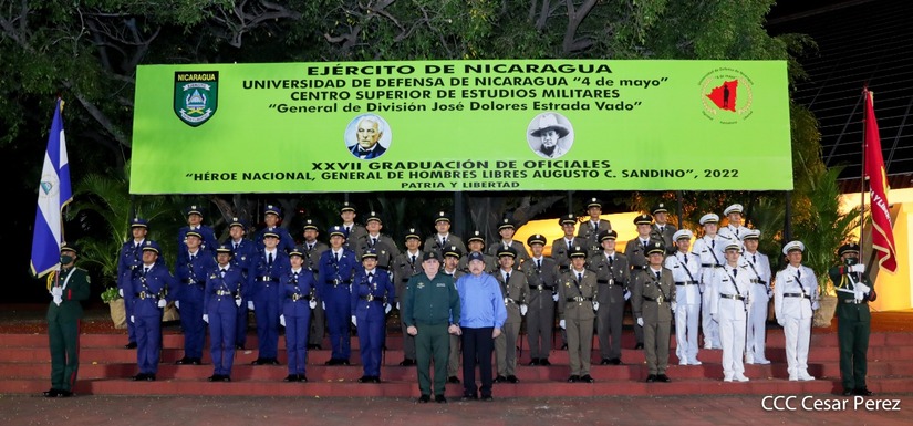 El Presidente de la República Comandante Daniel Ortega Saavedra y la Vicepresidenta Compañera Rosario Murillo, presiden junto al General de Ejército Julio César Avilés Castillo, la XXVII Promoción de Oficiales del Centro Superior de Estudios Militares General José Dolores Estrada Vado.