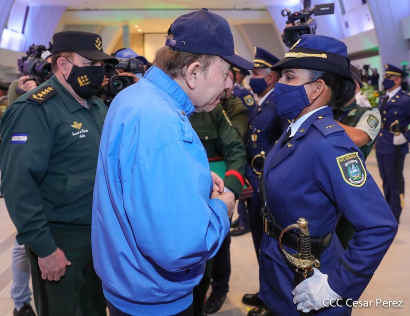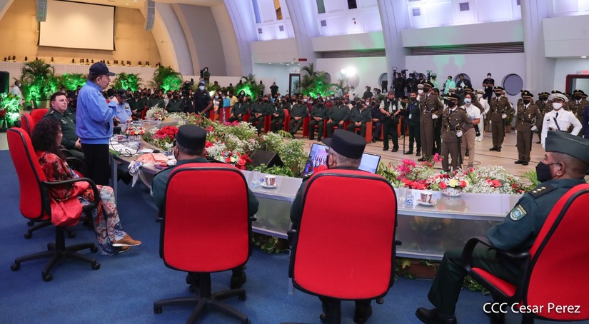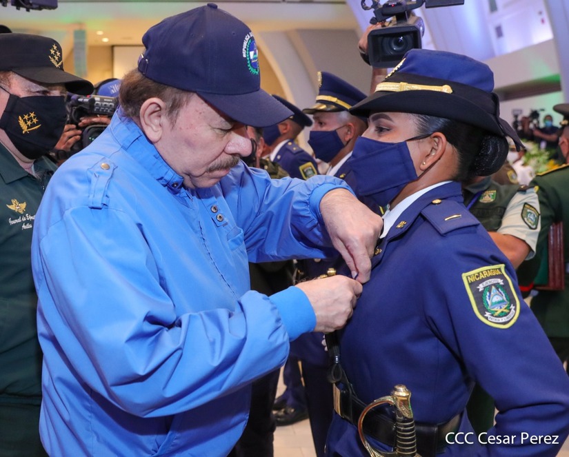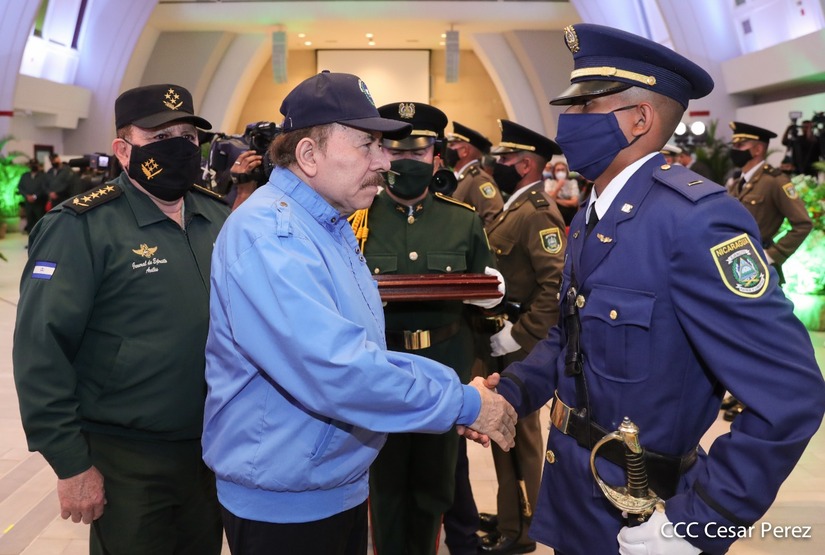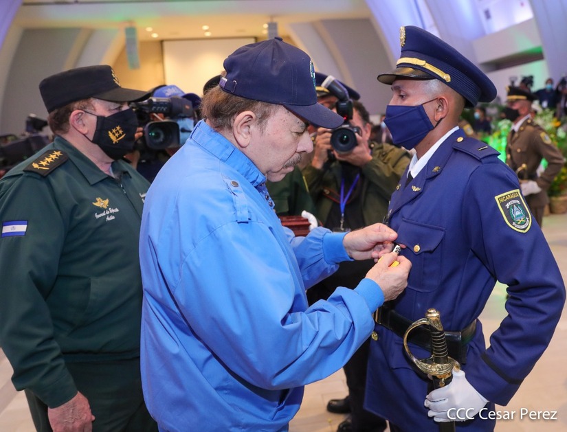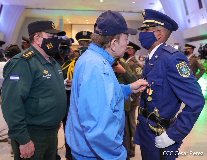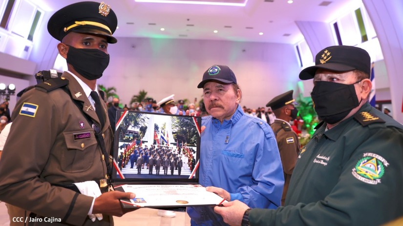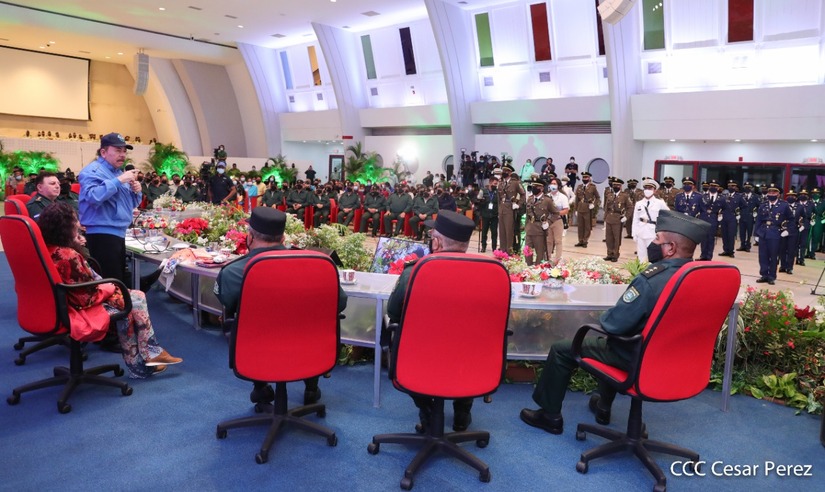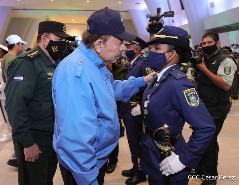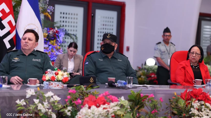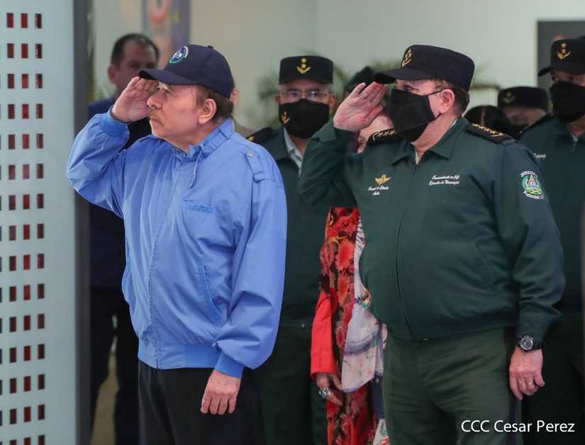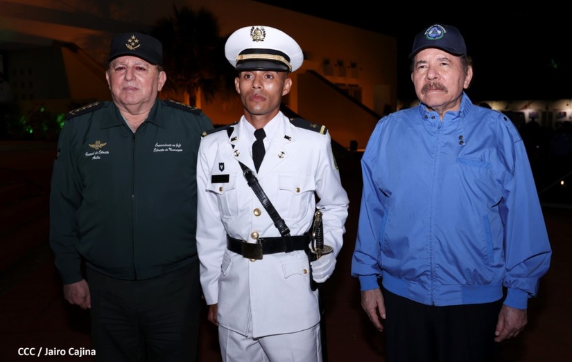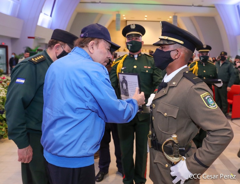 El Presidente de la República Comandante Daniel Ortega Saavedra y la Vicepresidenta Compañera Rosario Murillo, presiden junto al General de Ejército Julio César Avilés Castillo, la XXVII Promoción de Oficiales del Centro Superior de Estudios Militares General José Dolores Estrada Vado.