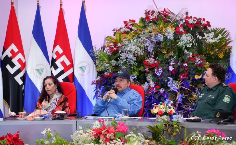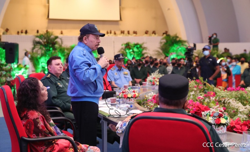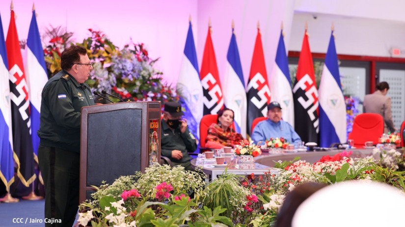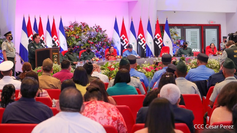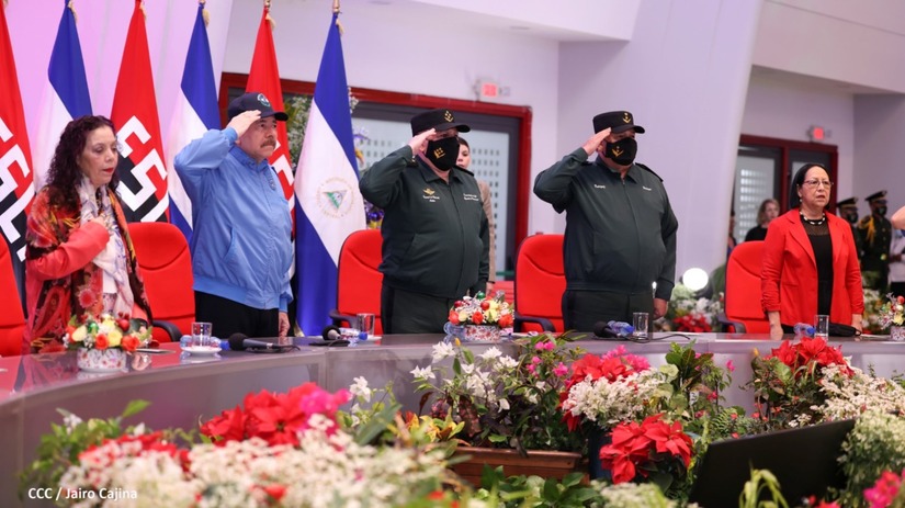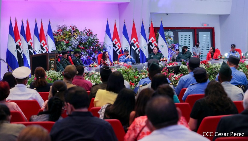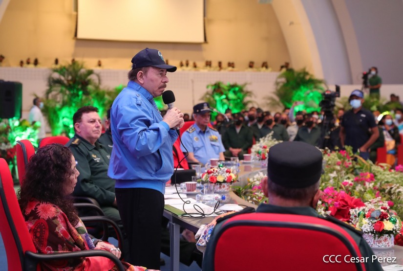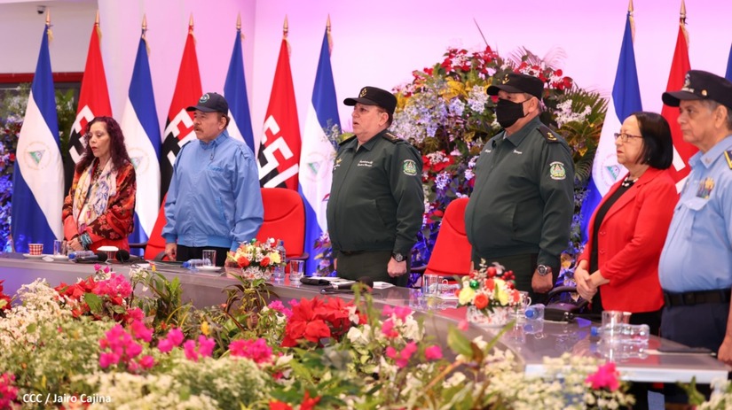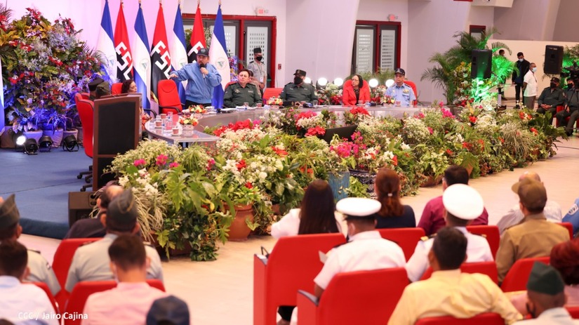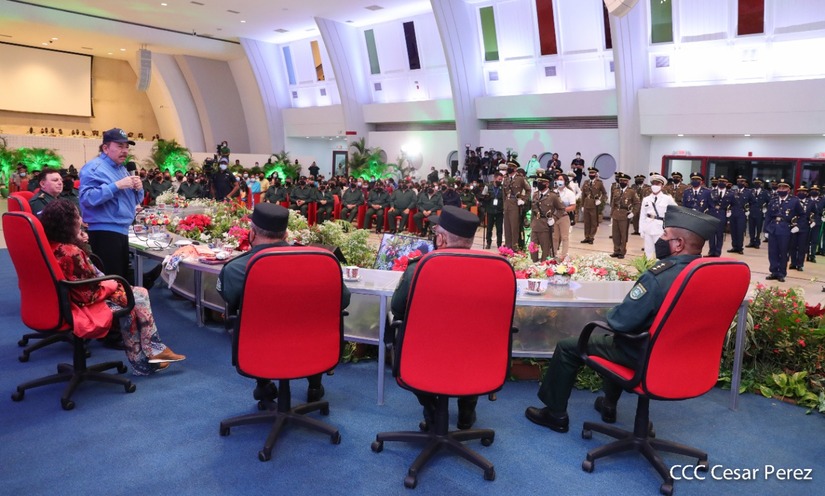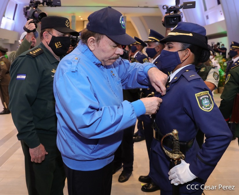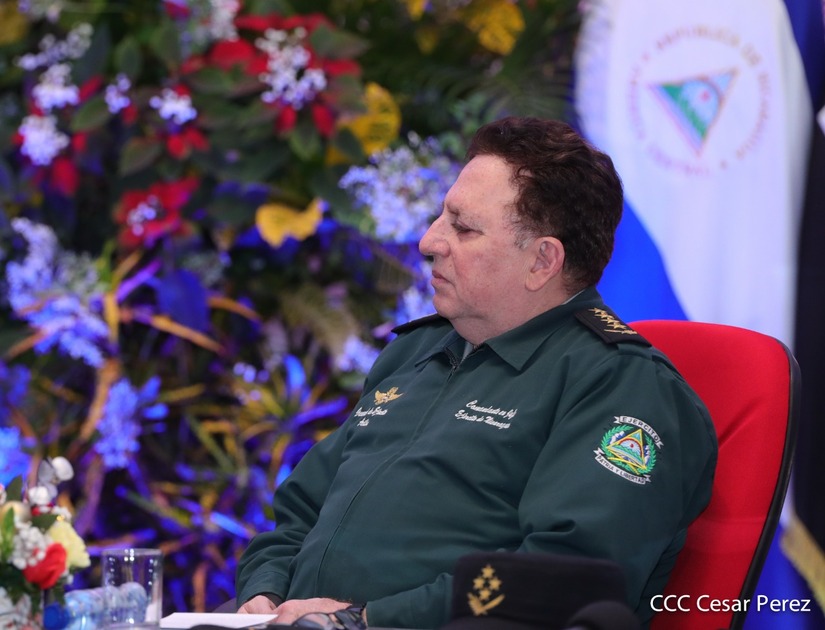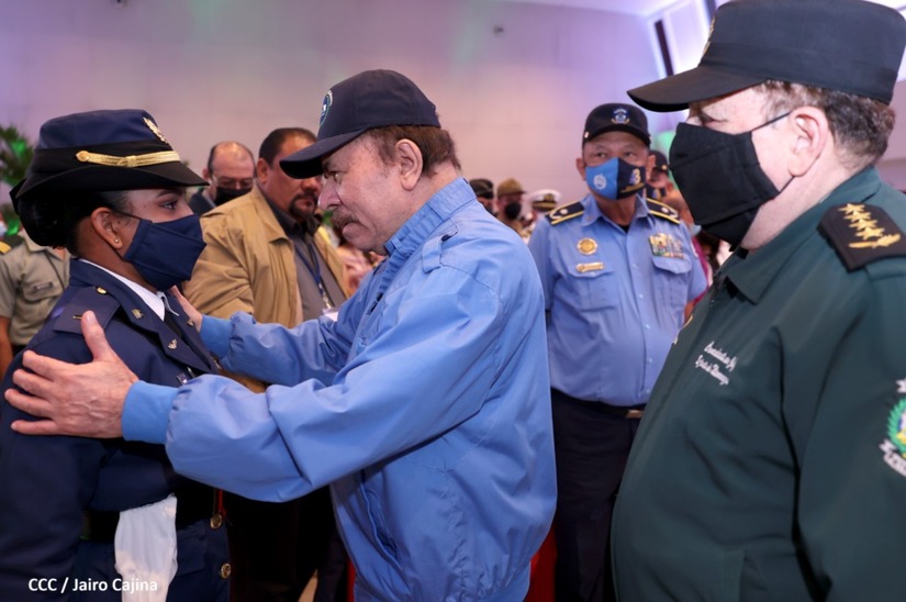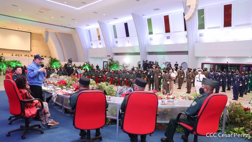 El Presidente de la República Comandante Daniel Ortega Saavedra y la Vicepresidenta Compañera Rosario Murillo, presiden junto al General de Ejército Julio César Avilés Castillo, la XXVII Promoción de Oficiales del Centro Superior de Estudios Militares General José Dolores Estrada Vado.