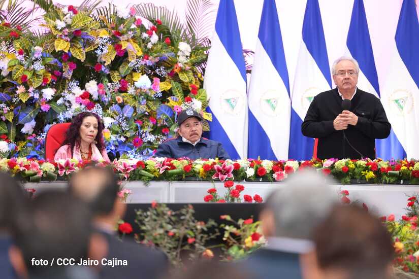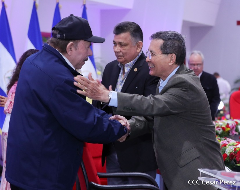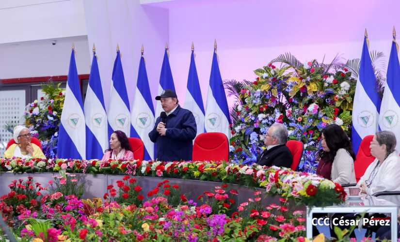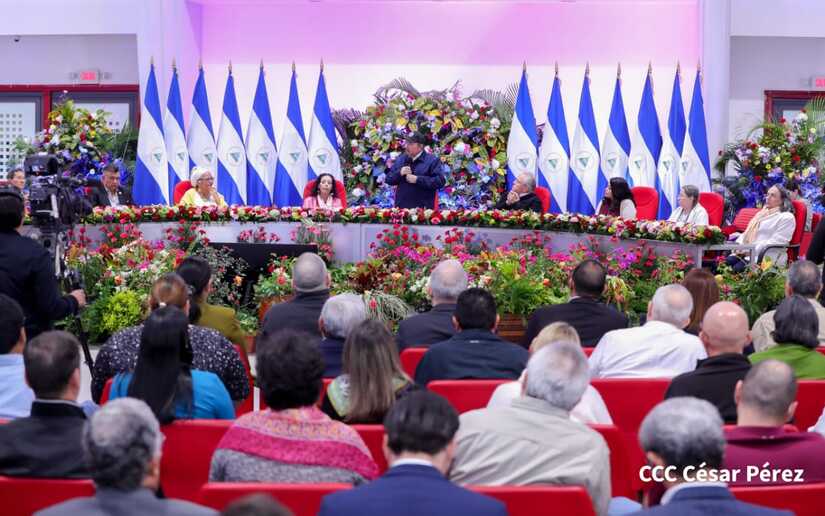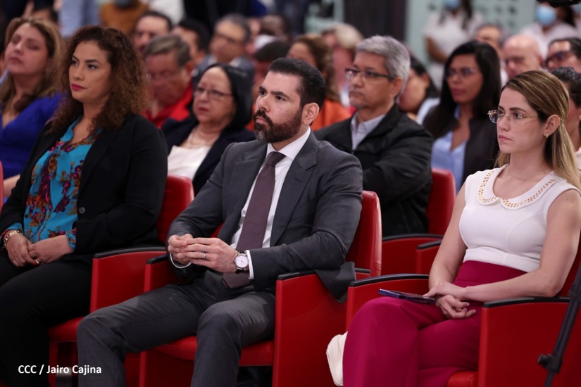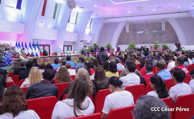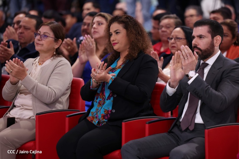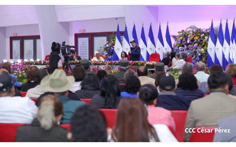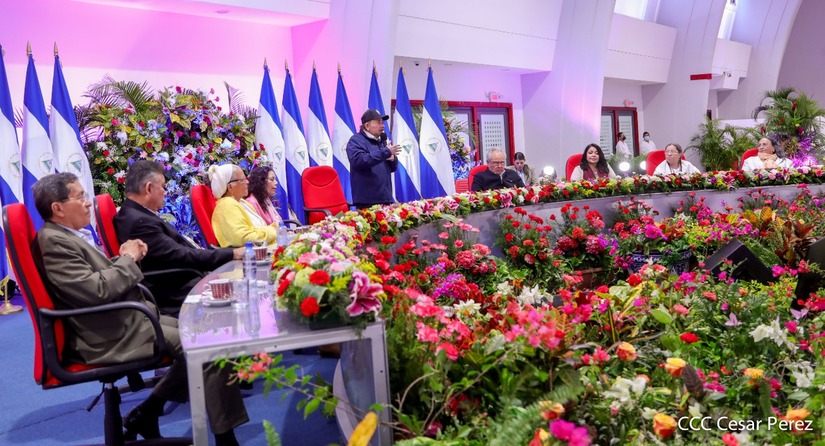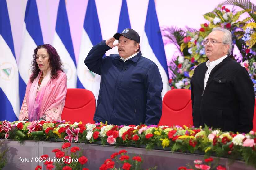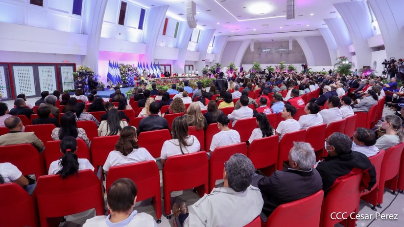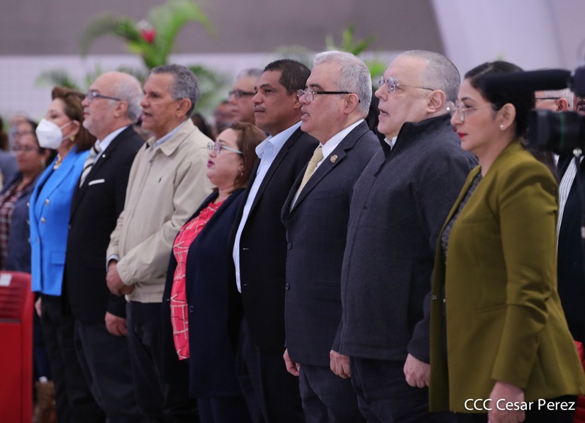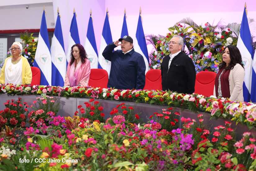 En el acto, también están presentes el Presidente de la República, Comandante Daniel Ortega y la Vicepresidenta Compañera Rosario Murillo.