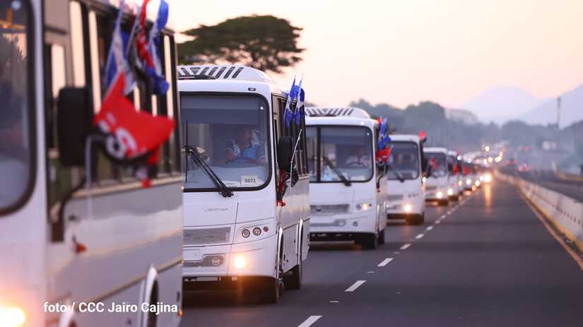 La primera flota de 150 buses rusos llegó a la ciudad de Managua la tarde de este domingo para mejorar el servicio de transporte en el país, la caravana partió desde el Puerto Corinto recorriendo los departamentos de Chinandega y León.