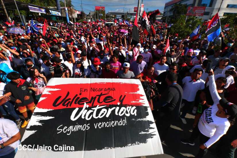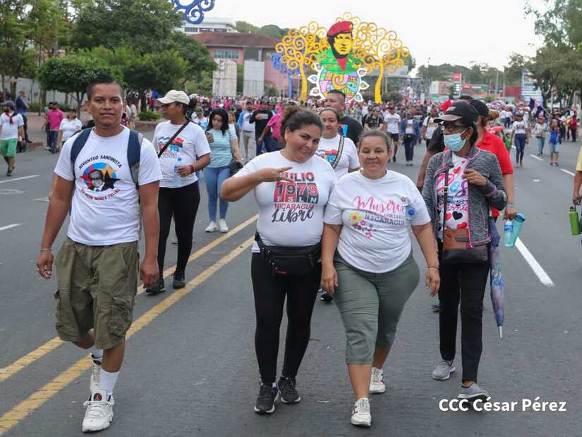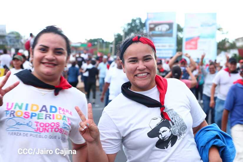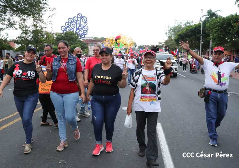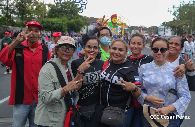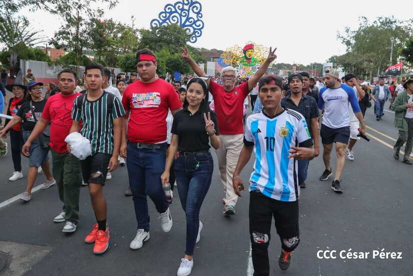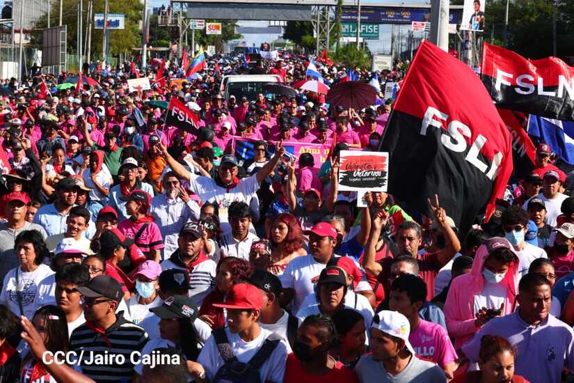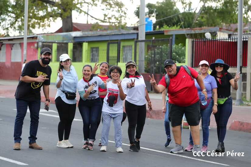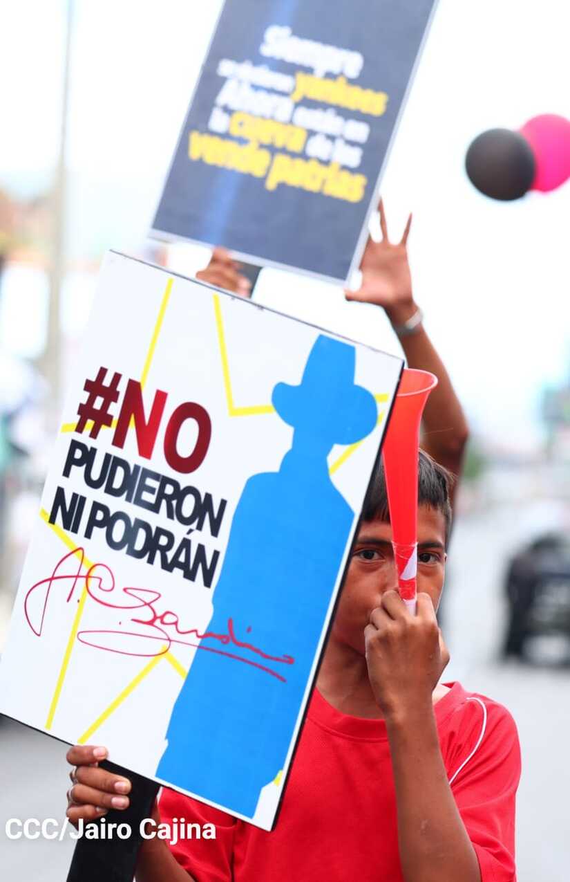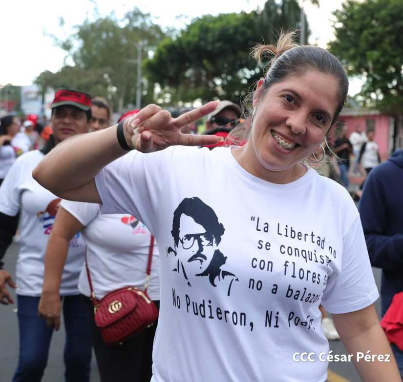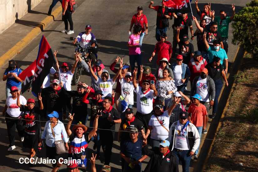 La militancia sandinista, siempre con la convicción, lealtad, heroísmo y lucha, con una multitudinaria caminata celebró este sábado estos nuevos tiempos de Victoria de la Paz y el Bien, con el lema "No pudieron, ni podrán".