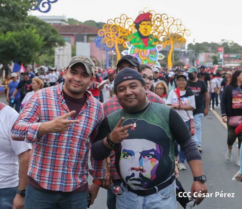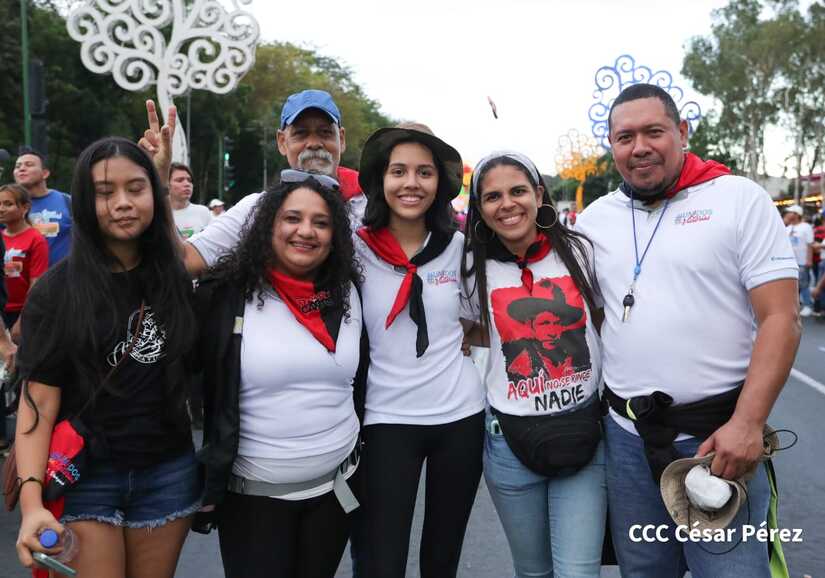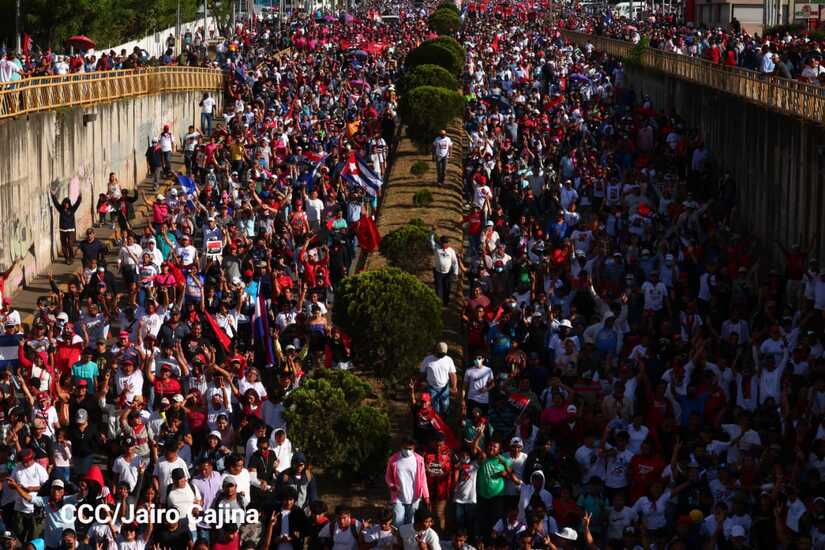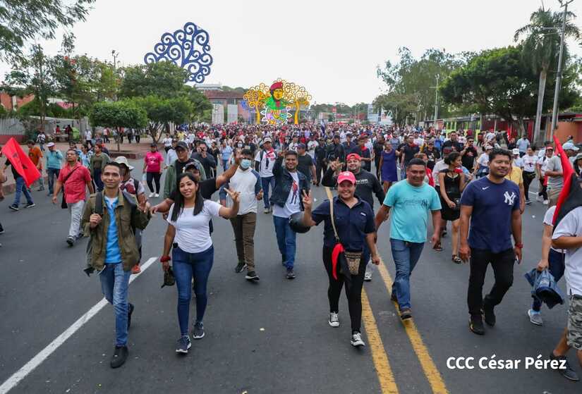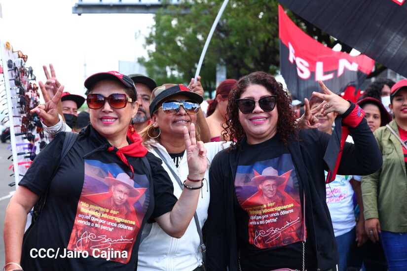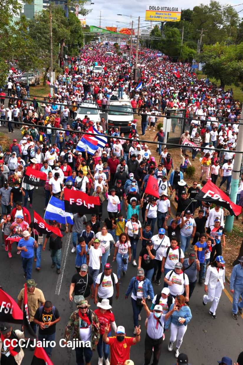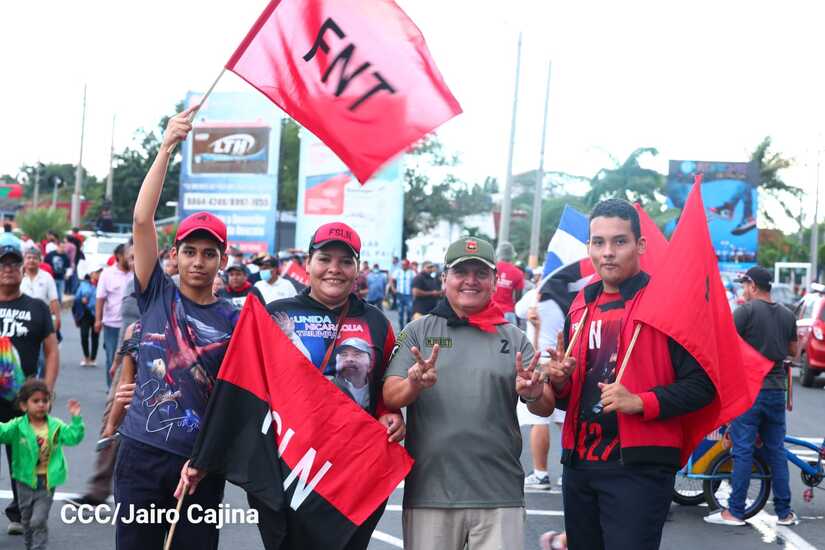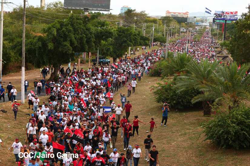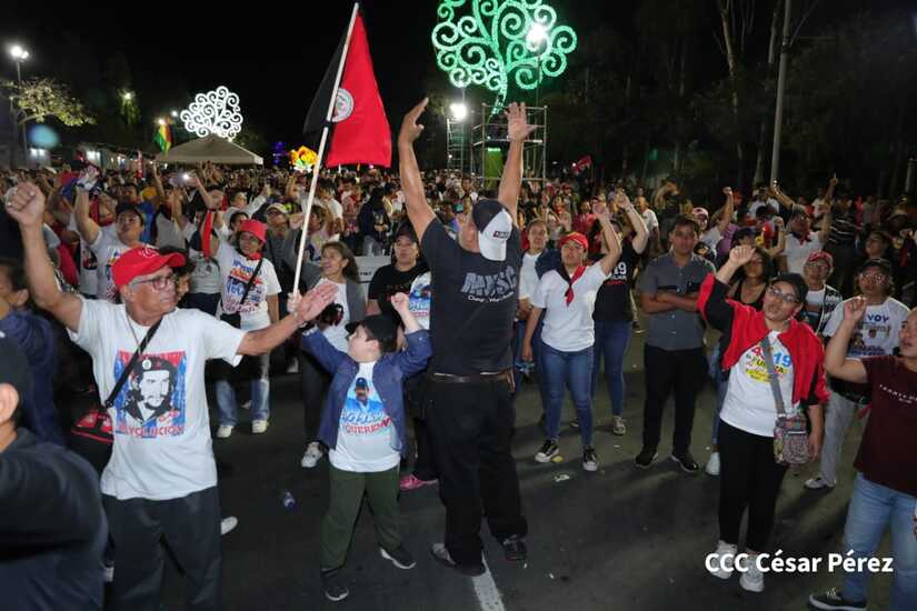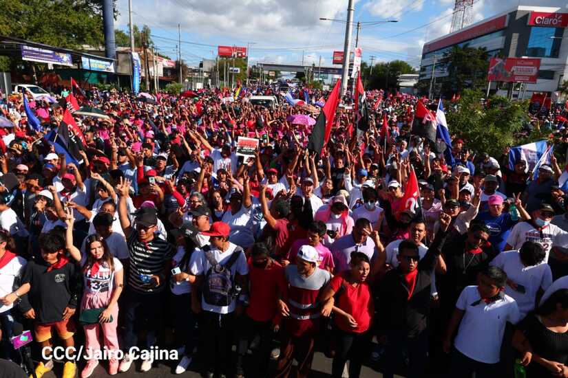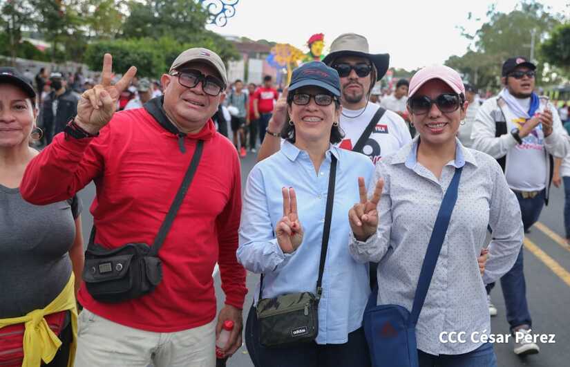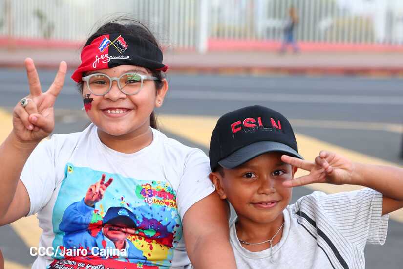 La militancia sandinista, siempre con la convicción, lealtad, heroísmo y lucha, con una multitudinaria caminata celebró este sábado estos nuevos tiempos de Victoria de la Paz y el Bien, con el lema "No pudieron, ni podrán".