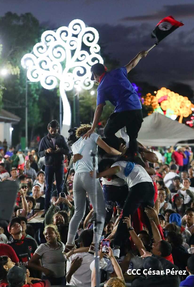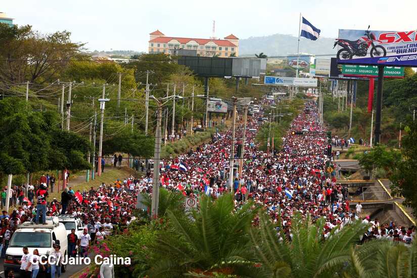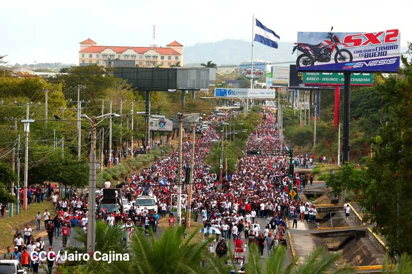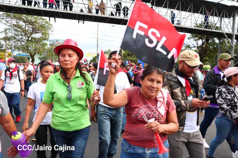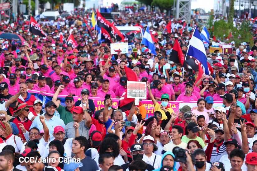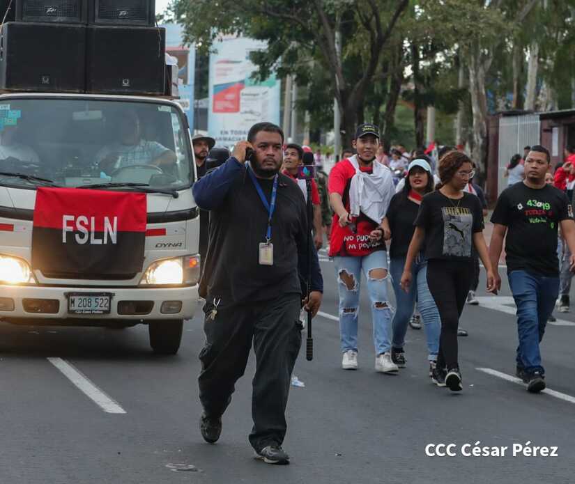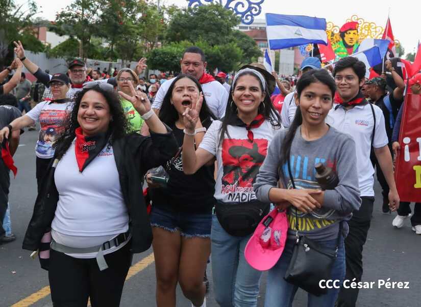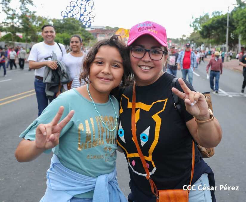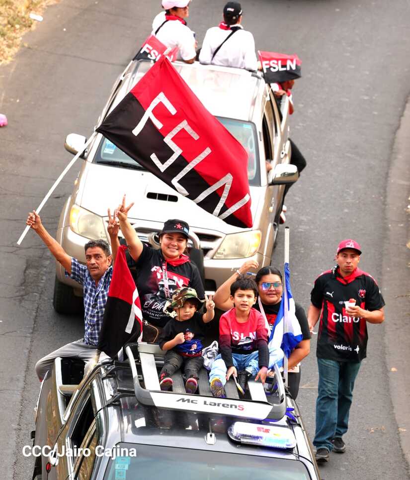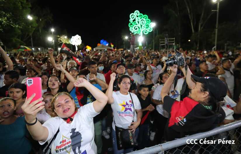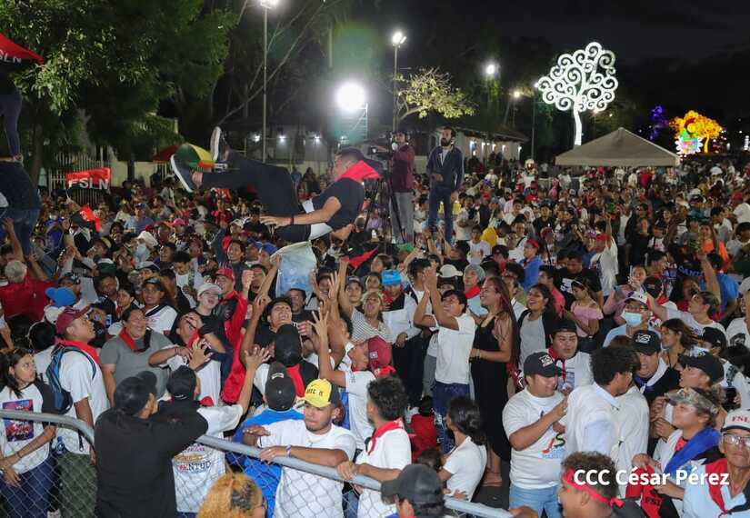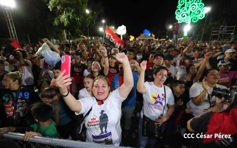 La militancia sandinista, siempre con la convicción, lealtad, heroísmo y lucha, con una multitudinaria caminata celebró este sábado estos nuevos tiempos de Victoria de la Paz y el Bien, con el lema "No pudieron, ni podrán".