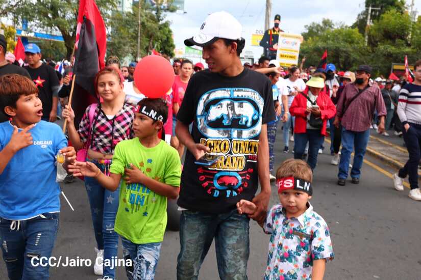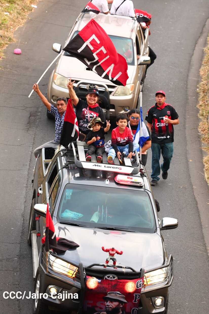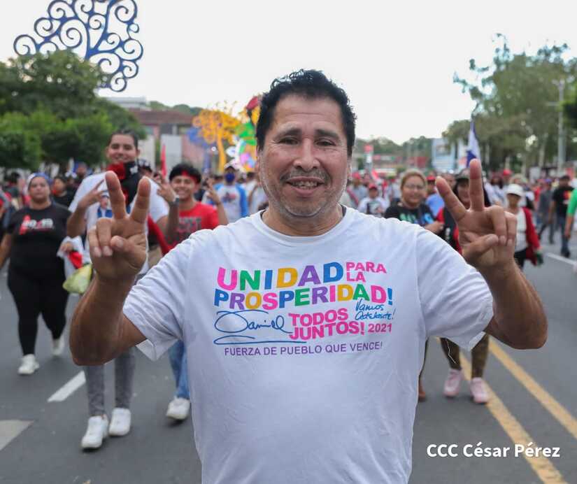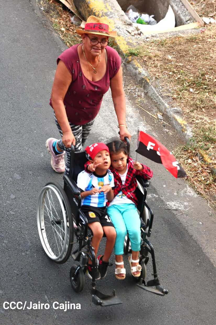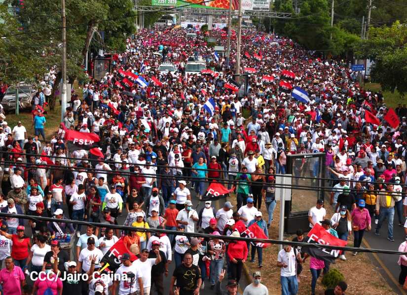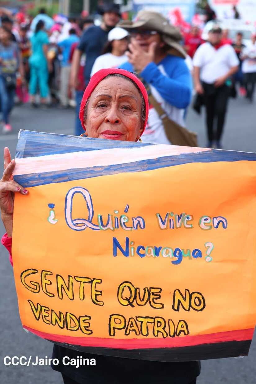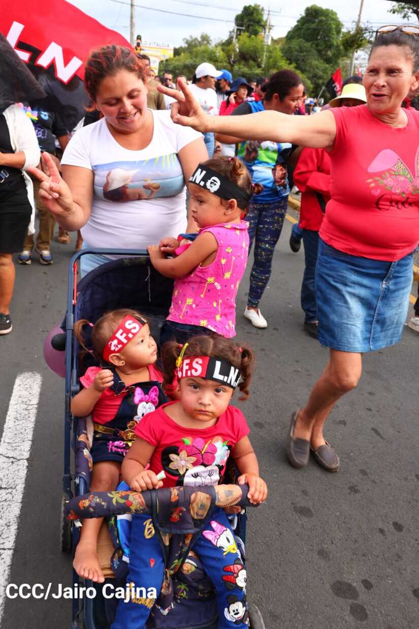 La militancia sandinista, siempre con la convicción, lealtad, heroísmo y lucha, con una multitudinaria caminata celebró este sábado estos nuevos tiempos de Victoria de la Paz y el Bien, con el lema "No pudieron, ni podrán".