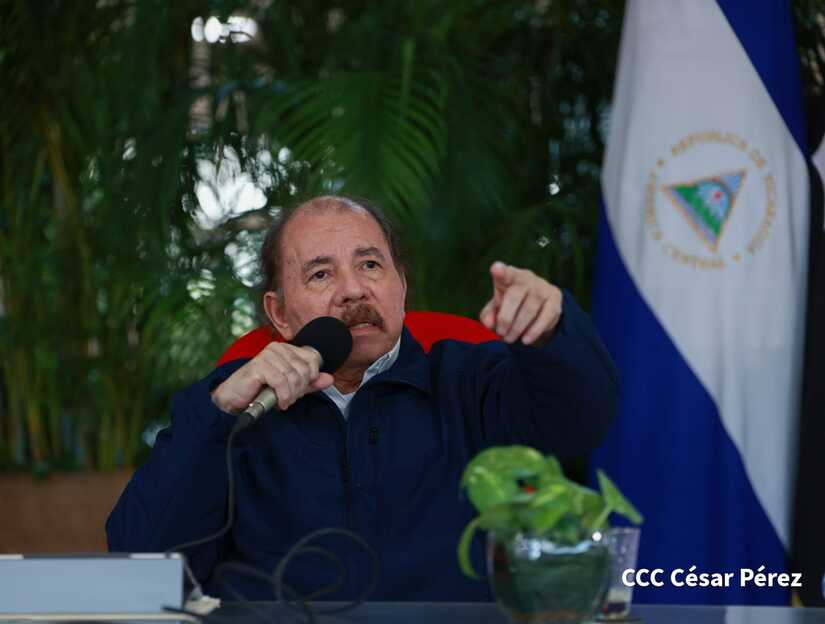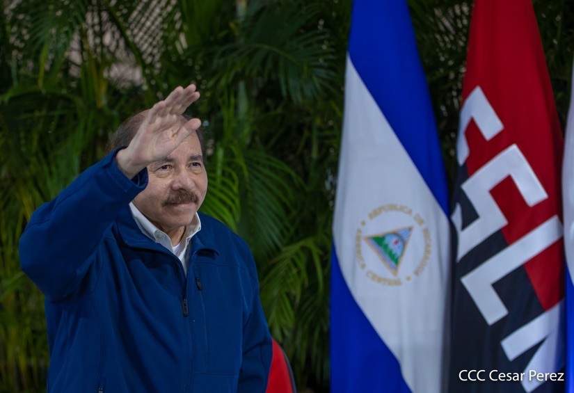El Presidente de Nicaragua, Comandante Daniel Ortega, luego de saludar a los hermanos nicaragüenses, a las familias de esta tierra bendita este 19 de abril del año 2023 en el quinto aniversario de una nueva gran victoria histórica de Nicaragua en la lucha por la Paz.