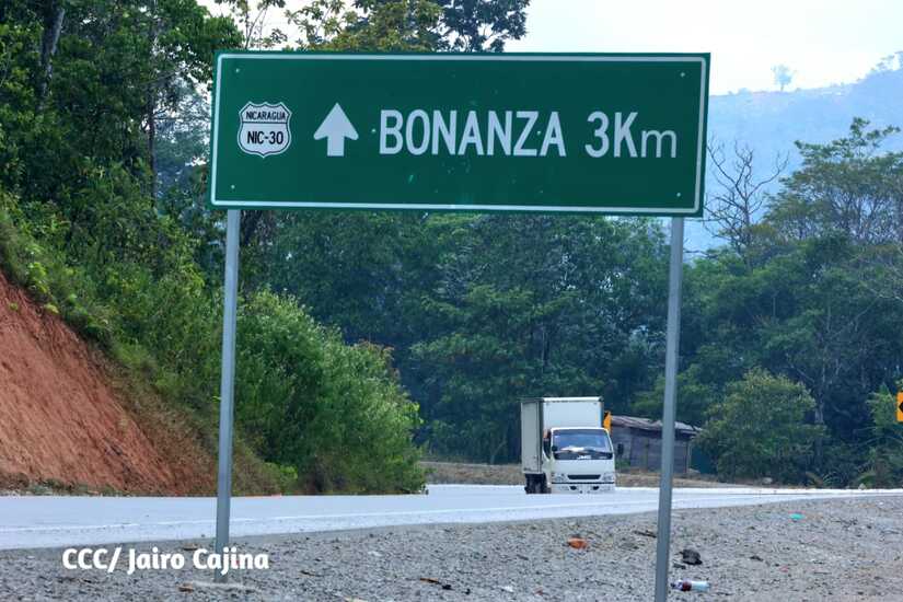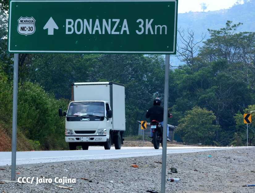 El Gobierno Sandinista a través del Ministerio de Transporte e Infraestructura (MTI) entregó 30 kilómetros de carretera a pobladores del municipio de Bonanza. Años atrás, lo que hoy es la nueva carretera era un camino complejo durante los copiosos inviernos.