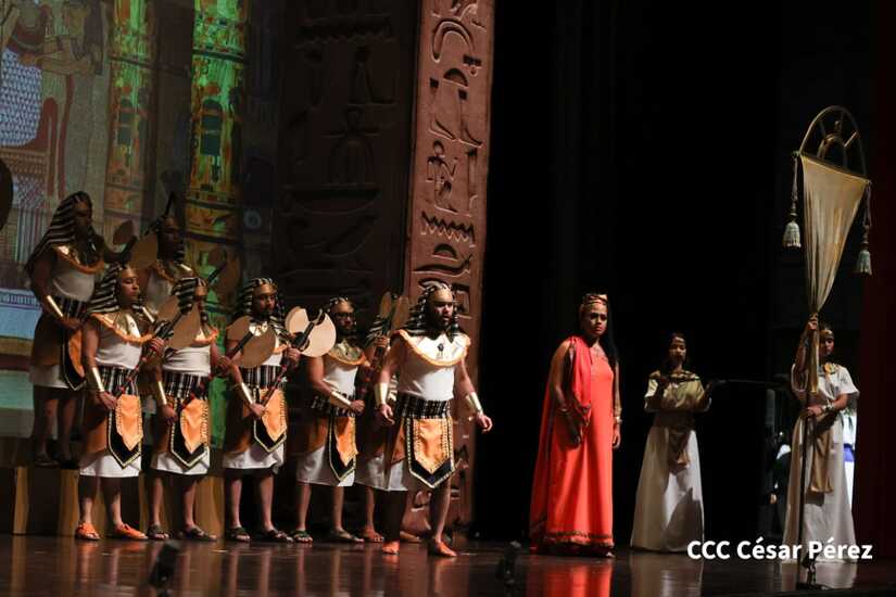 En la sala mayor del Teatro Nacional Rubén Darío (TNRD) se presentó la obra Aída, la que da por finalizada la Primera Temporada Lírica Incanto 2023, con la participación de más de 100 artistas nacionales.