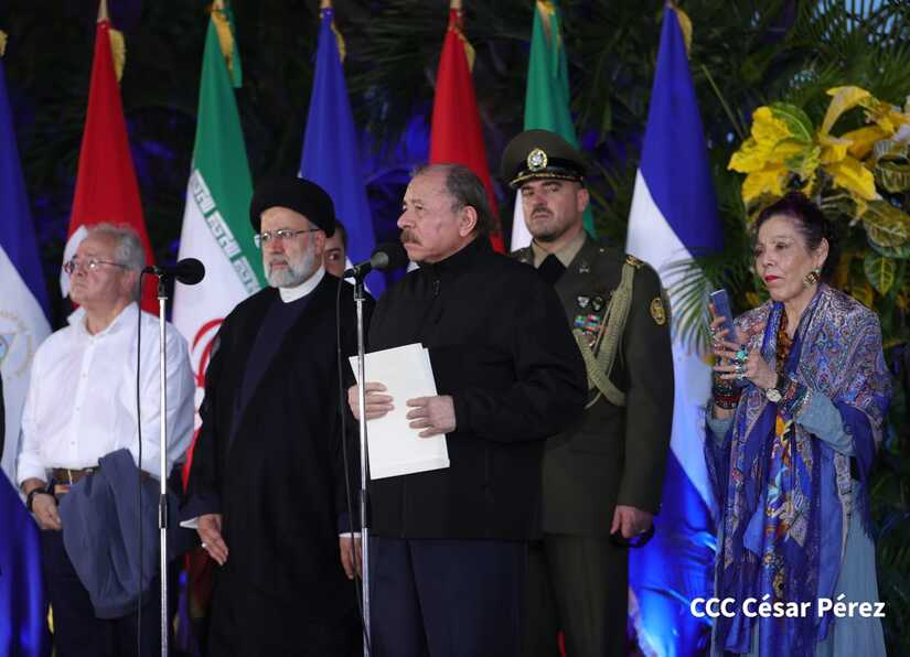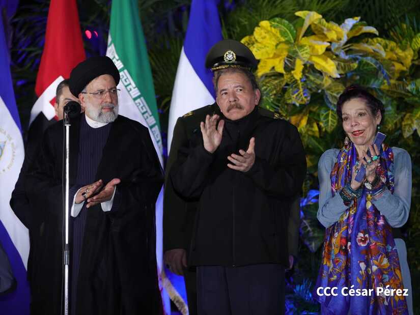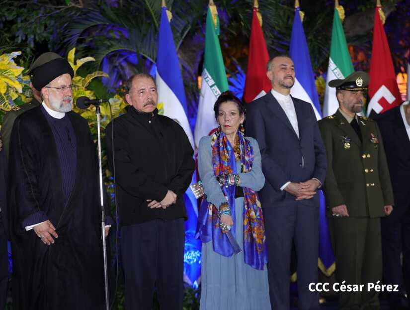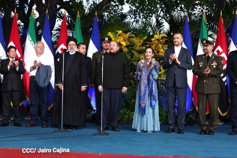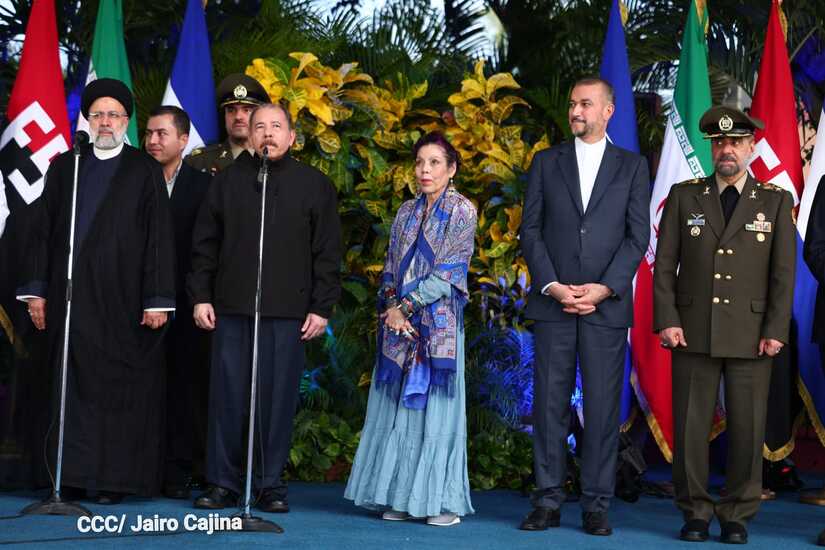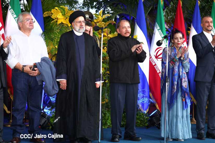 El Presidente Comandante Daniel Ortega Saavedra y la Compañera Rosario Murillo Vicepresidenta de Nicaragua, sostuvieron un encuentro con el Presidente de la República Islámica de Irán, Ebrahim Raisi, tras su llegada a Nicaragua este martes 13 de junio.