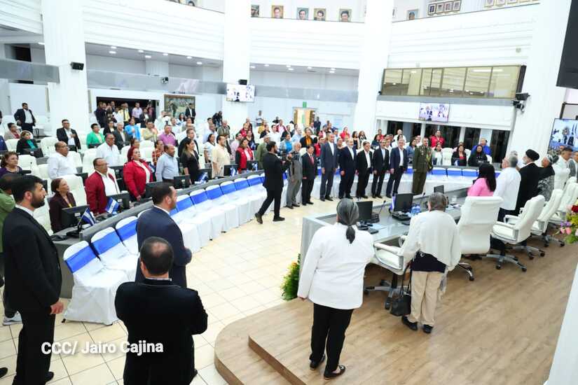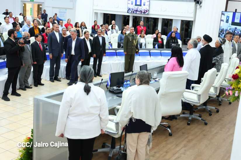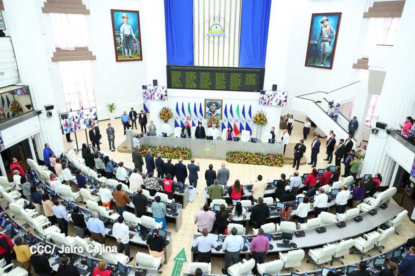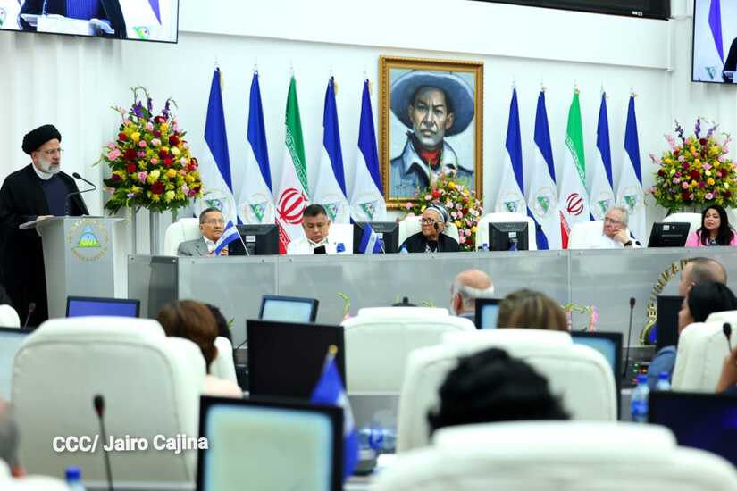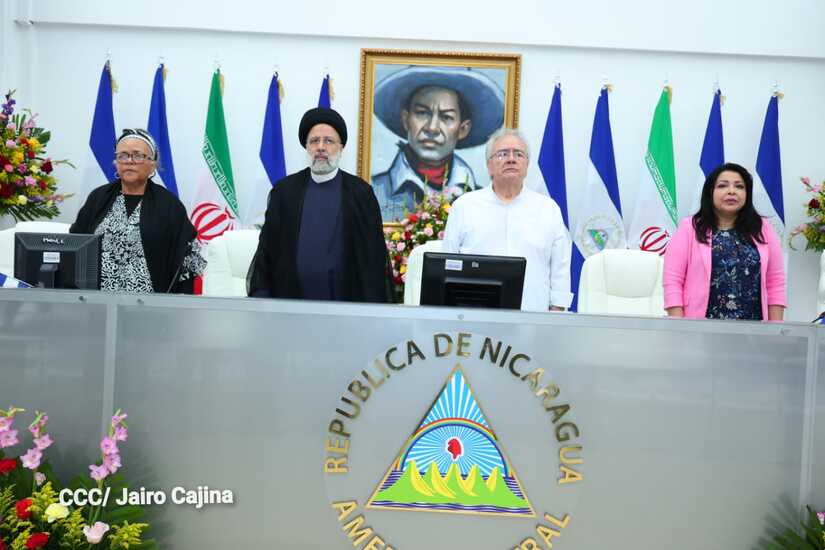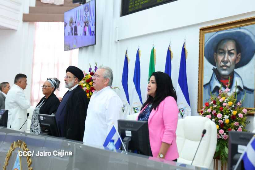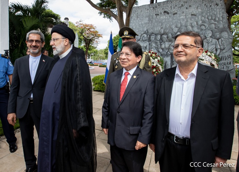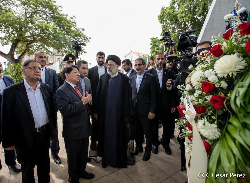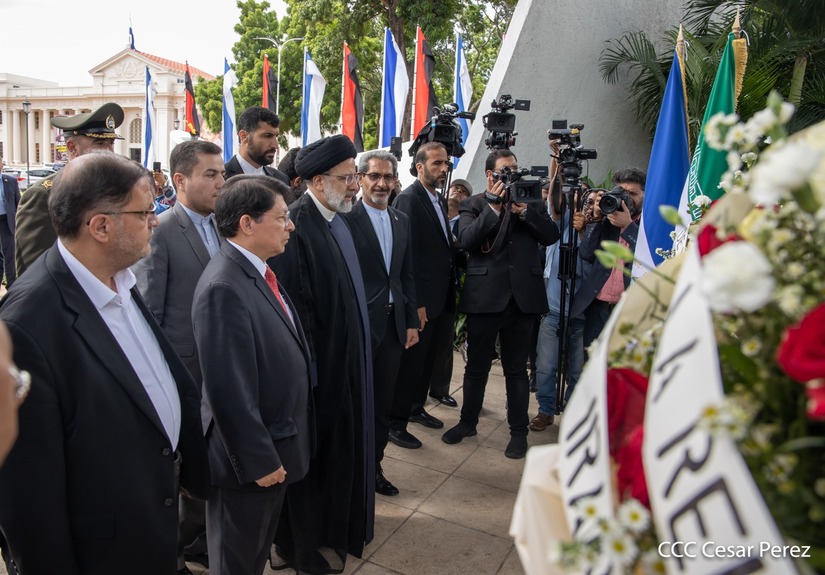 Durante su visita a Nicaragua, el Presidente de la República Islámica de Irán, Ebrahim Raisi, depositó ofrendas florales en mausoleo de los Héroes y Mártires de la Patria, en la Plaza de la Revolución, luego asistió a la Asamblea Nacional.