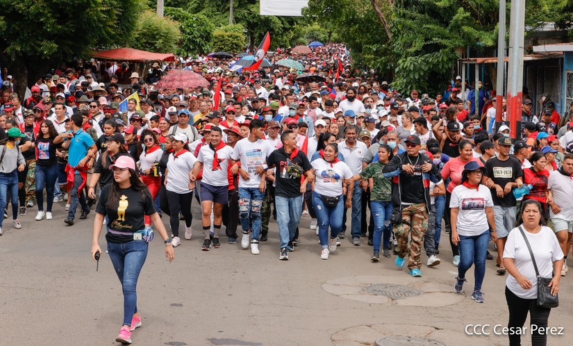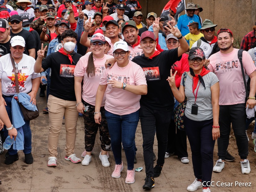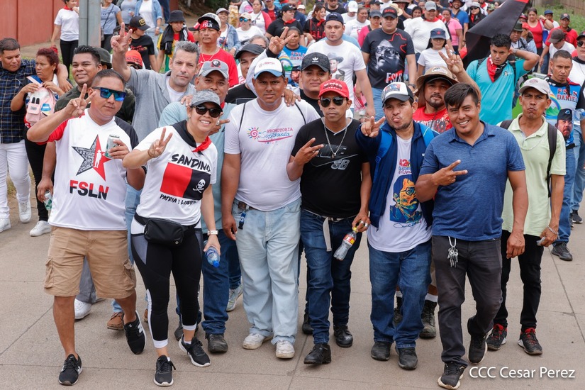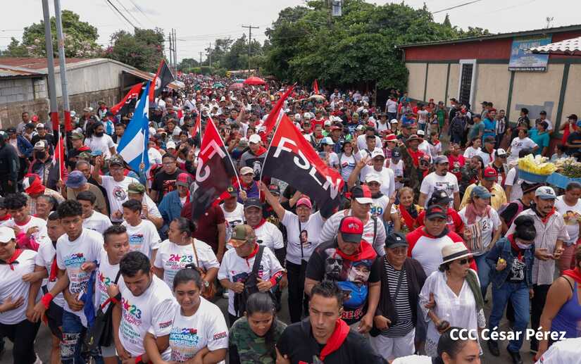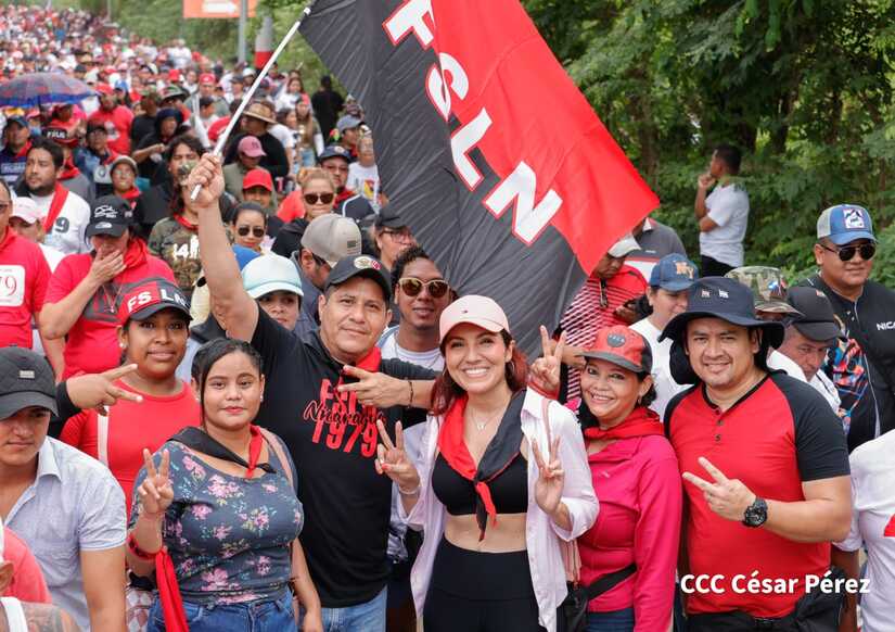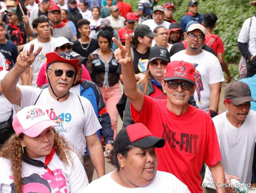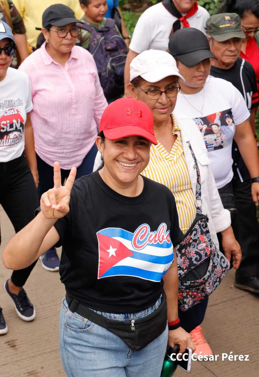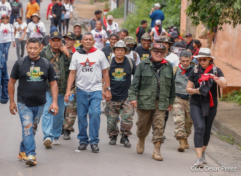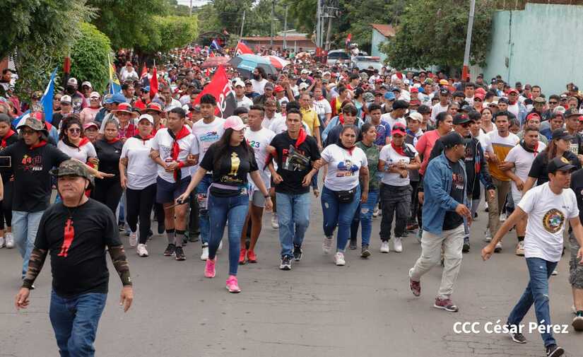 Militantes sandinistas participan en caminata en honor al Repliegue Táctico a Masaya