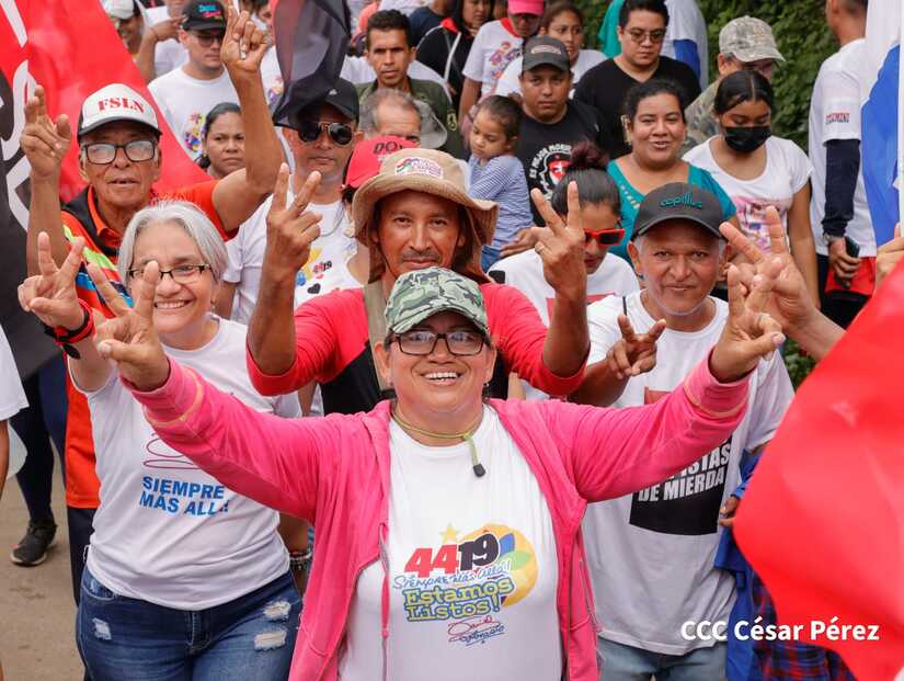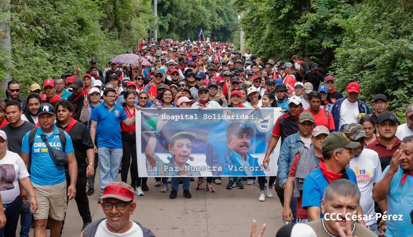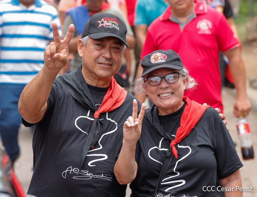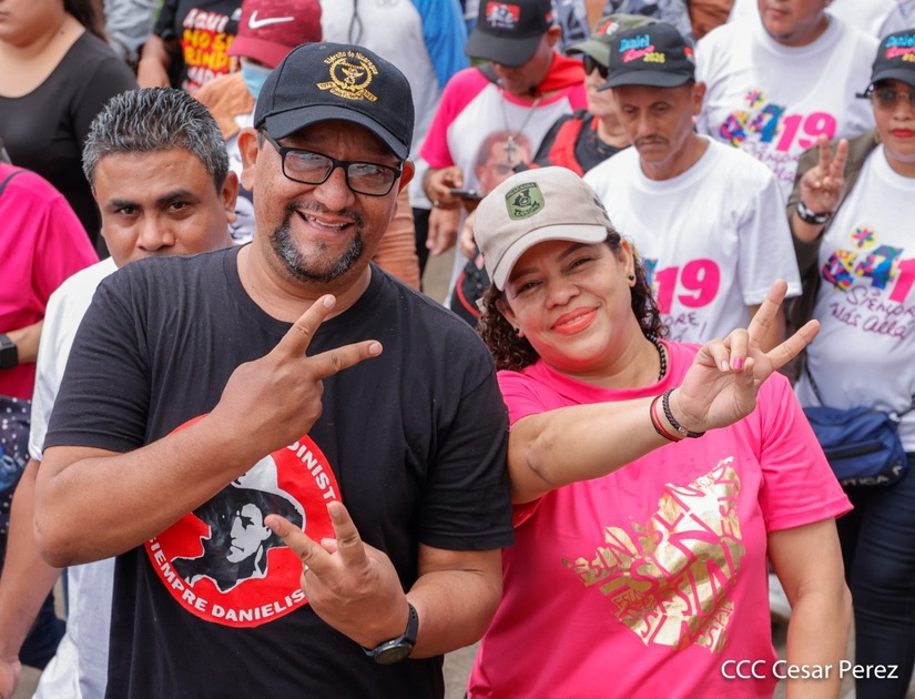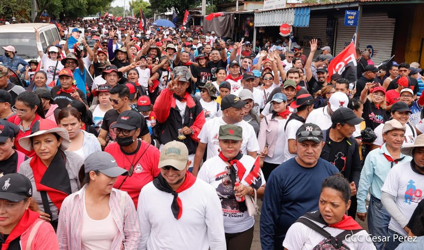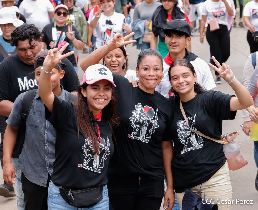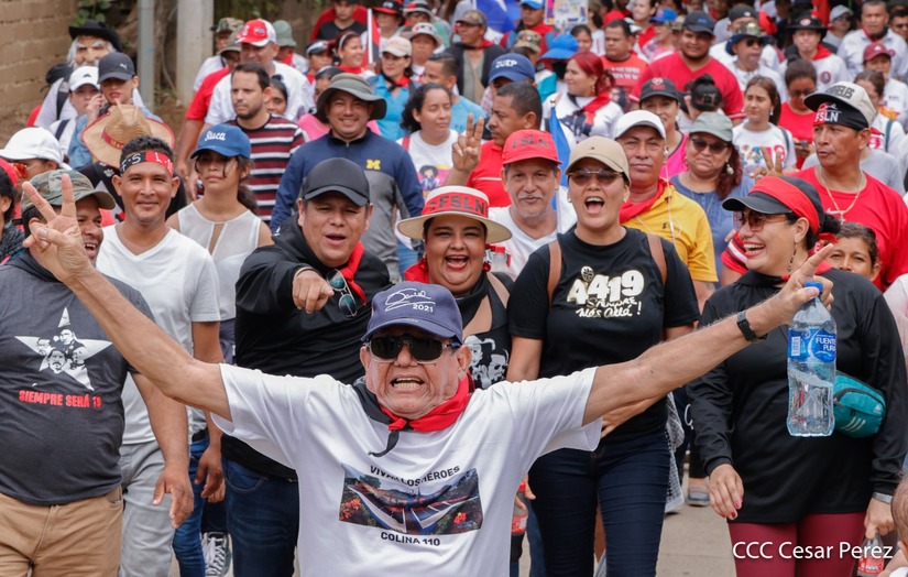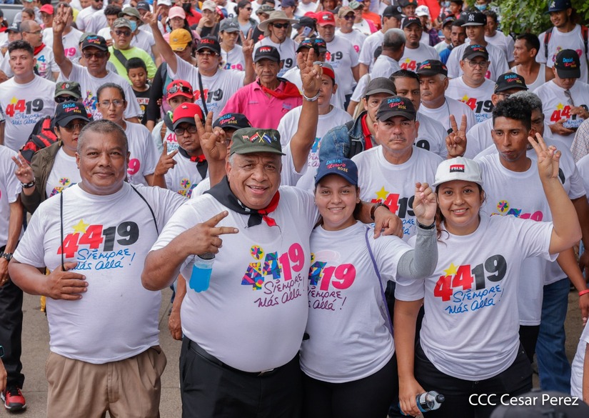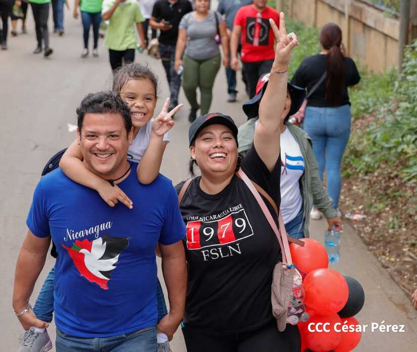 Militantes sandinistas participan en caminata en honor al Repliegue Táctico a Masaya
