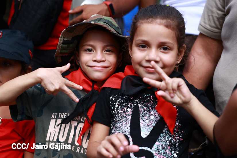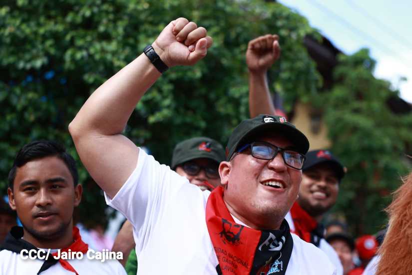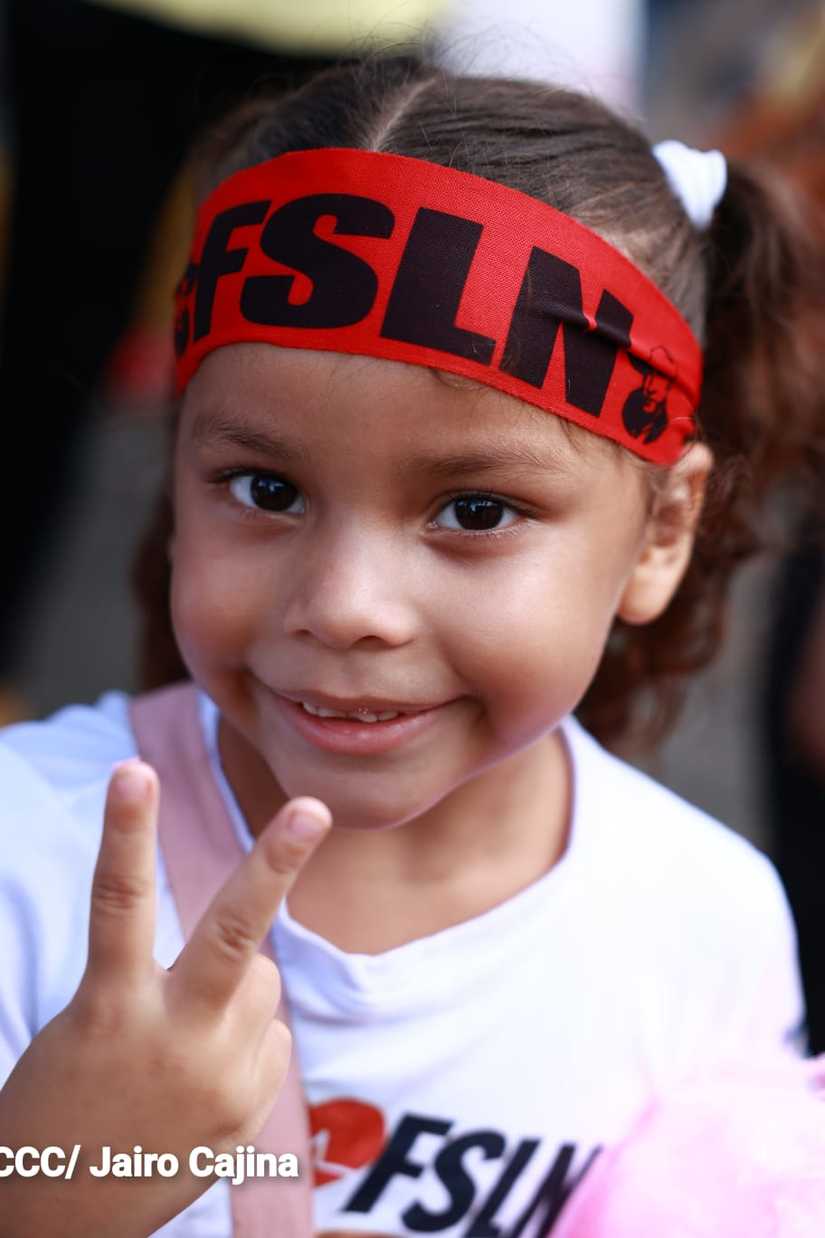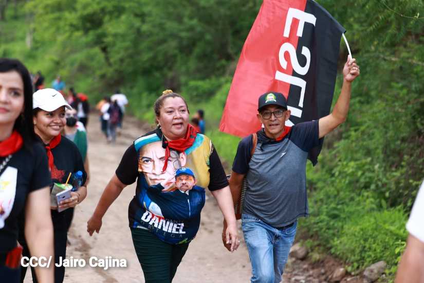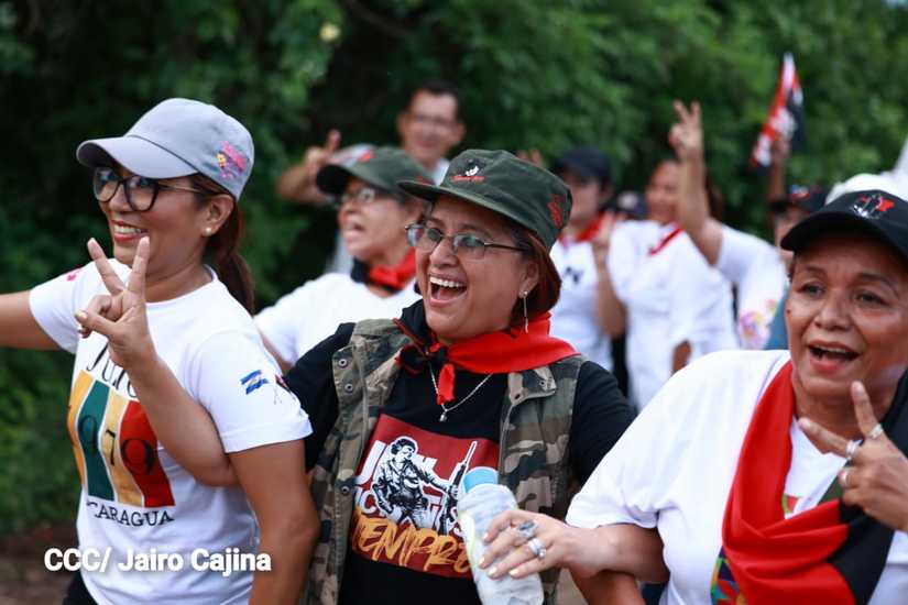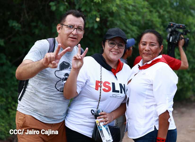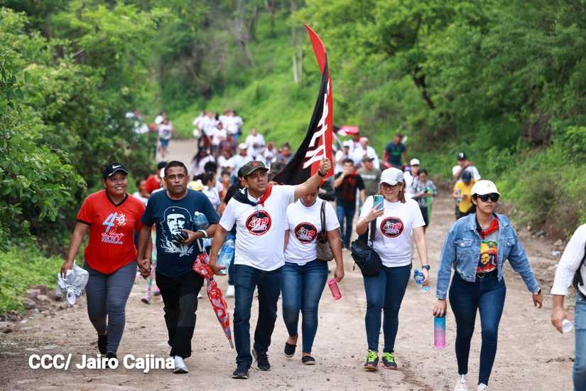 Niños, jóvenes, adultos, militantes históricos y adultos mayores participaron en la multitudinaria Caminata, en celebración del 44 aniversario de la toma del Fortín de Acosasco, en León.