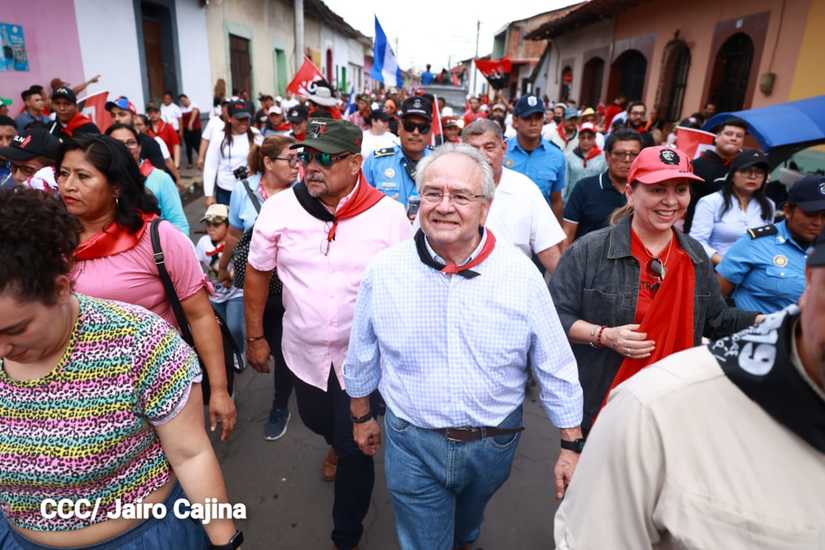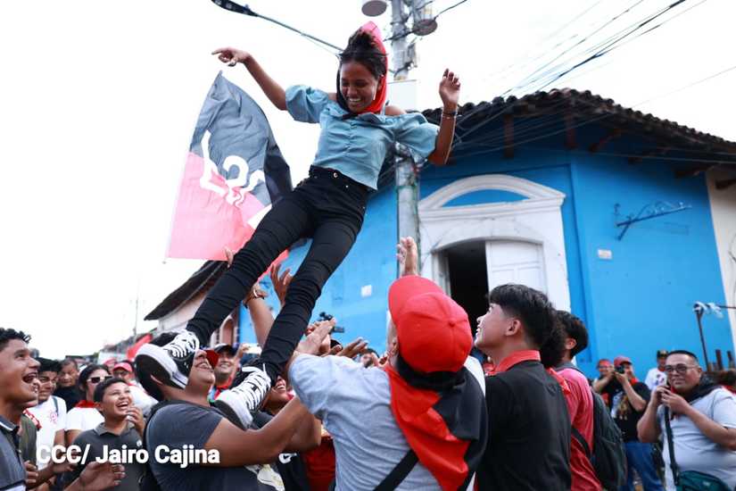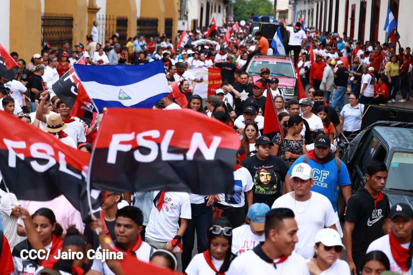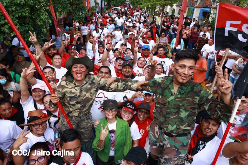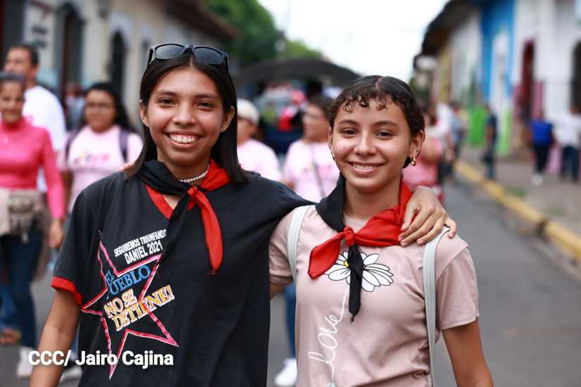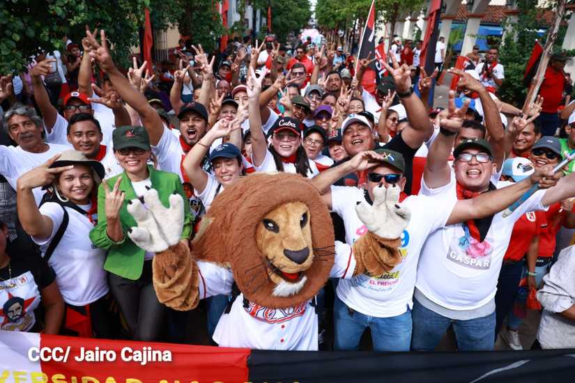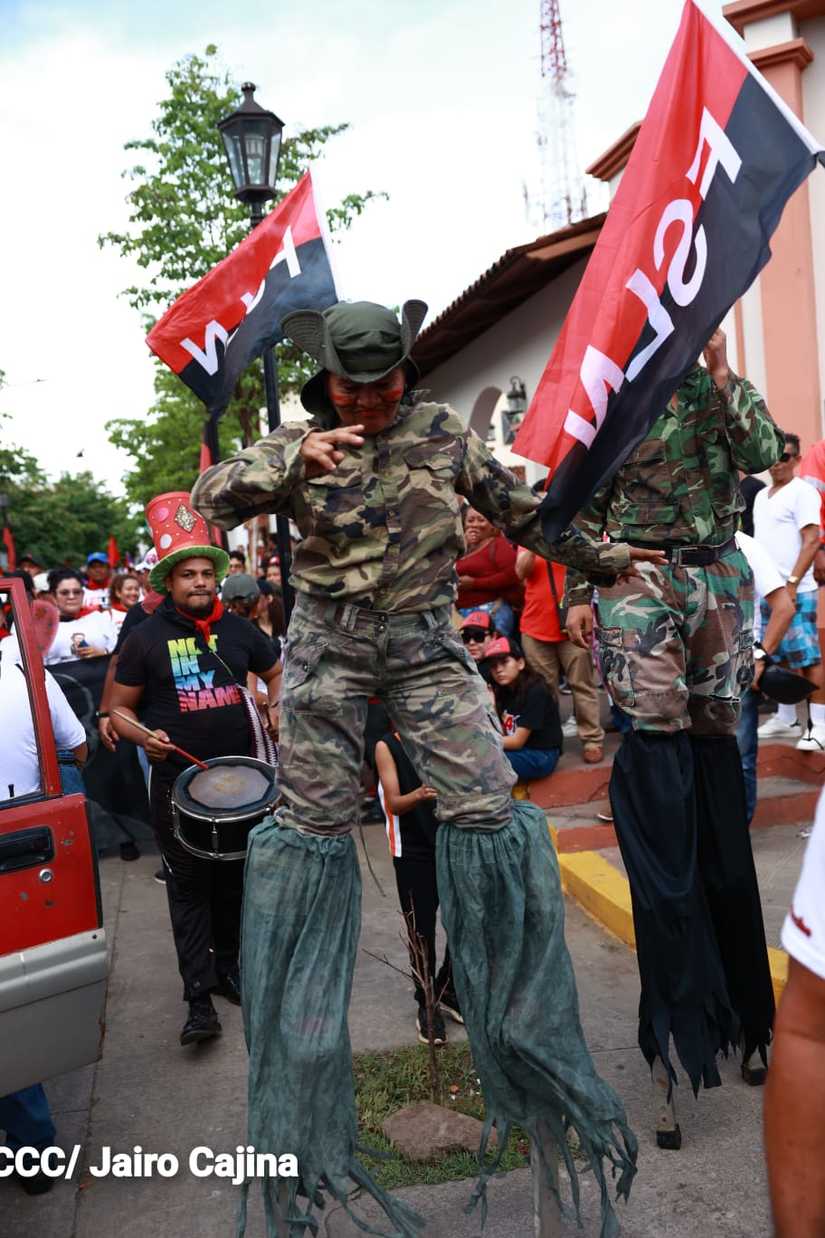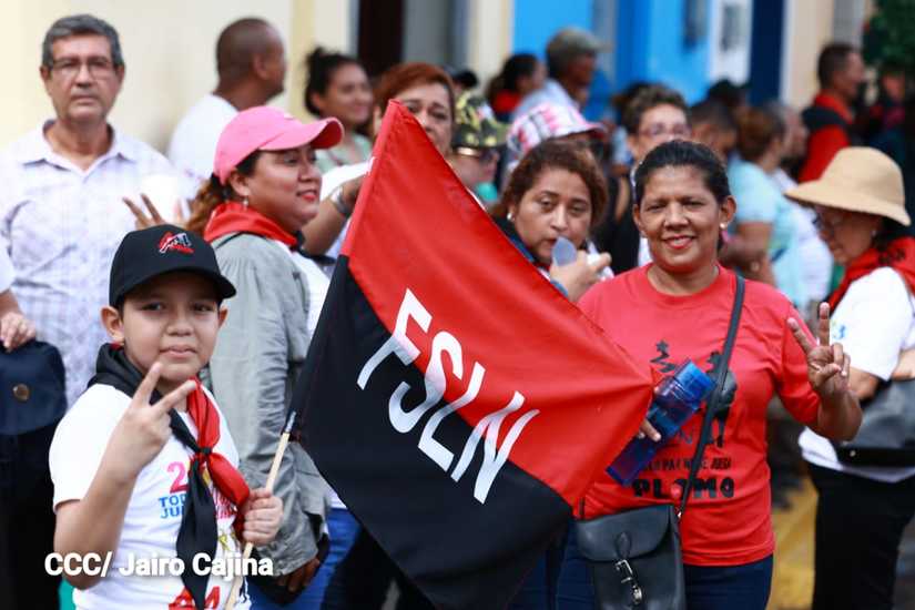 Niños, jóvenes, adultos, militantes históricos y adultos mayores participaron en la multitudinaria Caminata, en celebración del 44 aniversario de la toma del Fortín de Acosasco, en León.