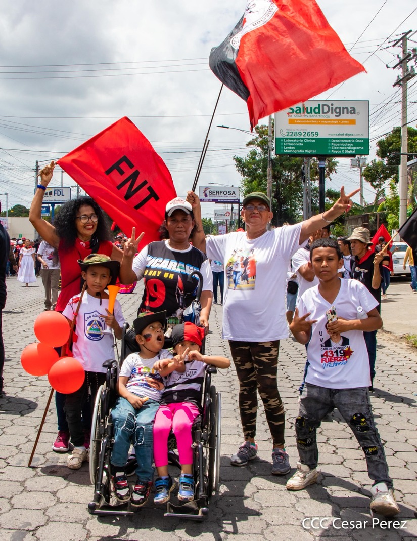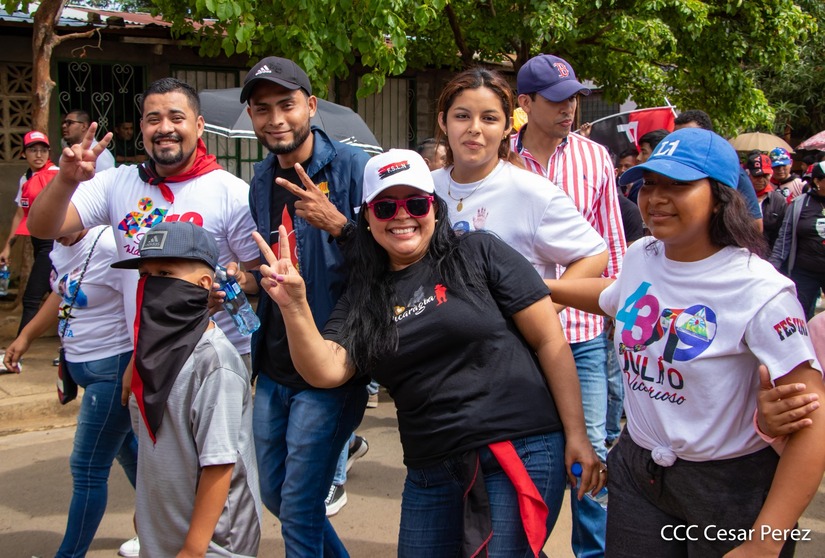 En saludo al 44/19, Siempre Victorioso, miles de familias sandinistas recorrieron los barrios de los distritos 6 y 7 de Managua, honrrando la memoria y legado de los héroes y mártires que hicieron posible la Nicaragua de hoy, siempre libre y soberana.