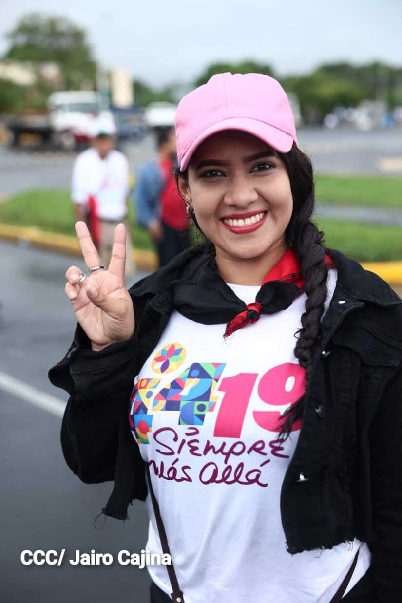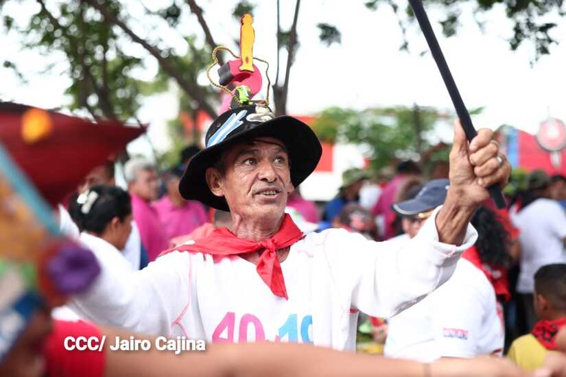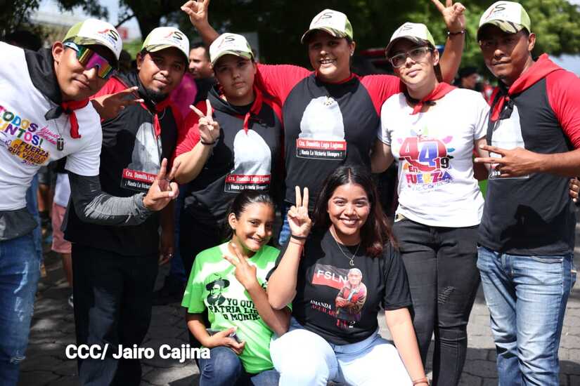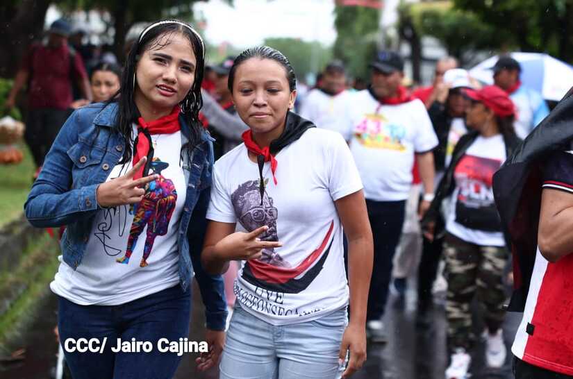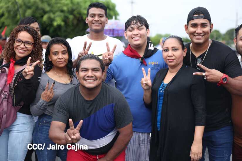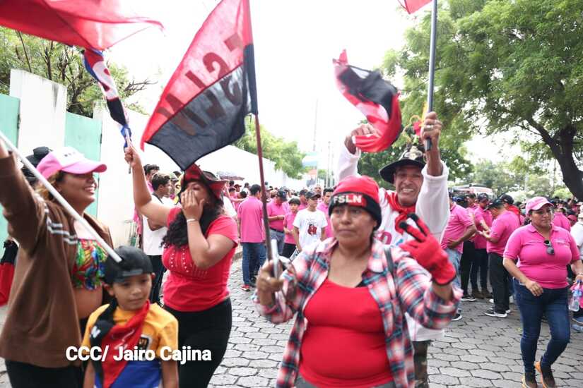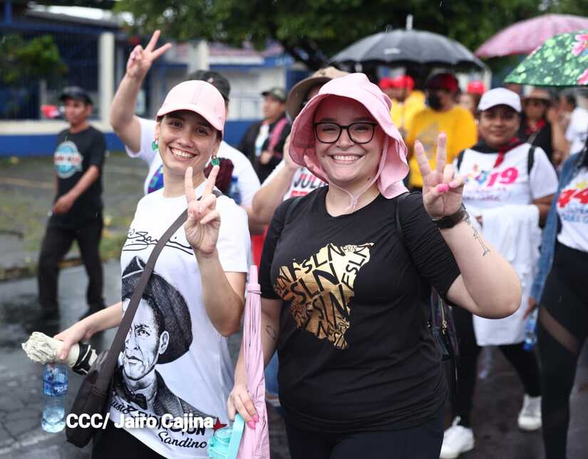 La multitudinaria caminata de este sábado 15 de julio, en saludo al 44719, inició en el sector del kilómetro 4 y medio de la Carretera Norte, frente al Centro Cultural y Politécnico José Coronel Urtecho; recorrió las calles, barrios, pistas y finalizó en la Casa Museo Comandante Julio Buitrago, con un concierto denominado “La Paz, Nuestra Victoria”.