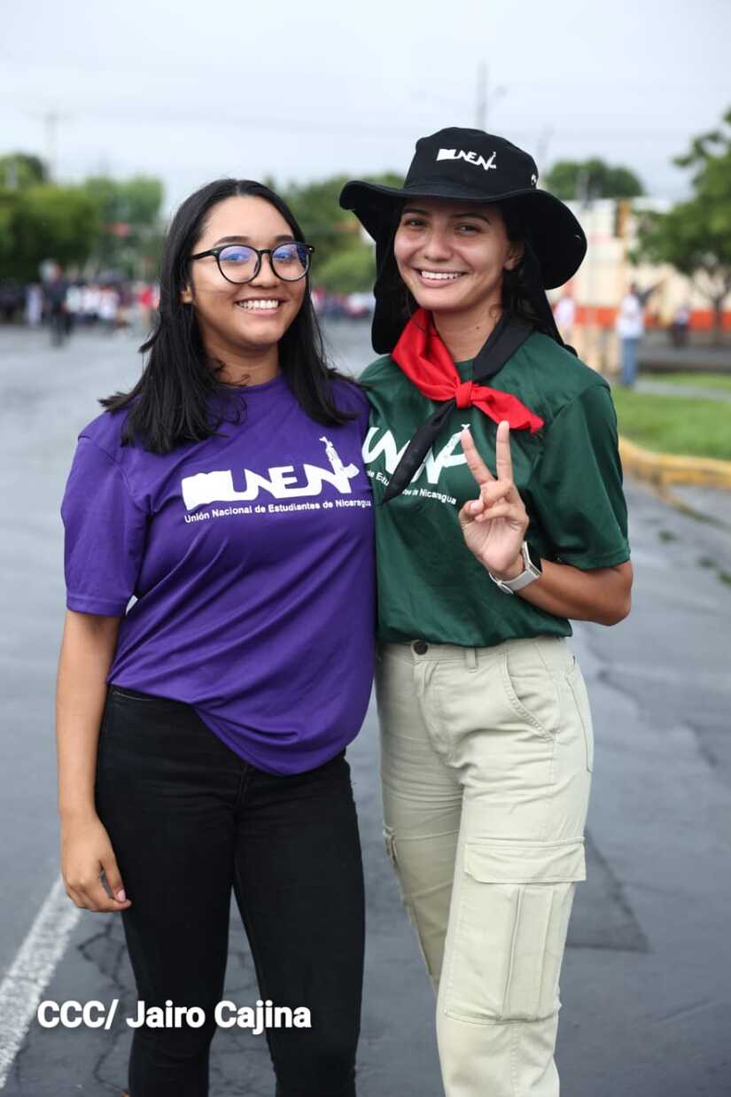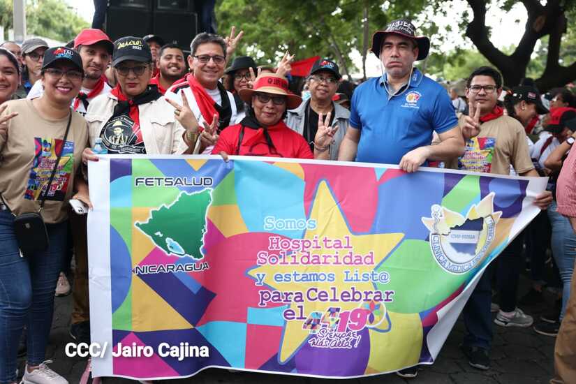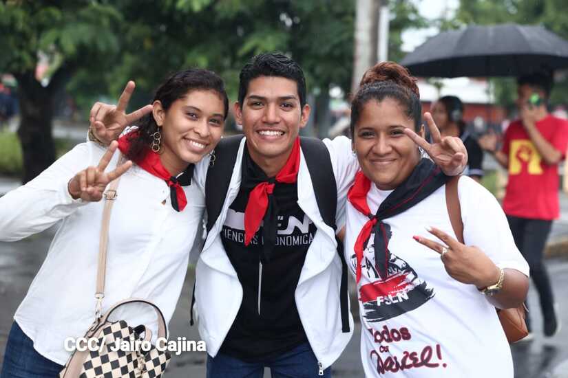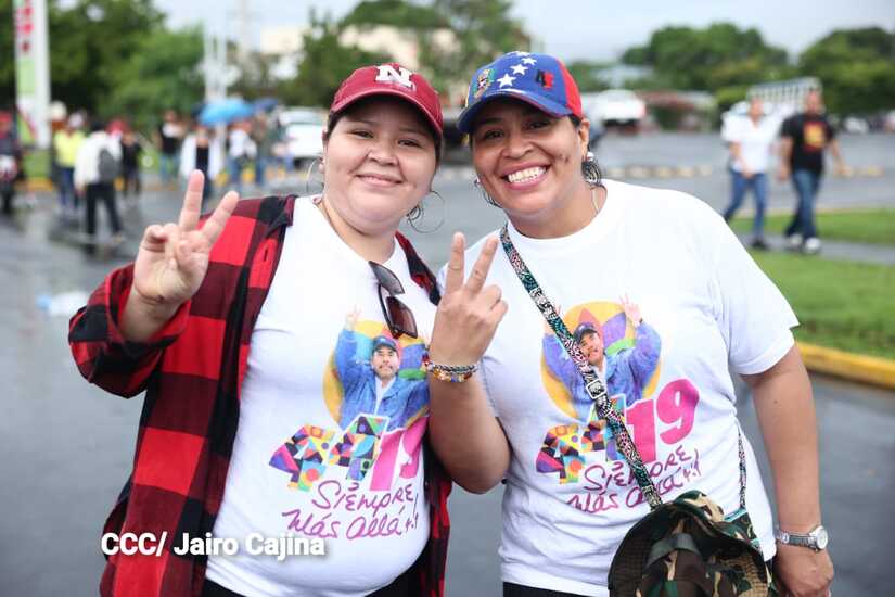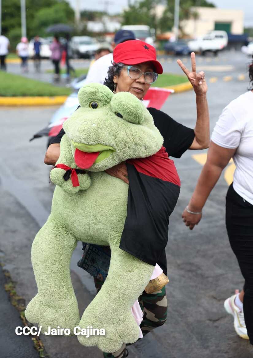 La multitudinaria caminata de este sábado 15 de julio, en saludo al 44719, inició en el sector del kilómetro 4 y medio de la Carretera Norte, frente al Centro Cultural y Politécnico José Coronel Urtecho; recorrió las calles, barrios, pistas y finalizó en la Casa Museo Comandante Julio Buitrago, con un concierto denominado “La Paz, Nuestra Victoria”.