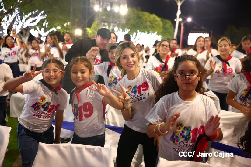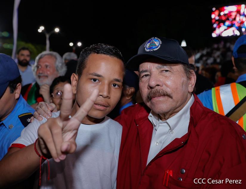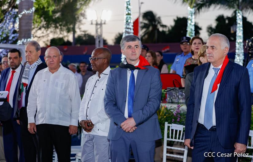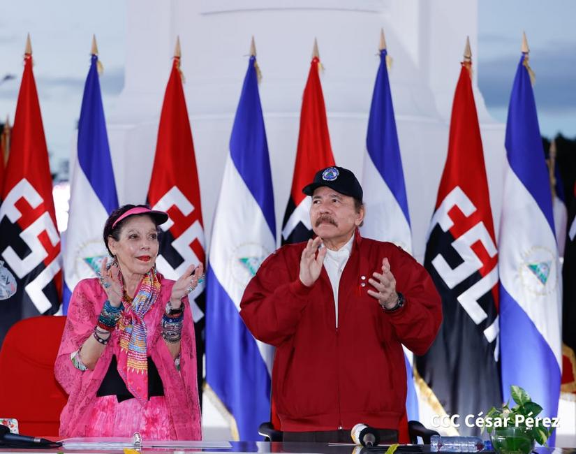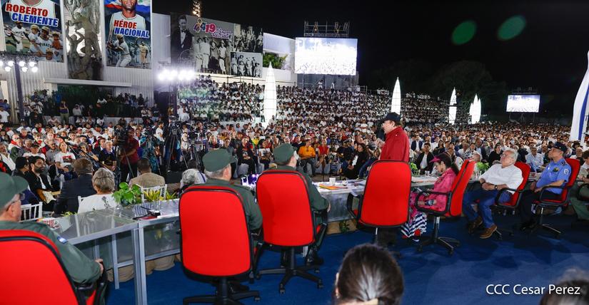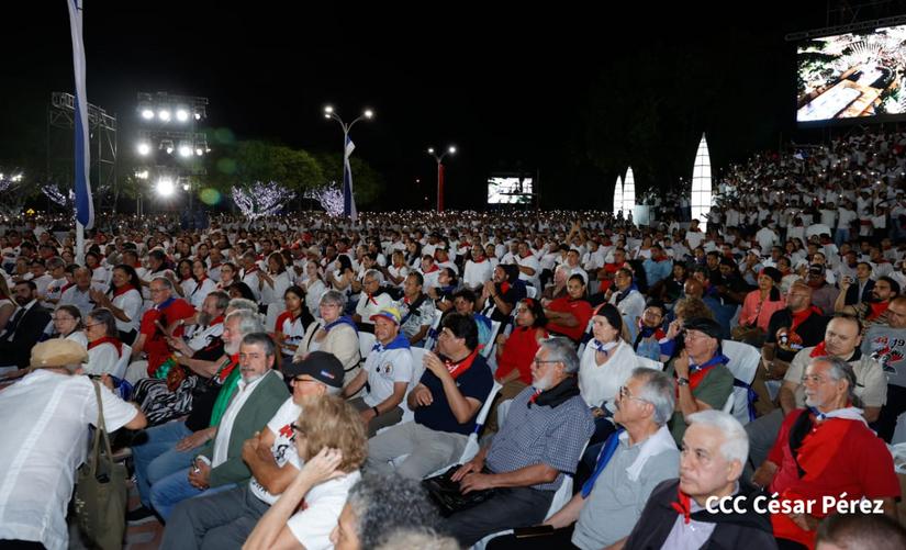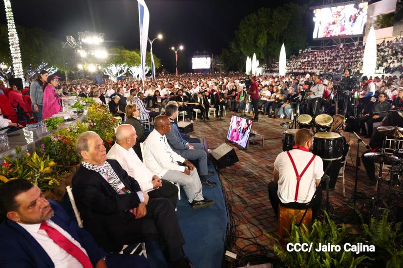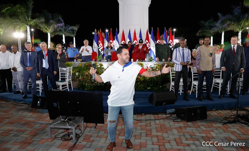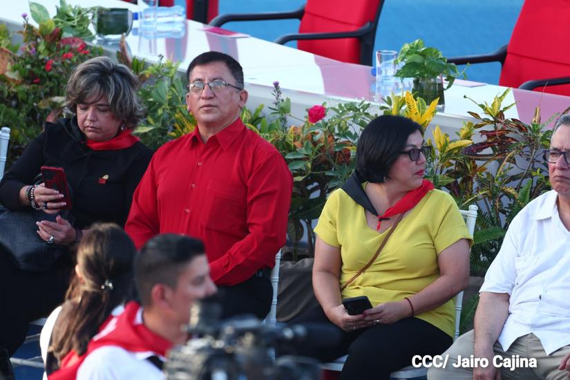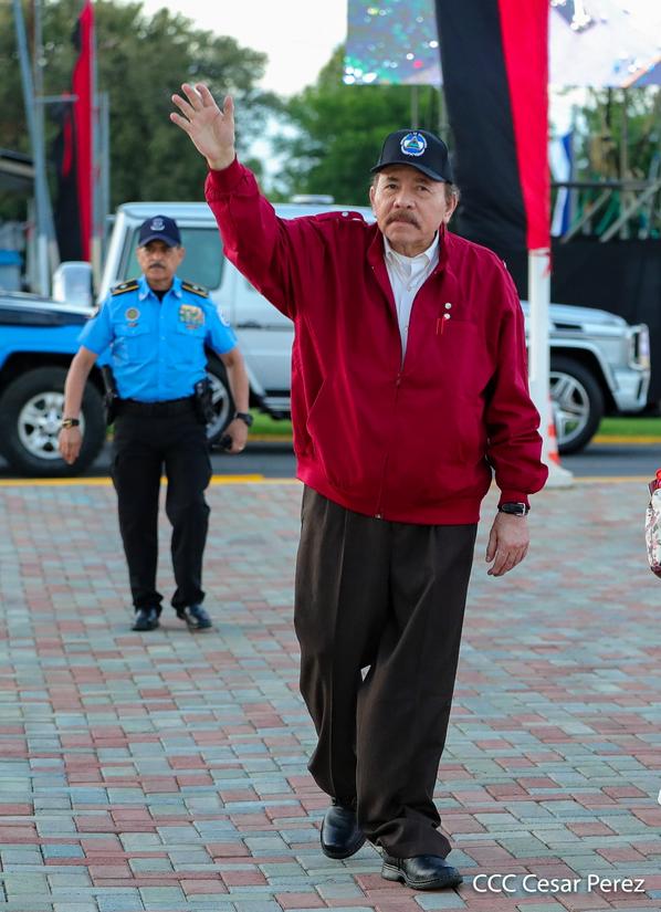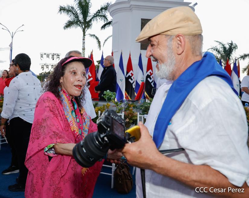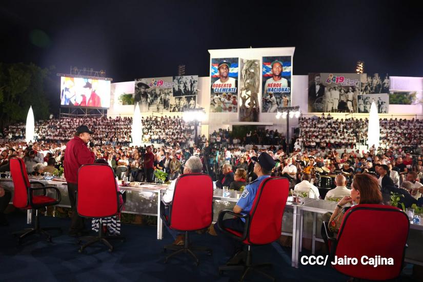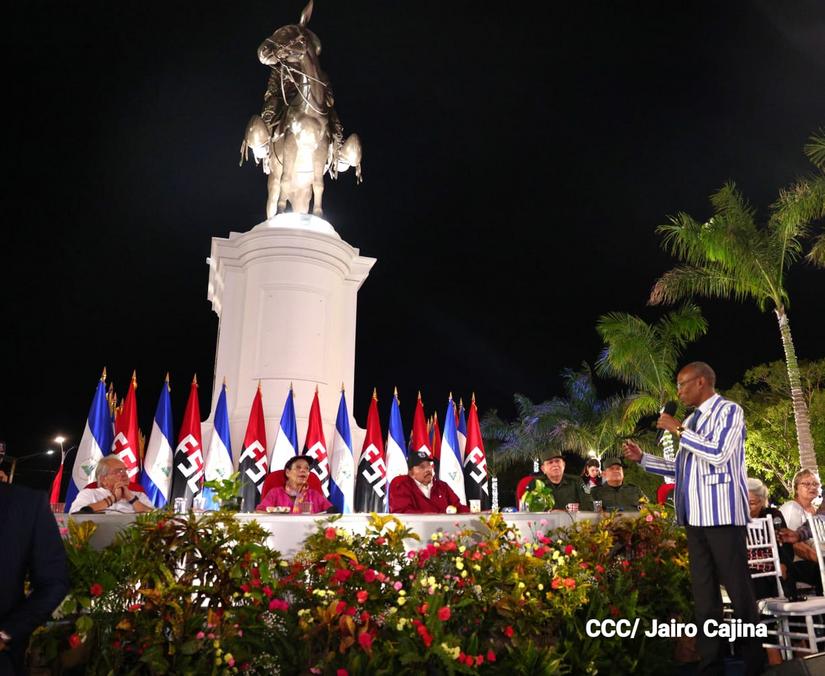 En la Plaza Parque de la Dignidad Nacional el Presidente Comandante Daniel Ortega Saavedra y la Vicepresidenta Compañera Rosario Murillo, presidieron el acto conmemorativo del 44 aniversario del triunfo de la Revolución Popular Sandinista.