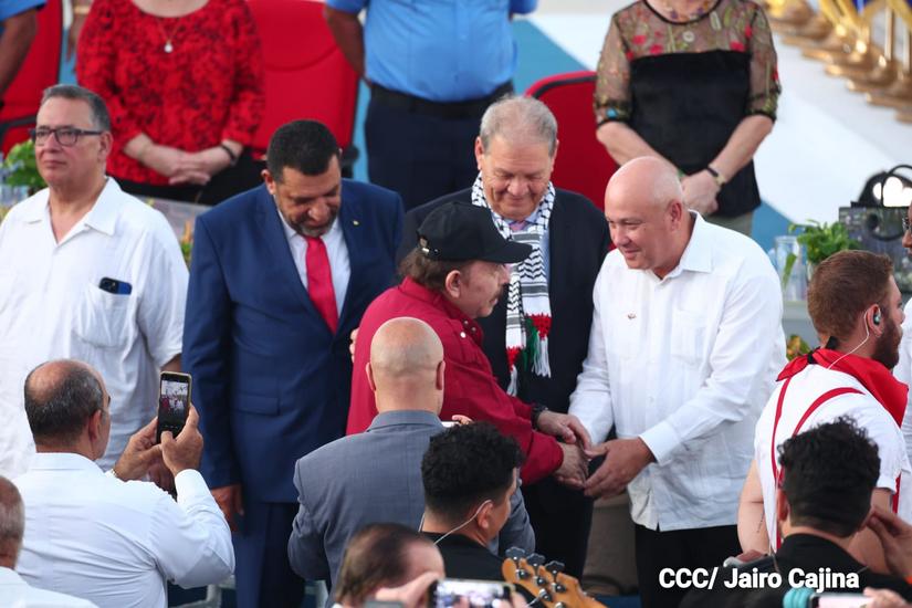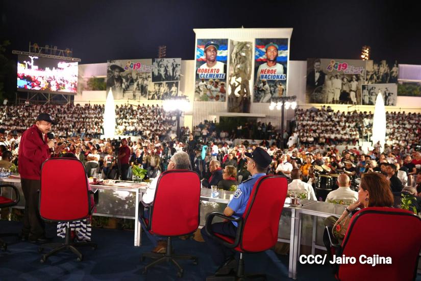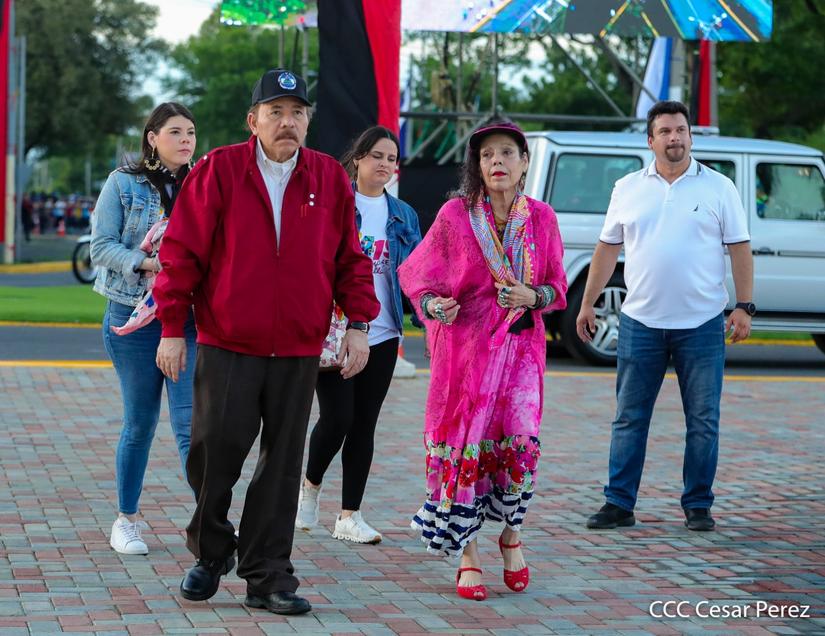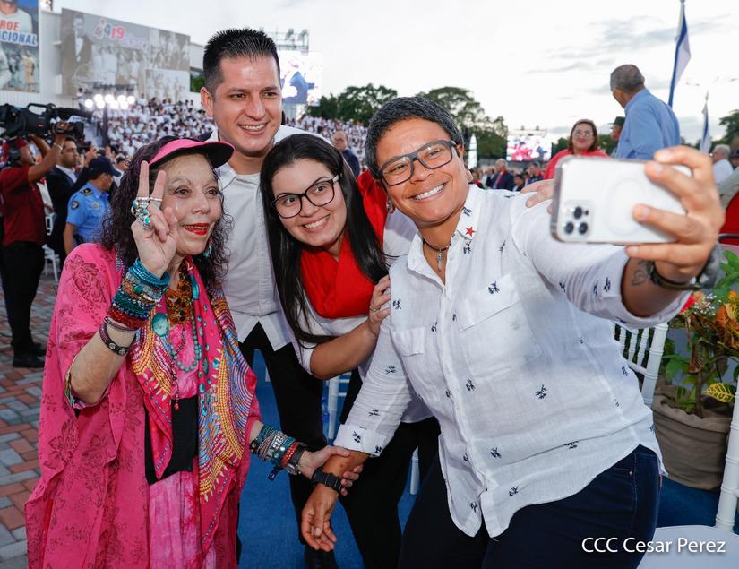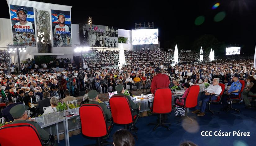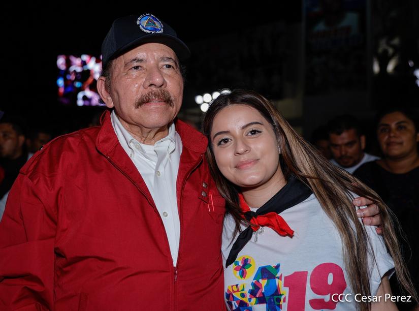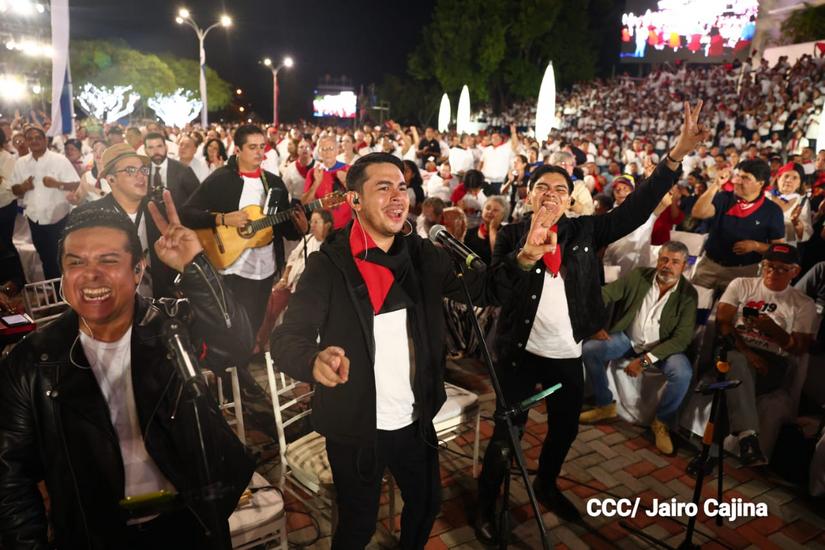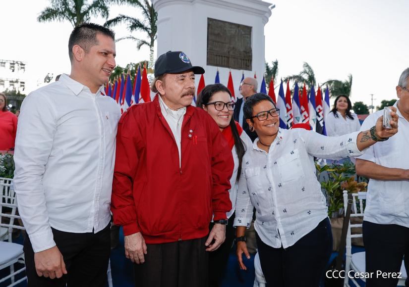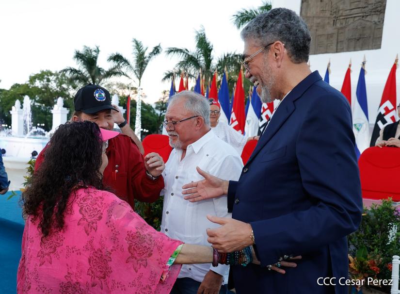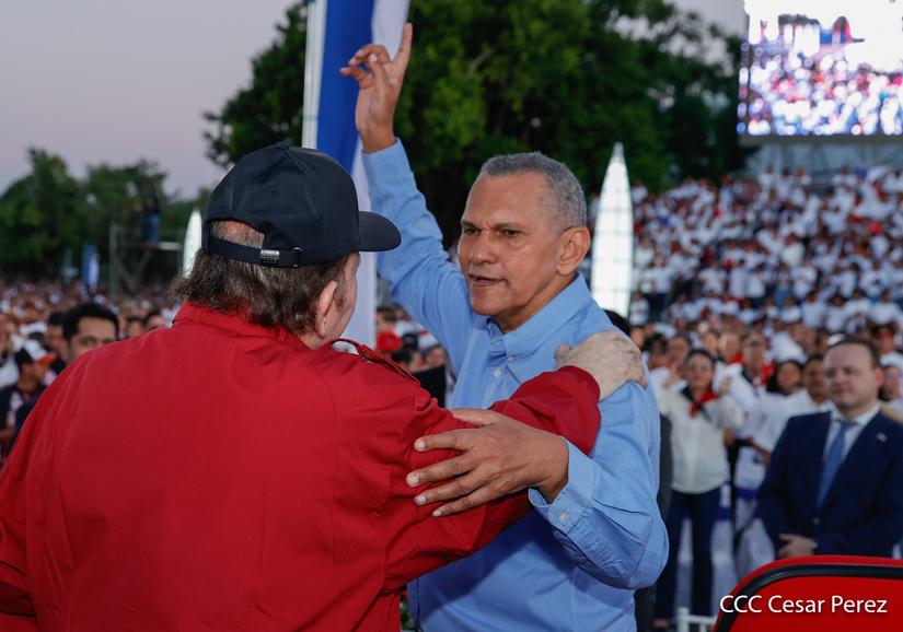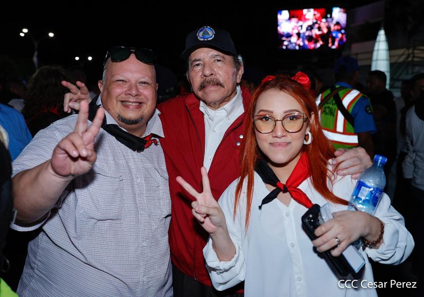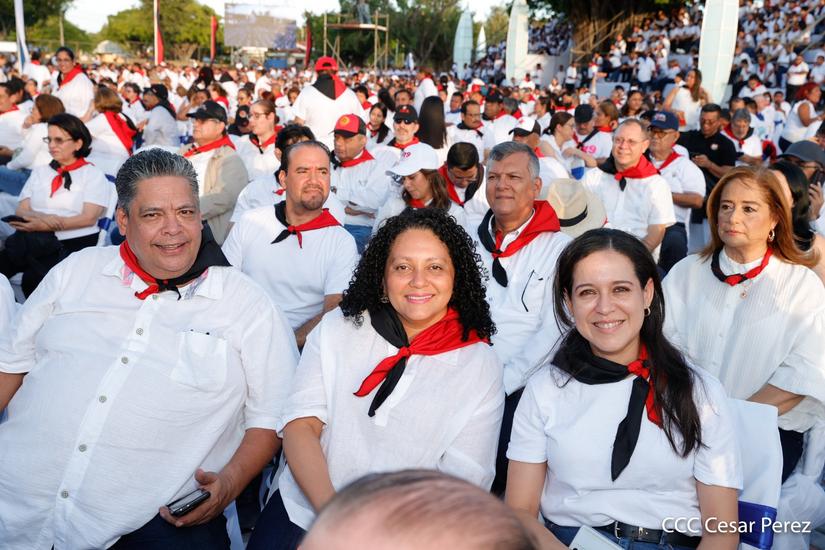 En la Plaza Parque de la Dignidad Nacional el Presidente Comandante Daniel Ortega Saavedra y la Vicepresidenta Compañera Rosario Murillo, presidieron el acto conmemorativo del 44 aniversario del triunfo de la Revolución Popular Sandinista.