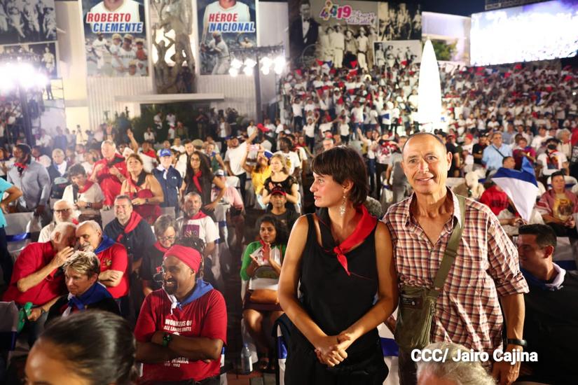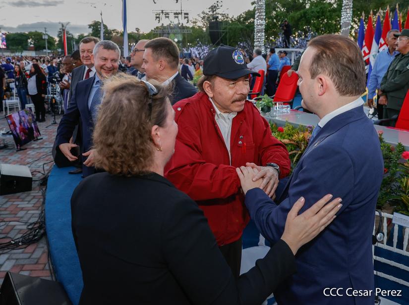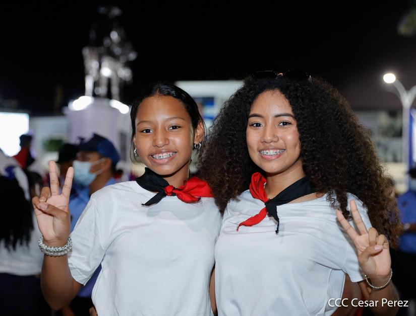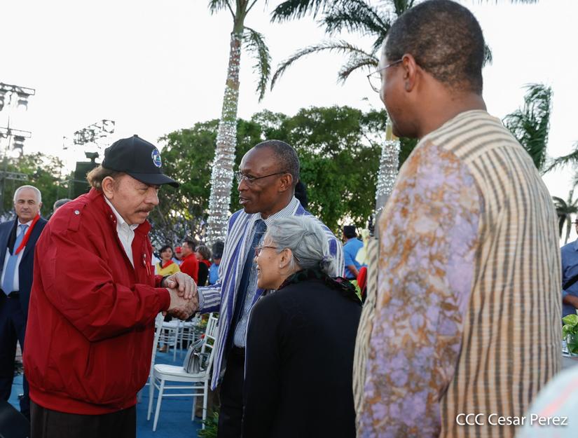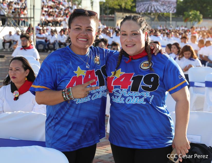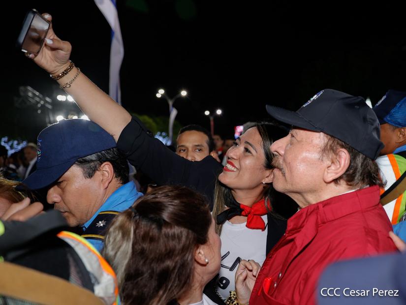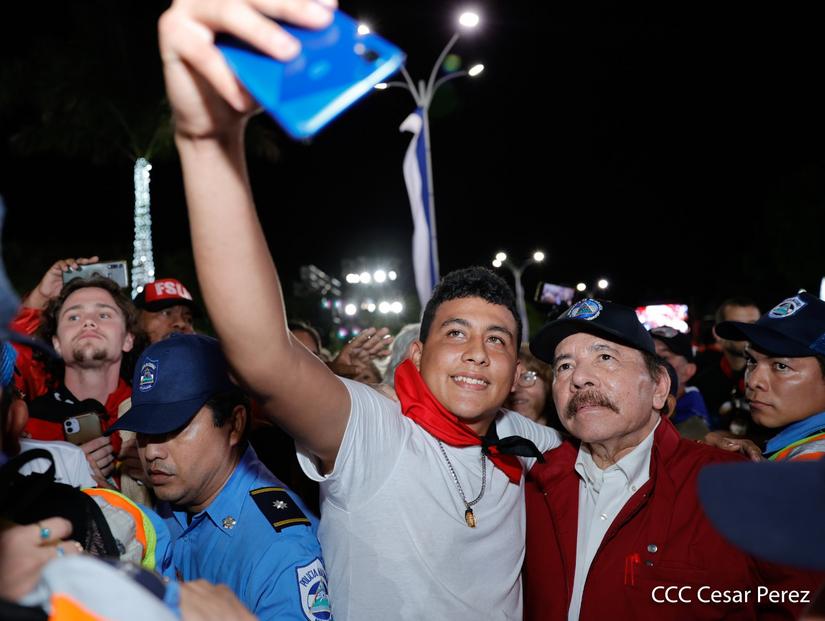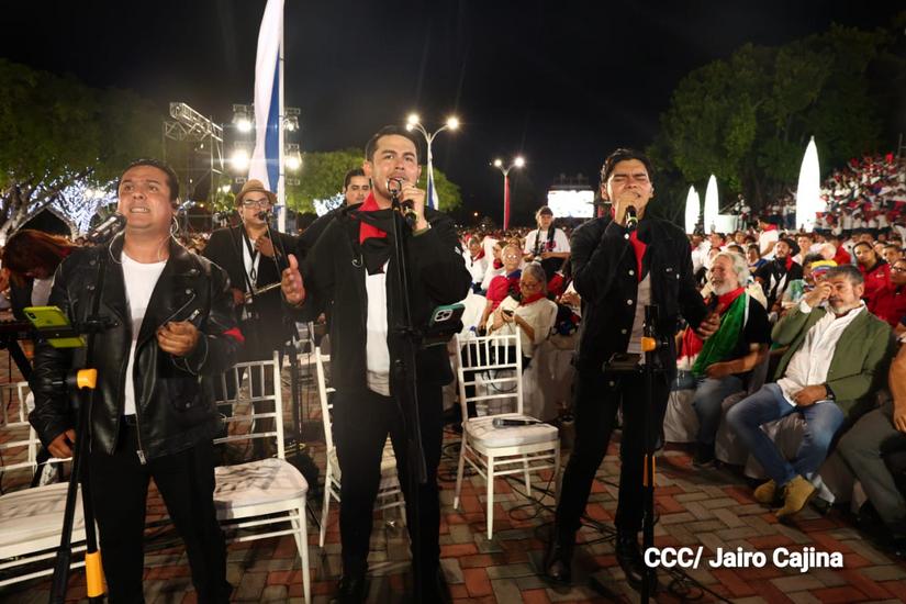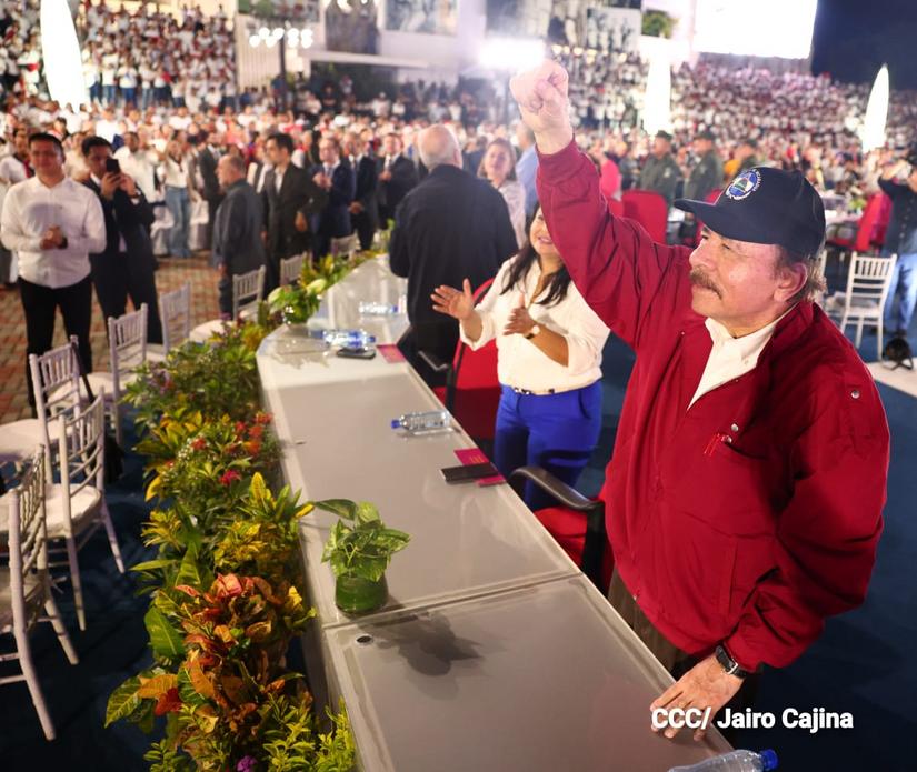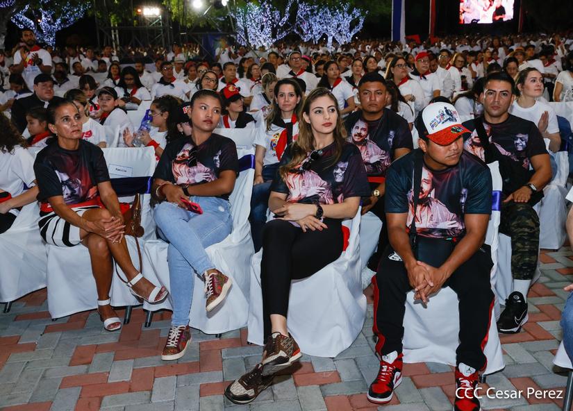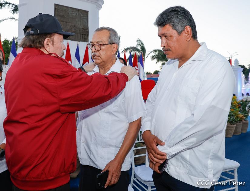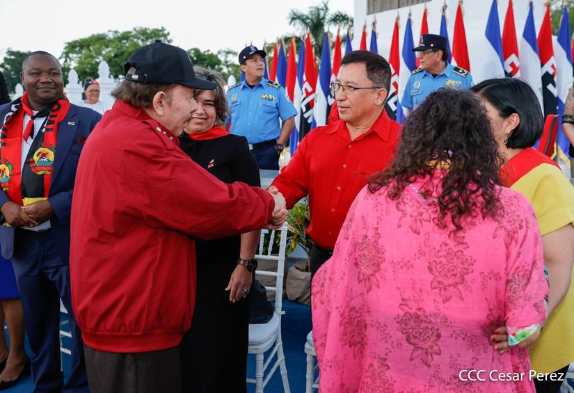 En la Plaza Parque de la Dignidad Nacional el Presidente Comandante Daniel Ortega Saavedra y la Vicepresidenta Compañera Rosario Murillo, presidieron el acto conmemorativo del 44 aniversario del triunfo de la Revolución Popular Sandinista.
