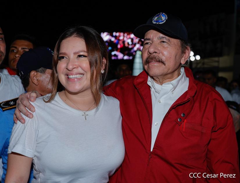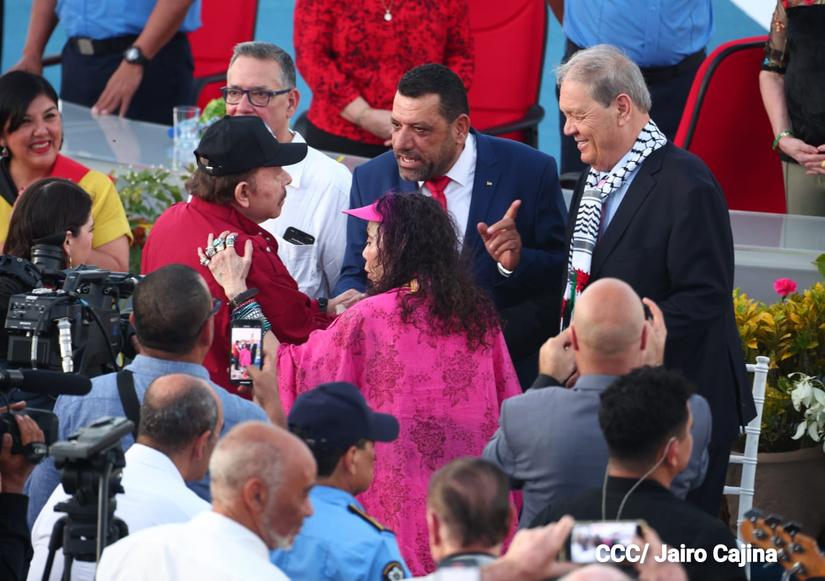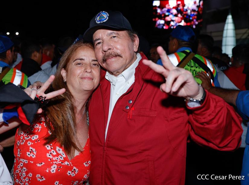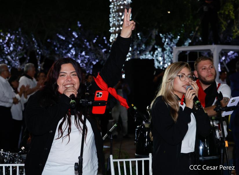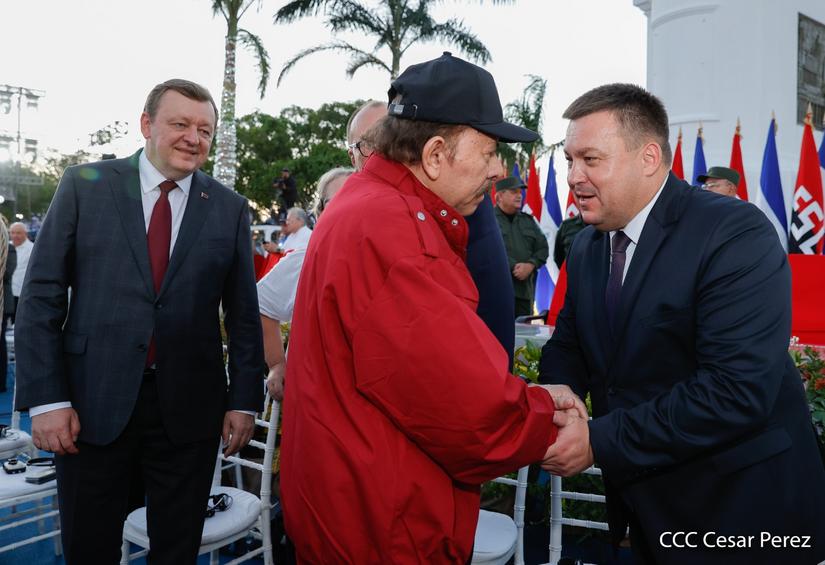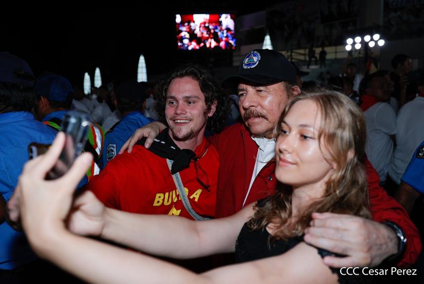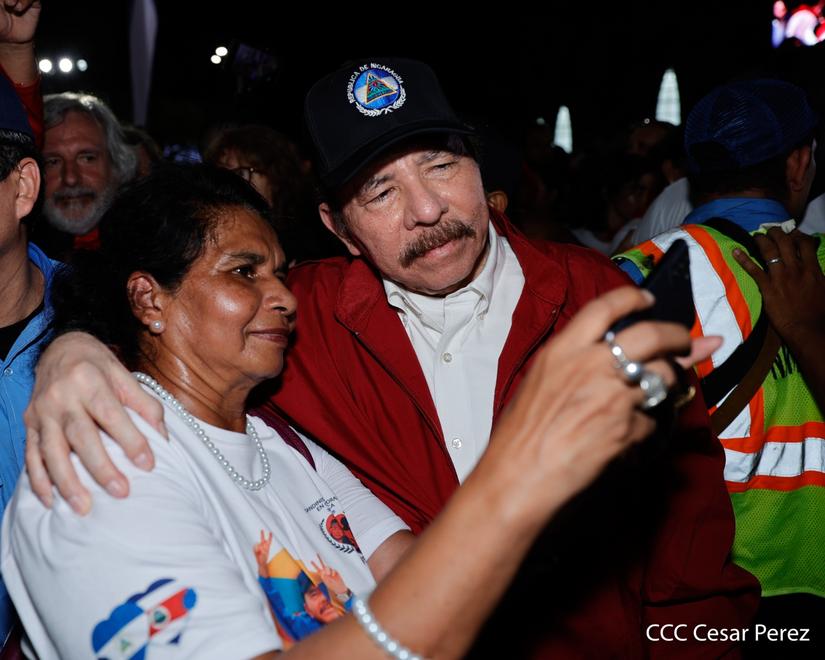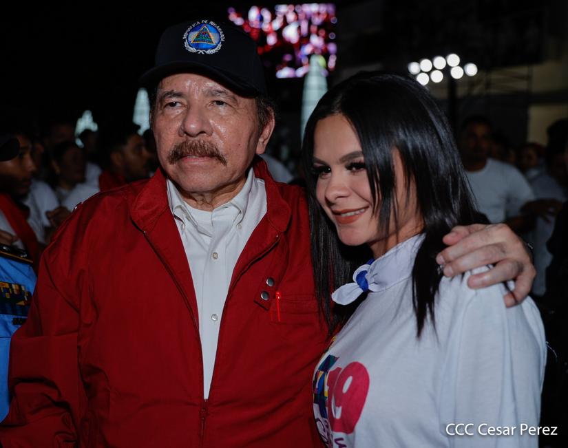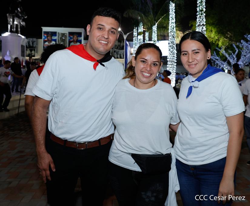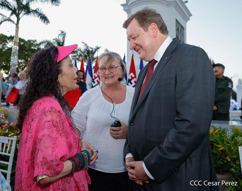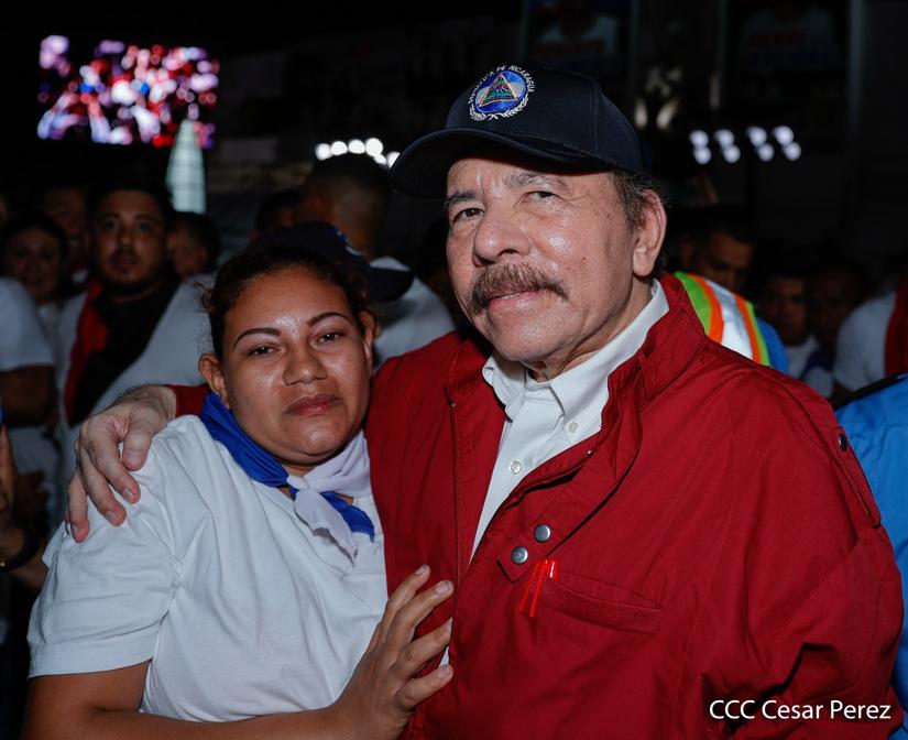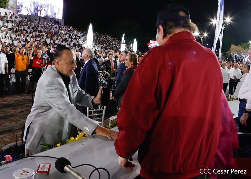 En la Plaza Parque de la Dignidad Nacional el Presidente Comandante Daniel Ortega Saavedra y la Vicepresidenta Compañera Rosario Murillo, presidieron el acto conmemorativo del 44 aniversario del triunfo de la Revolución Popular Sandinista.