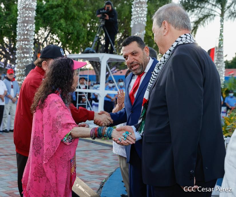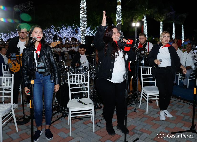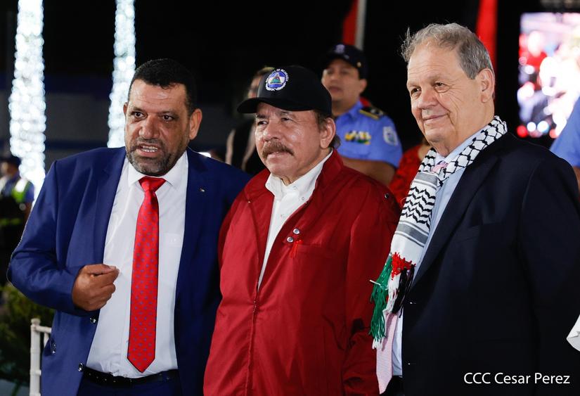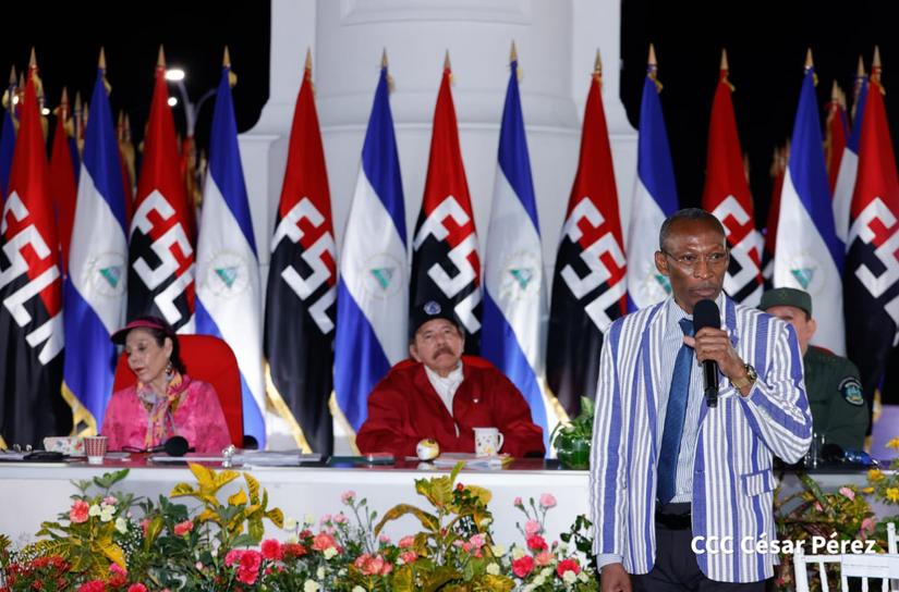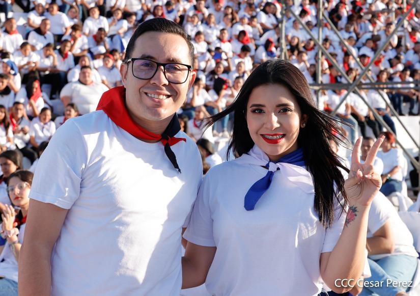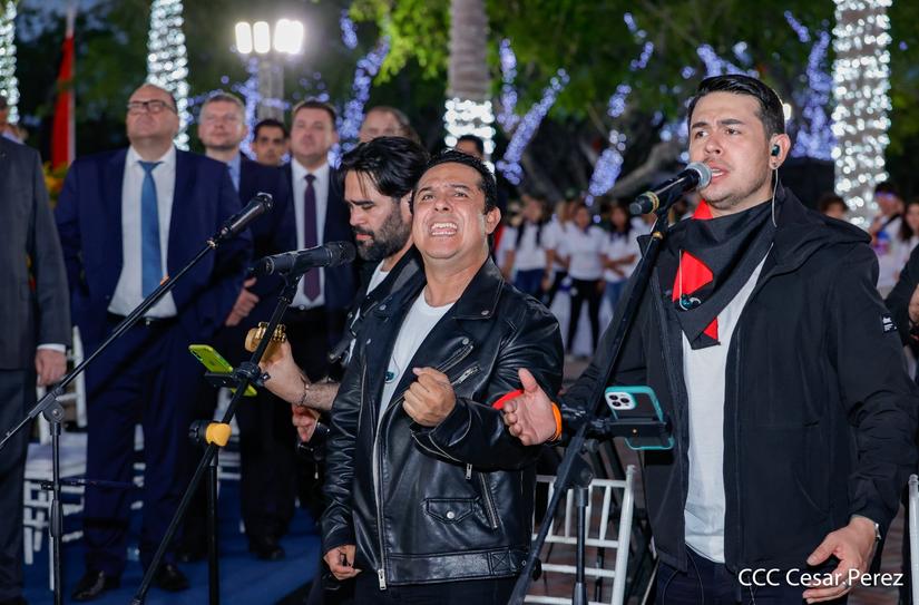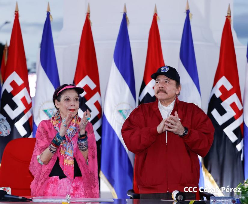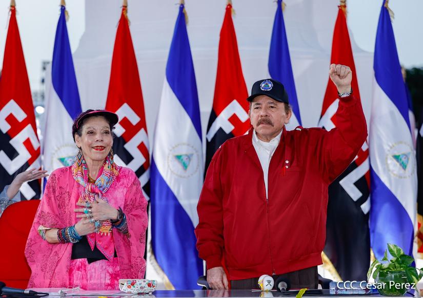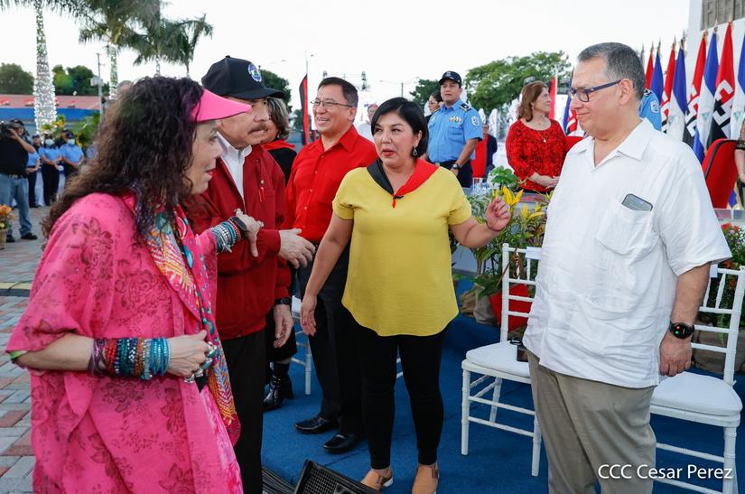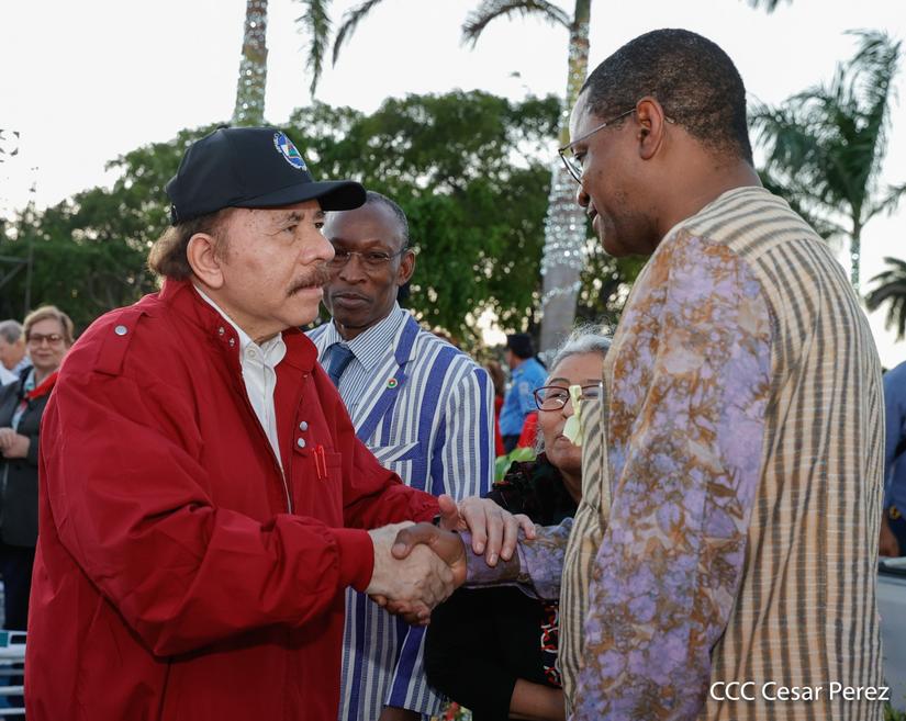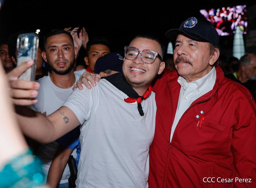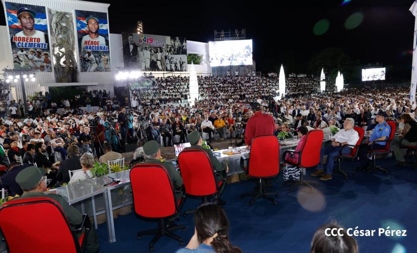 En la Plaza Parque de la Dignidad Nacional el Presidente Comandante Daniel Ortega Saavedra y la Vicepresidenta Compañera Rosario Murillo, presidieron el acto conmemorativo del 44 aniversario del triunfo de la Revolución Popular Sandinista.