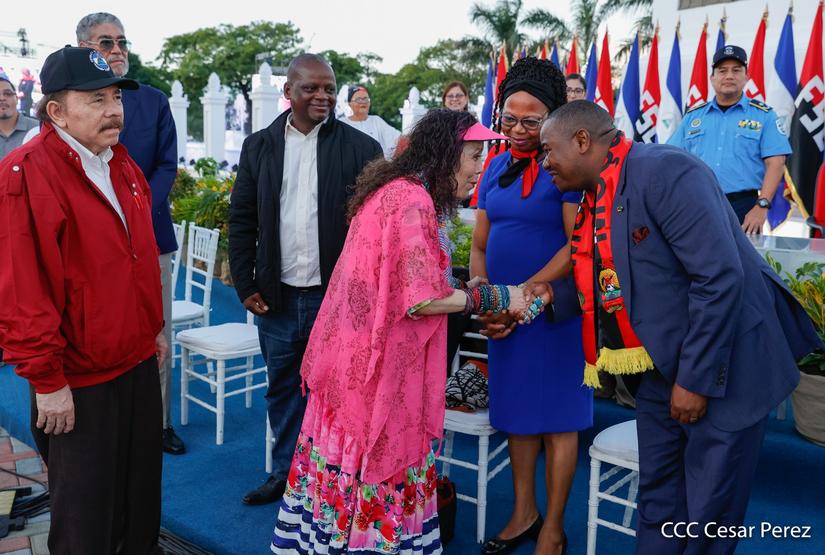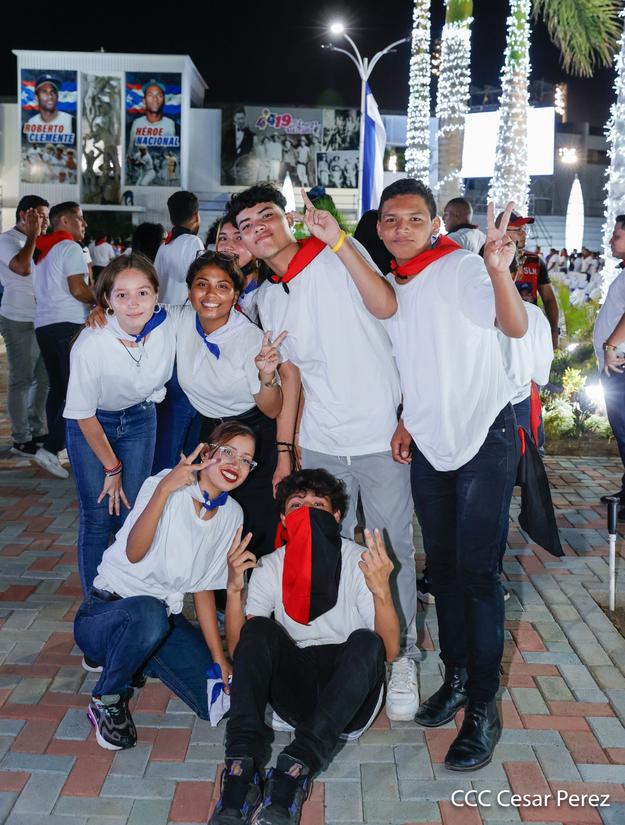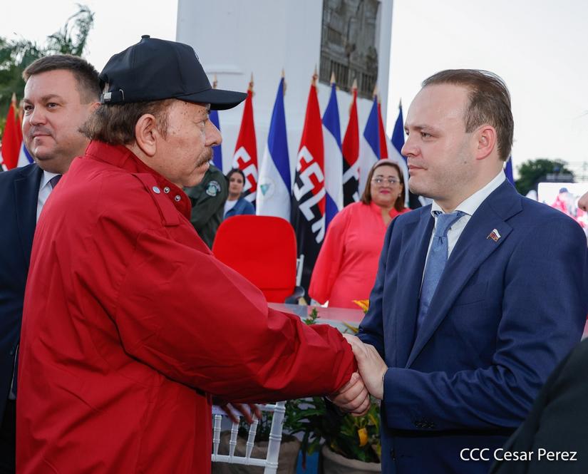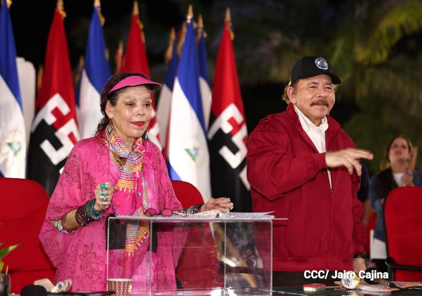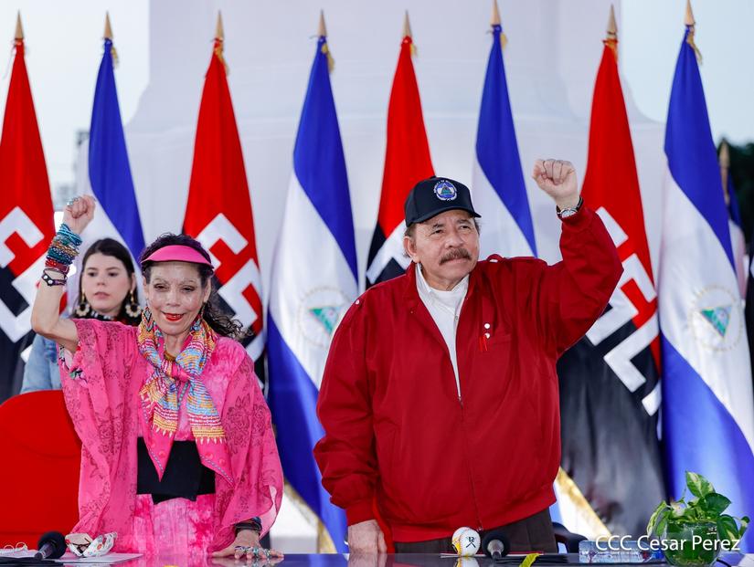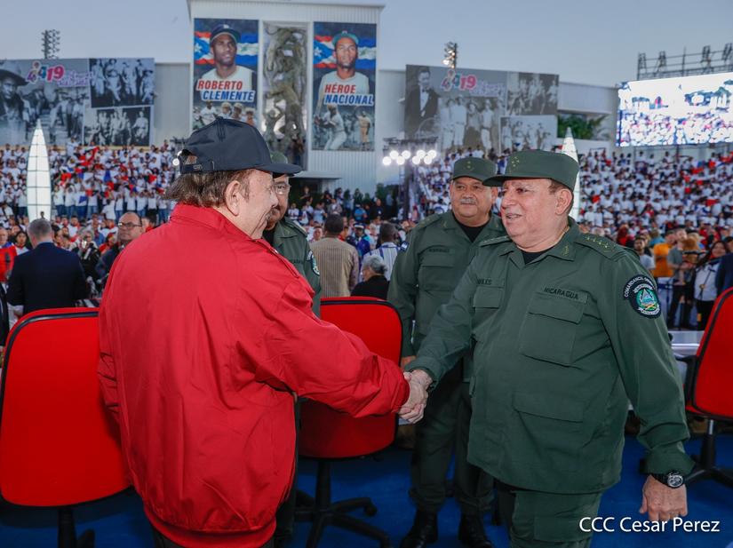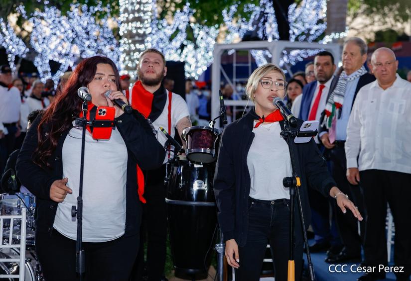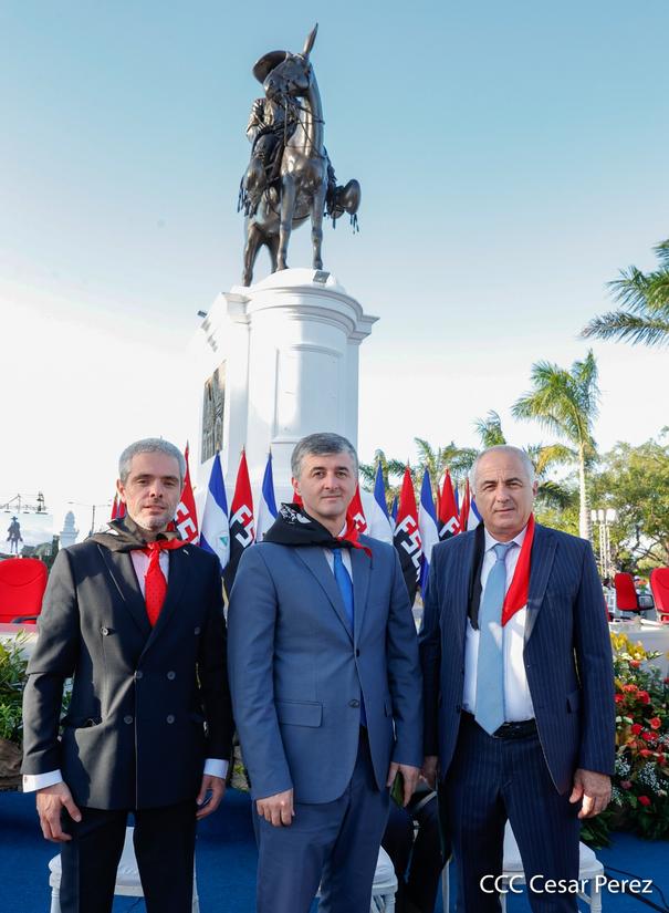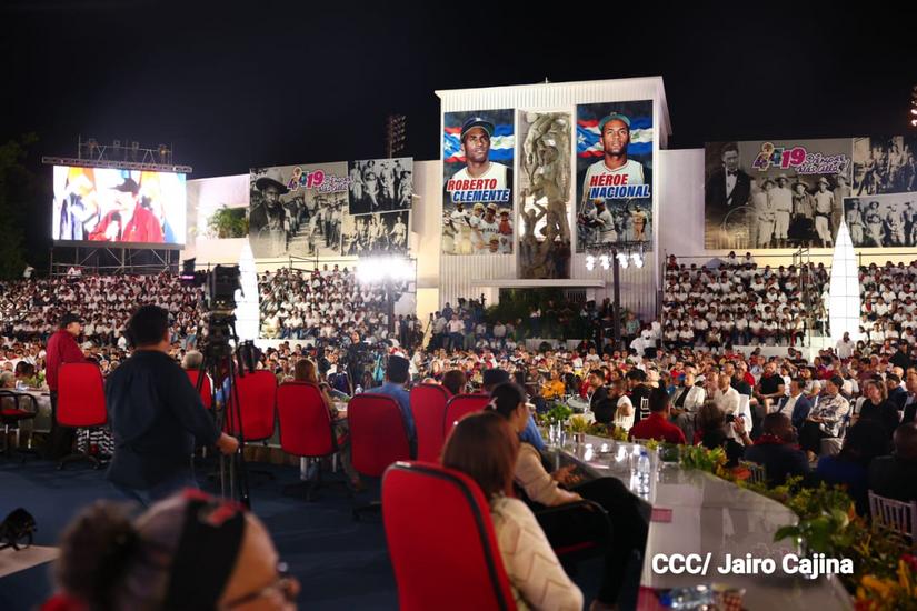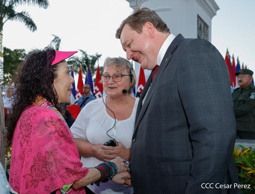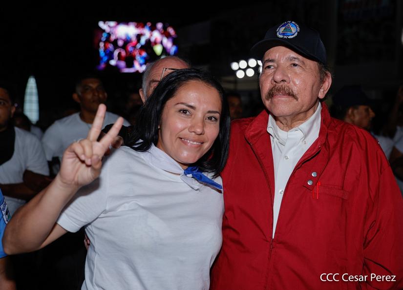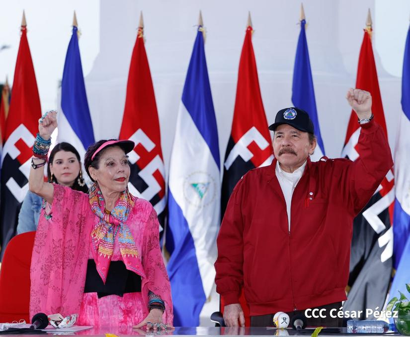 En la Plaza Parque de la Dignidad Nacional el Presidente Comandante Daniel Ortega Saavedra y la Vicepresidenta Compañera Rosario Murillo, presidieron el acto conmemorativo del 44 aniversario del triunfo de la Revolución Popular Sandinista.