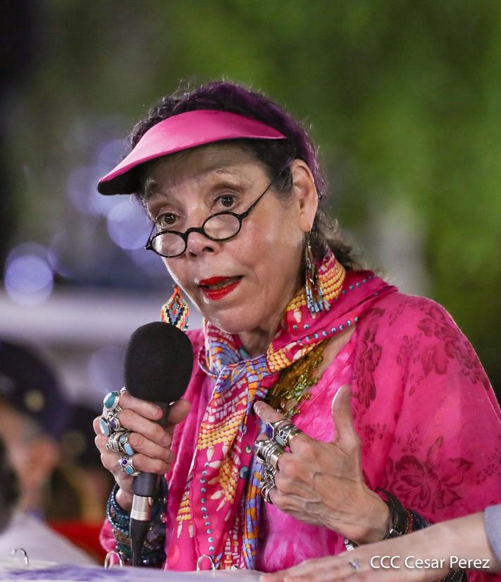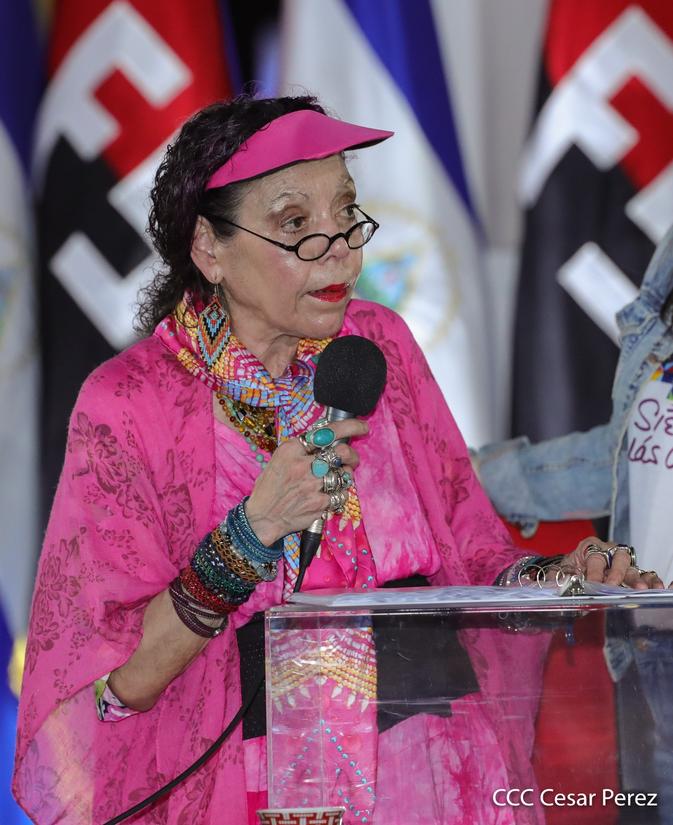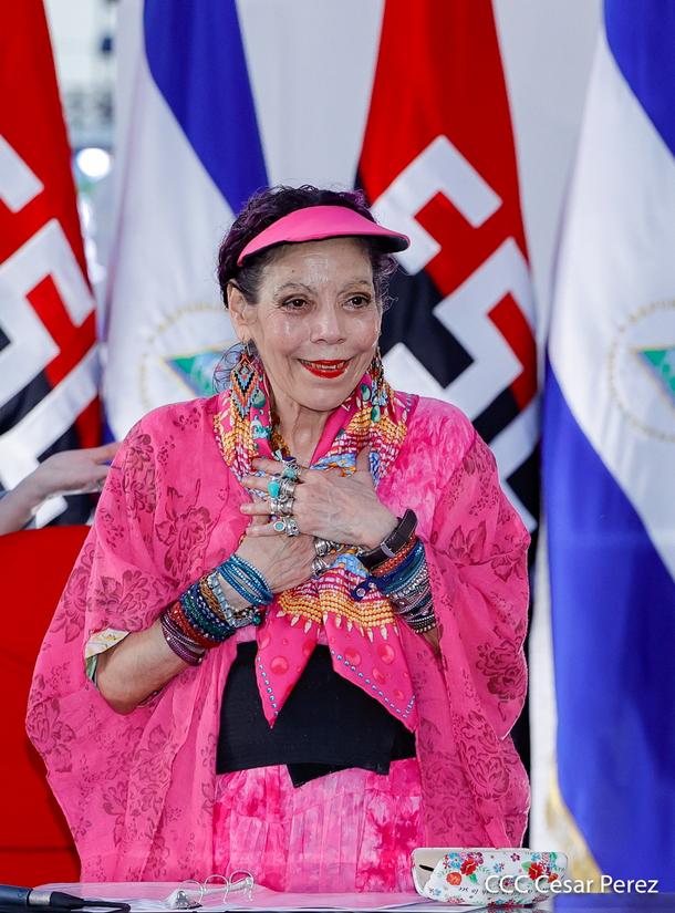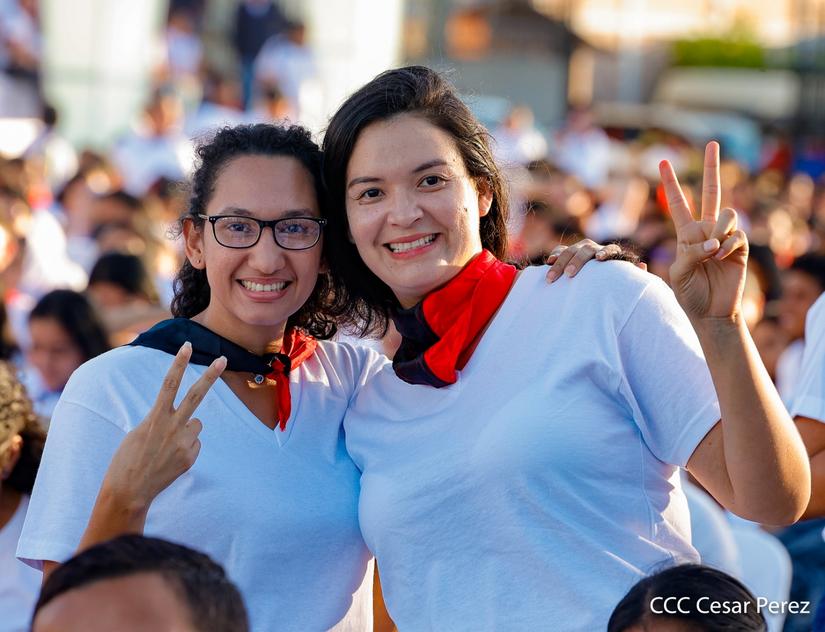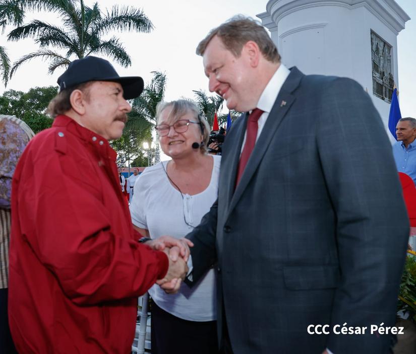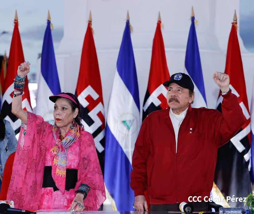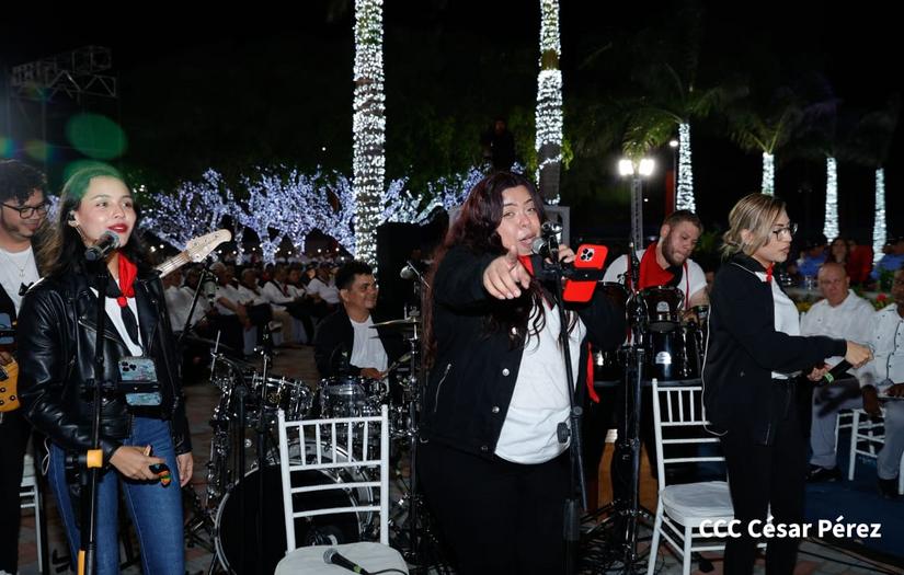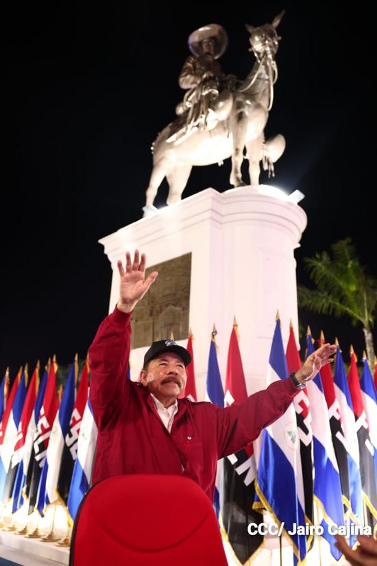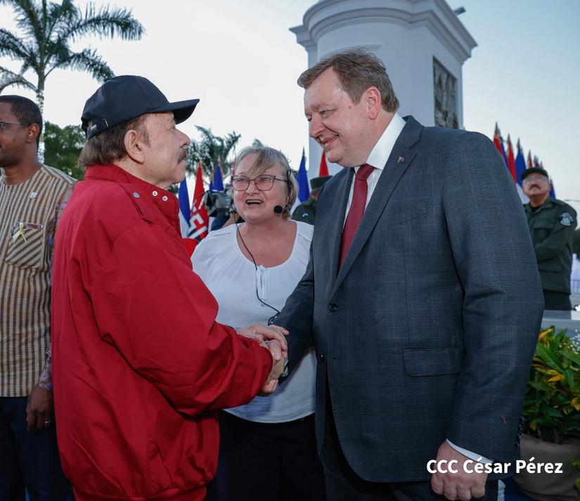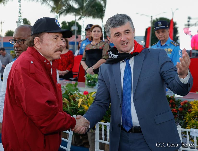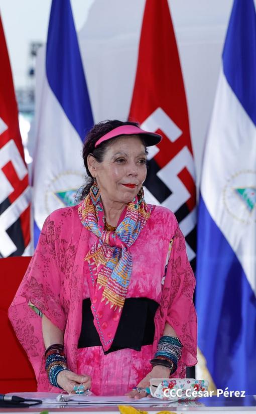 En la Plaza Parque de la Dignidad Nacional el Presidente Comandante Daniel Ortega Saavedra y la Vicepresidenta Compañera Rosario Murillo, presidieron el acto conmemorativo del 44 aniversario del triunfo de la Revolución Popular Sandinista.