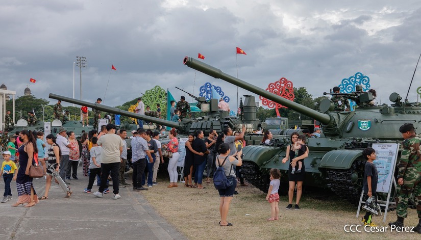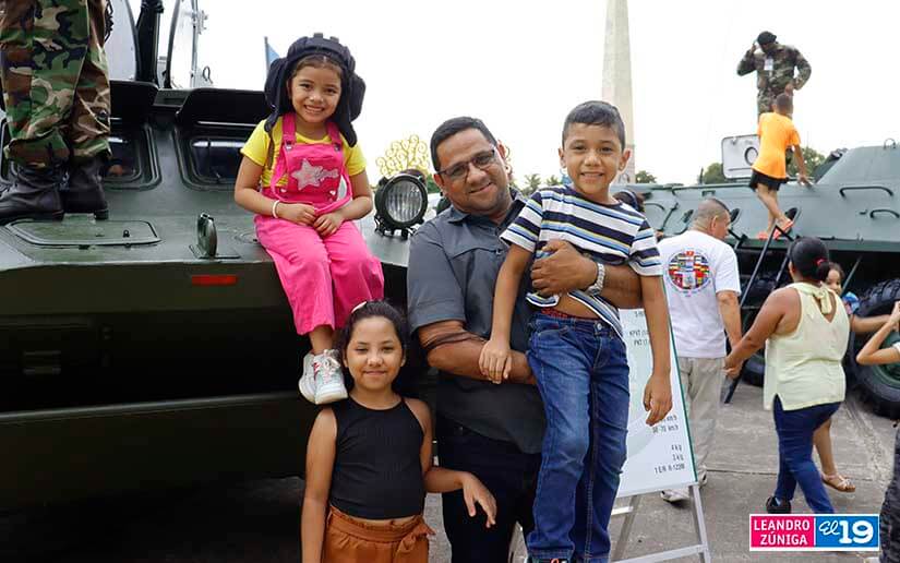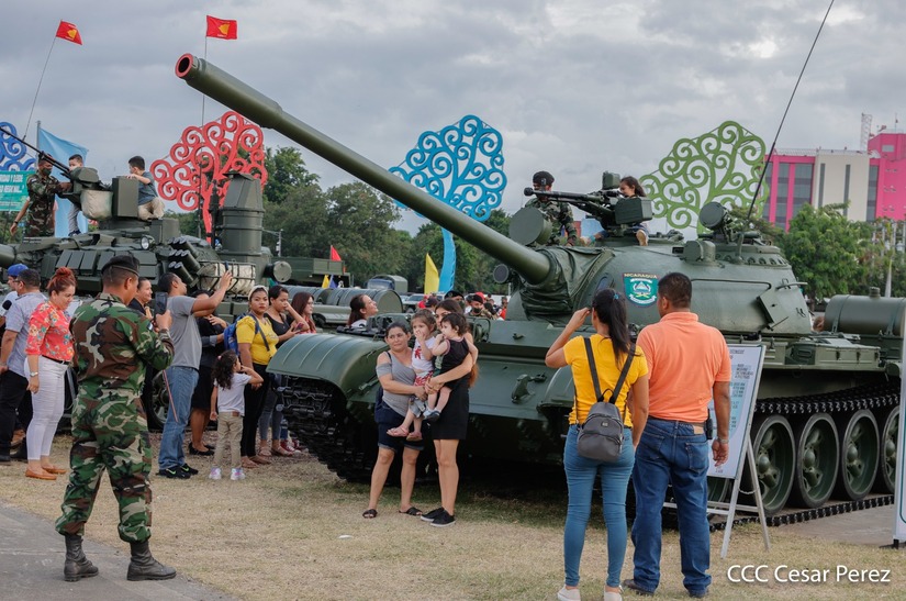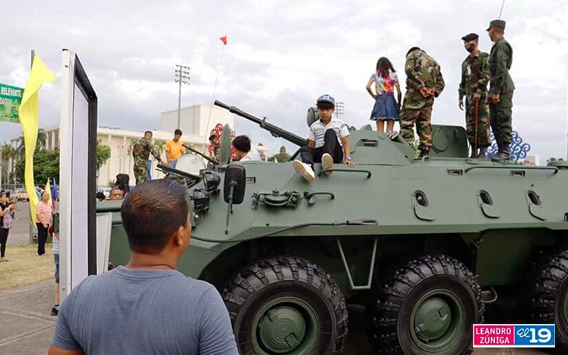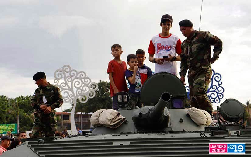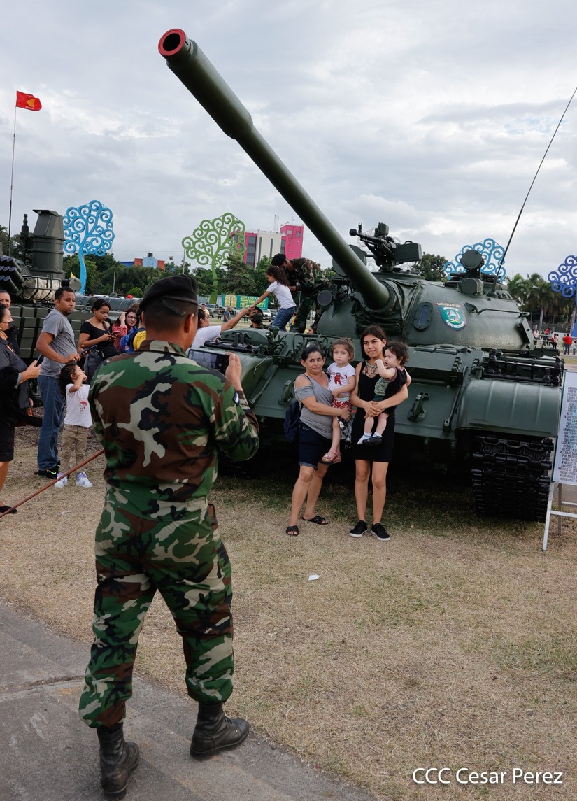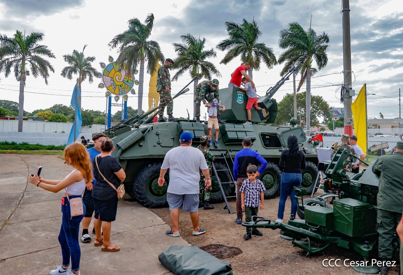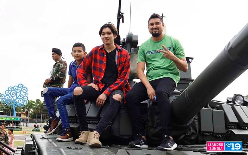 Gran afluencia de familias recibió en su segundo día la Exposición Estática del Ejército de Nicaragua, un espacio donde se pueden apreciar equipos y medios de las diferentes fuerzas de la institución.