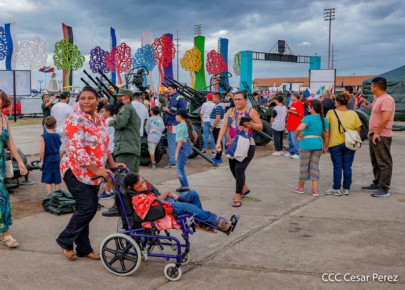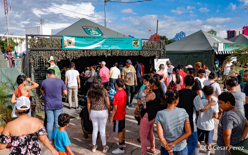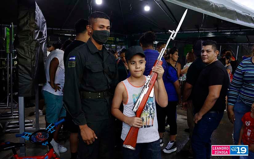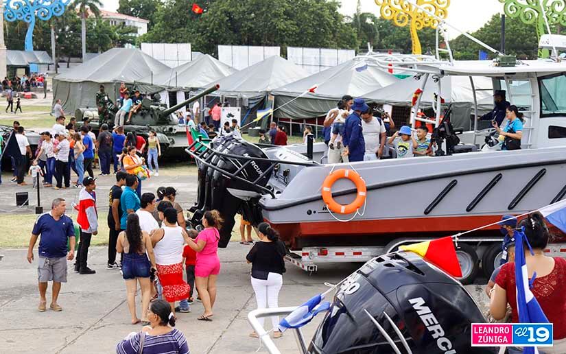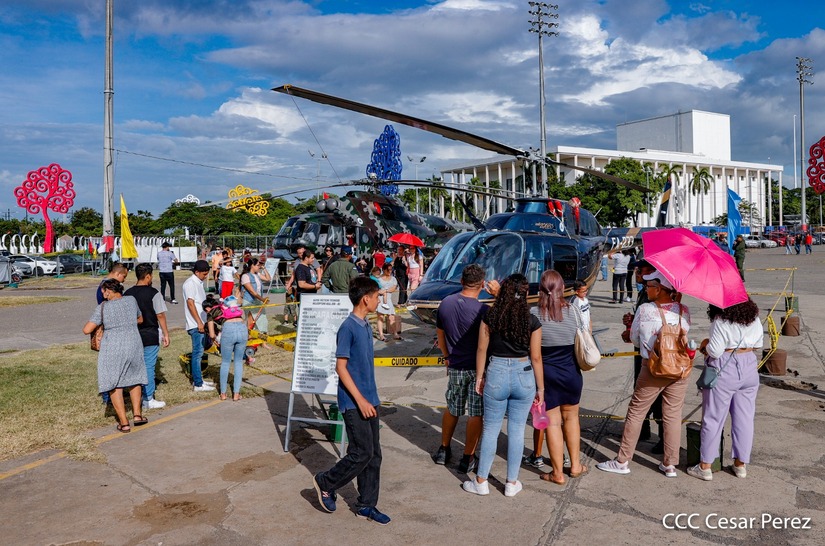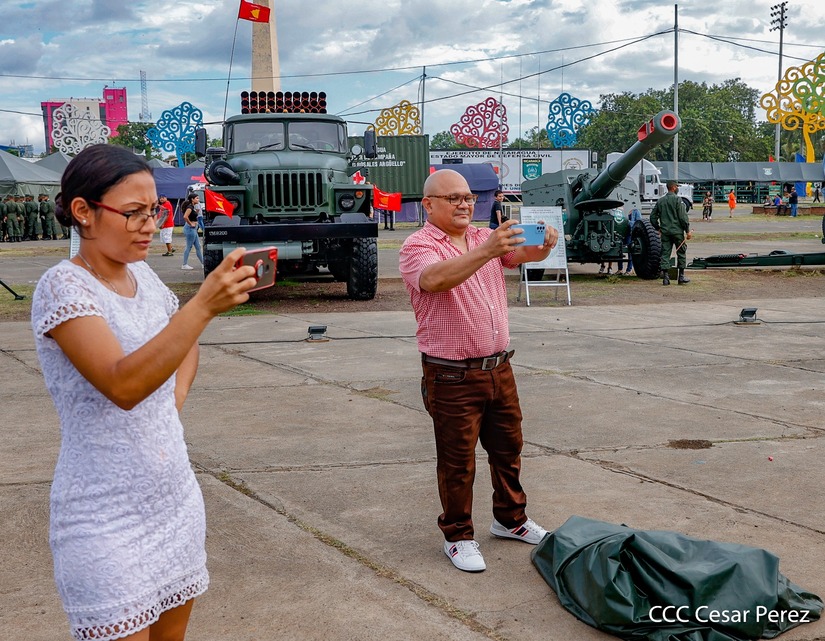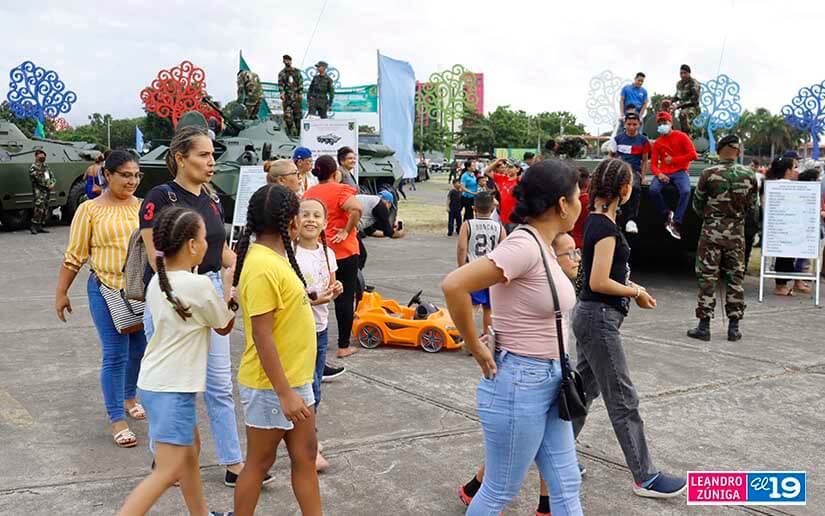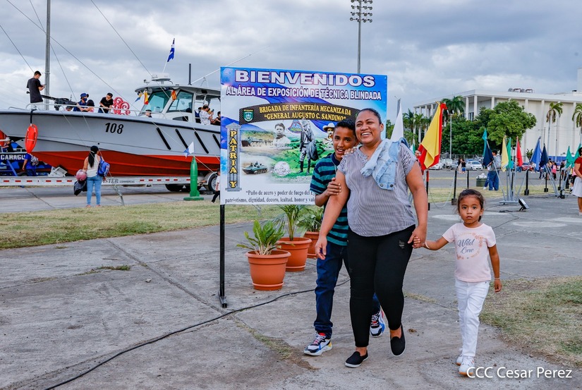 Gran afluencia de familias recibió en su segundo día la Exposición Estática del Ejército de Nicaragua, un espacio donde se pueden apreciar equipos y medios de las diferentes fuerzas de la institución.