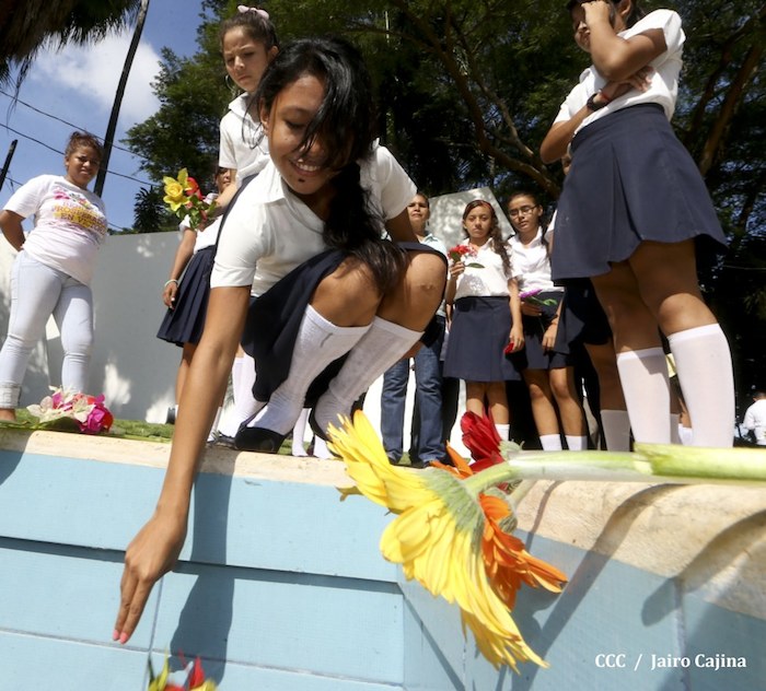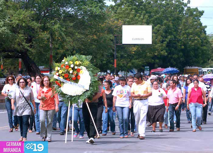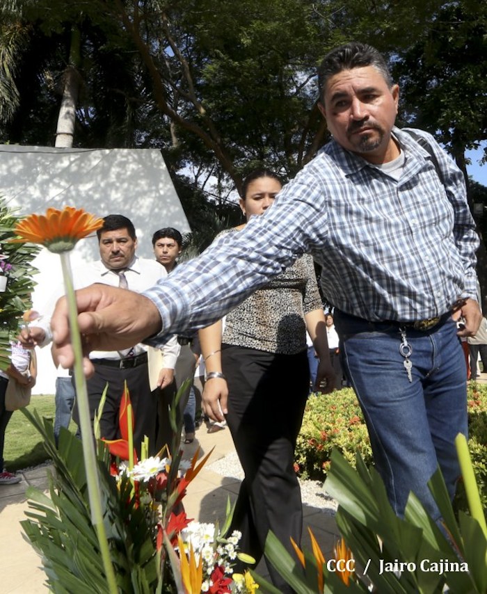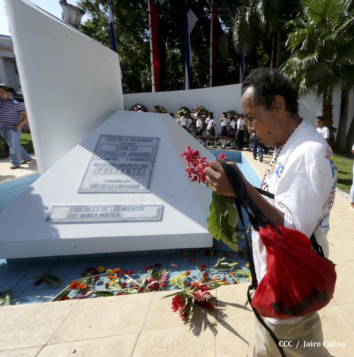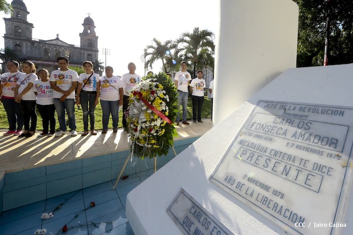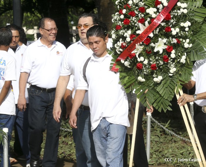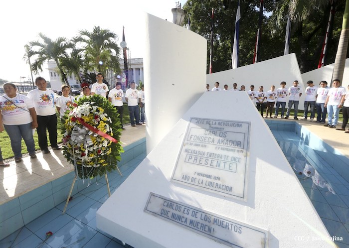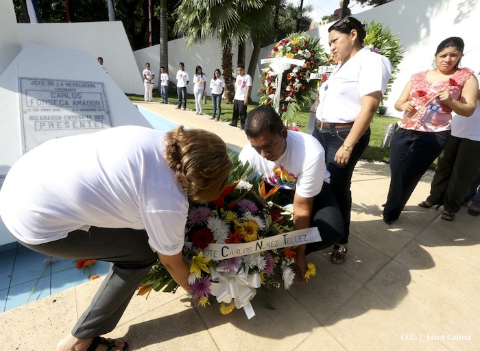 Pueblo coloca ofrendas florales en honor al Comandante Carlos Fonseca