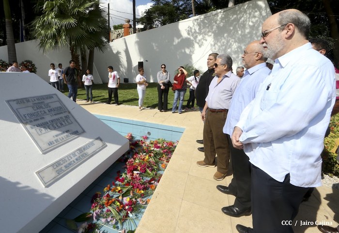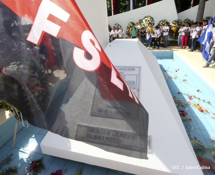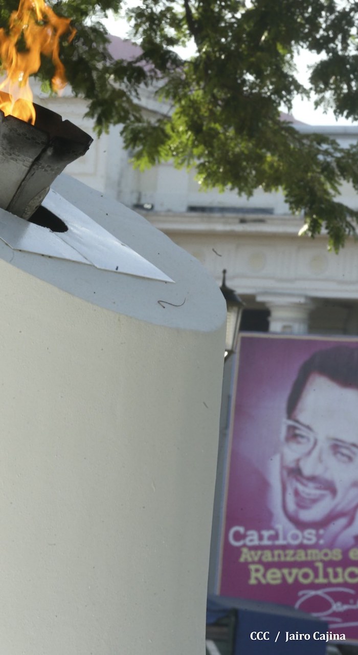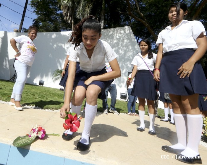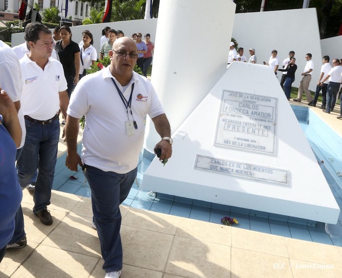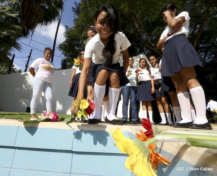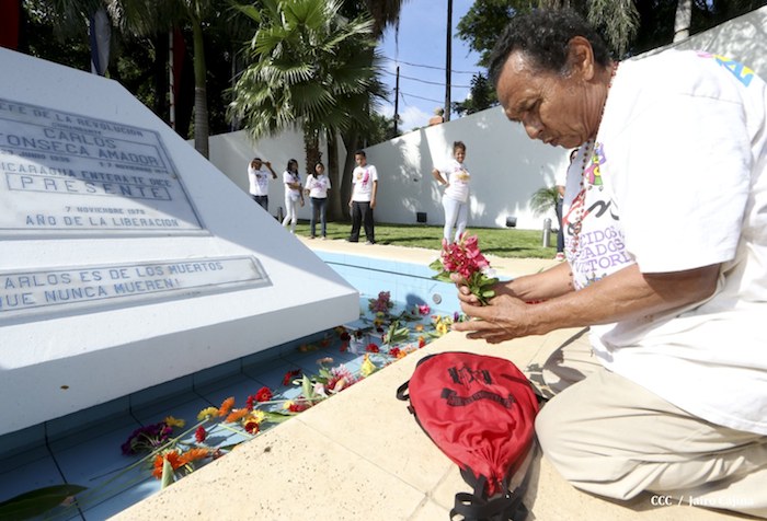 Pueblo coloca ofrendas florales en honor al Comandante Carlos Fonseca