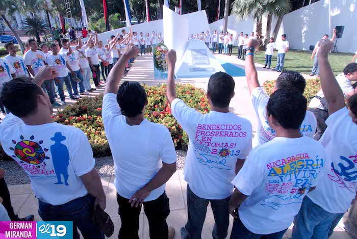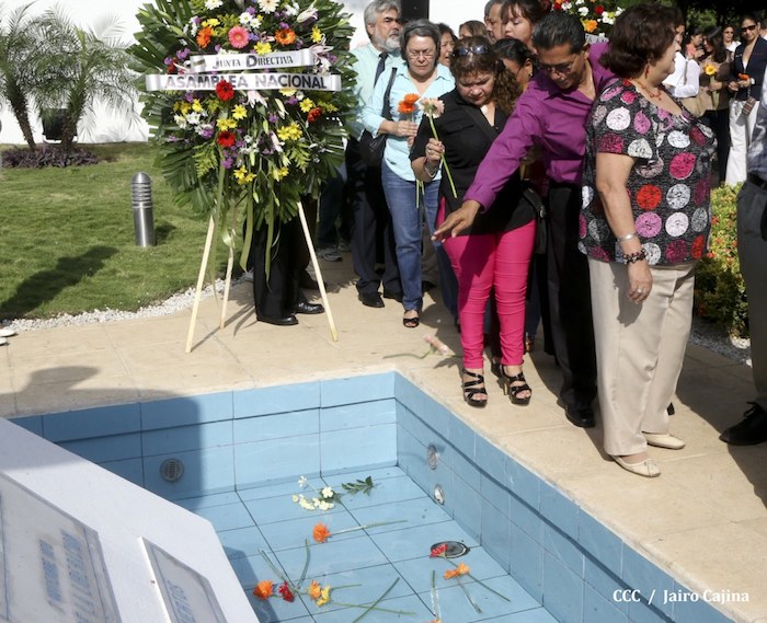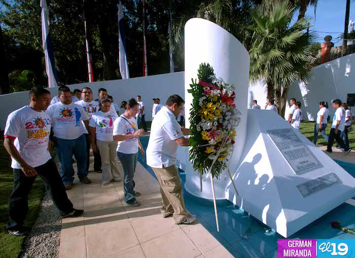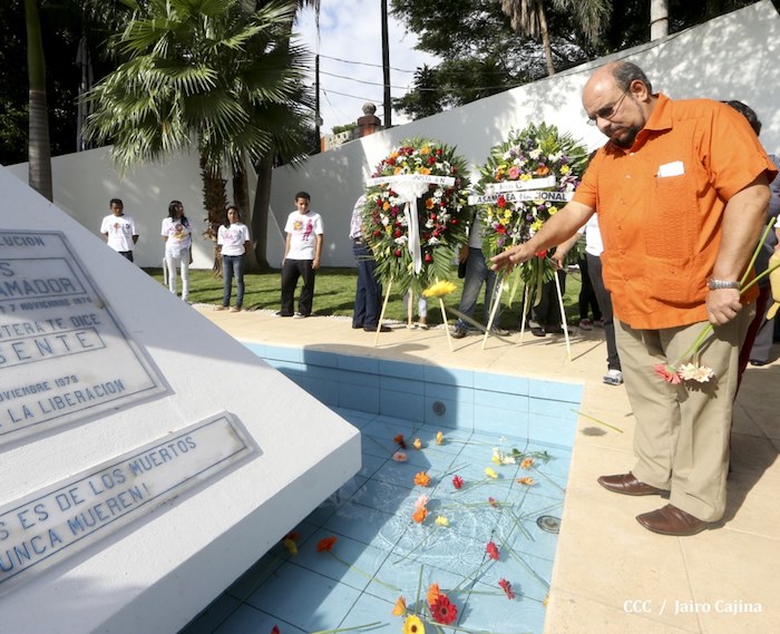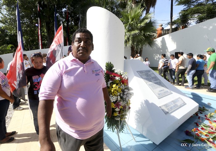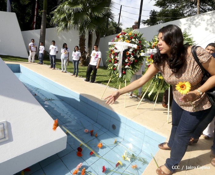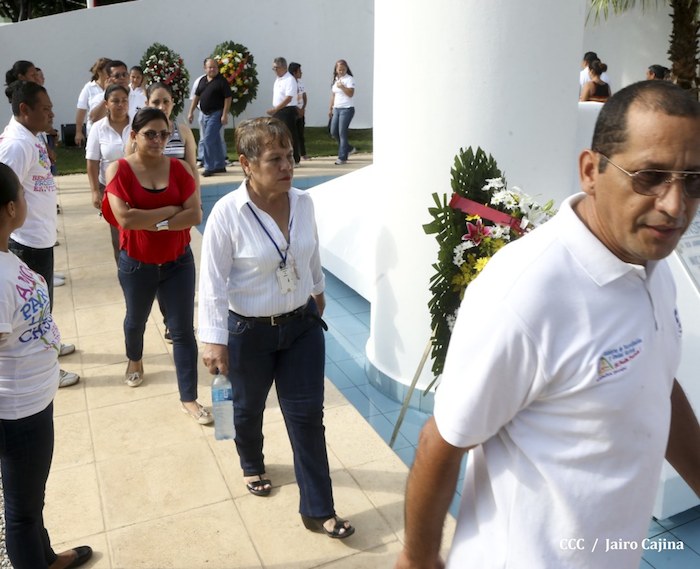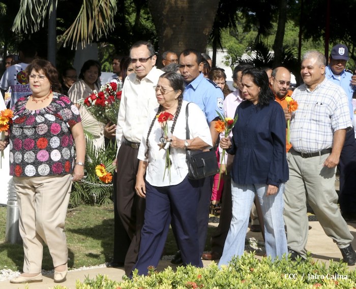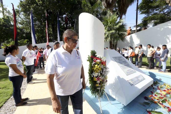 En el 37 Aniversario de su tránsito a la inmortalidad, el pueblo nicaragüense colocar ofrendas florales en su Mausoleo en la Plaza de la Revolución.
