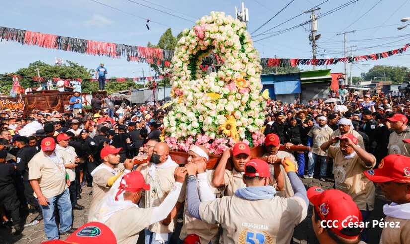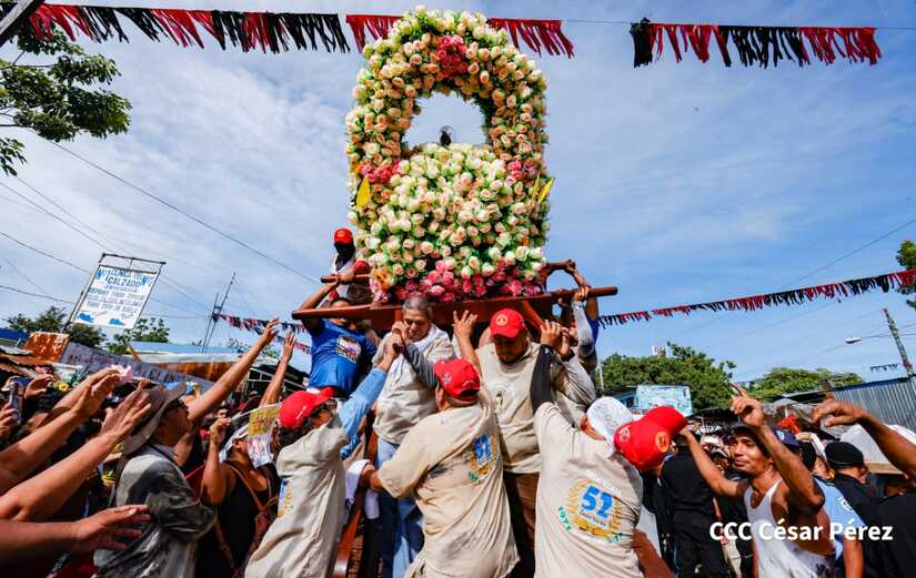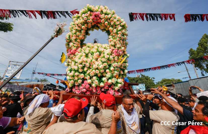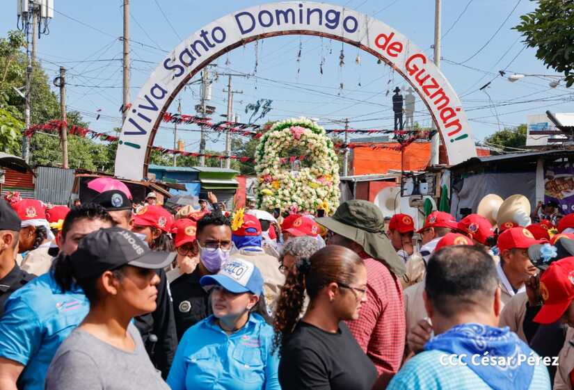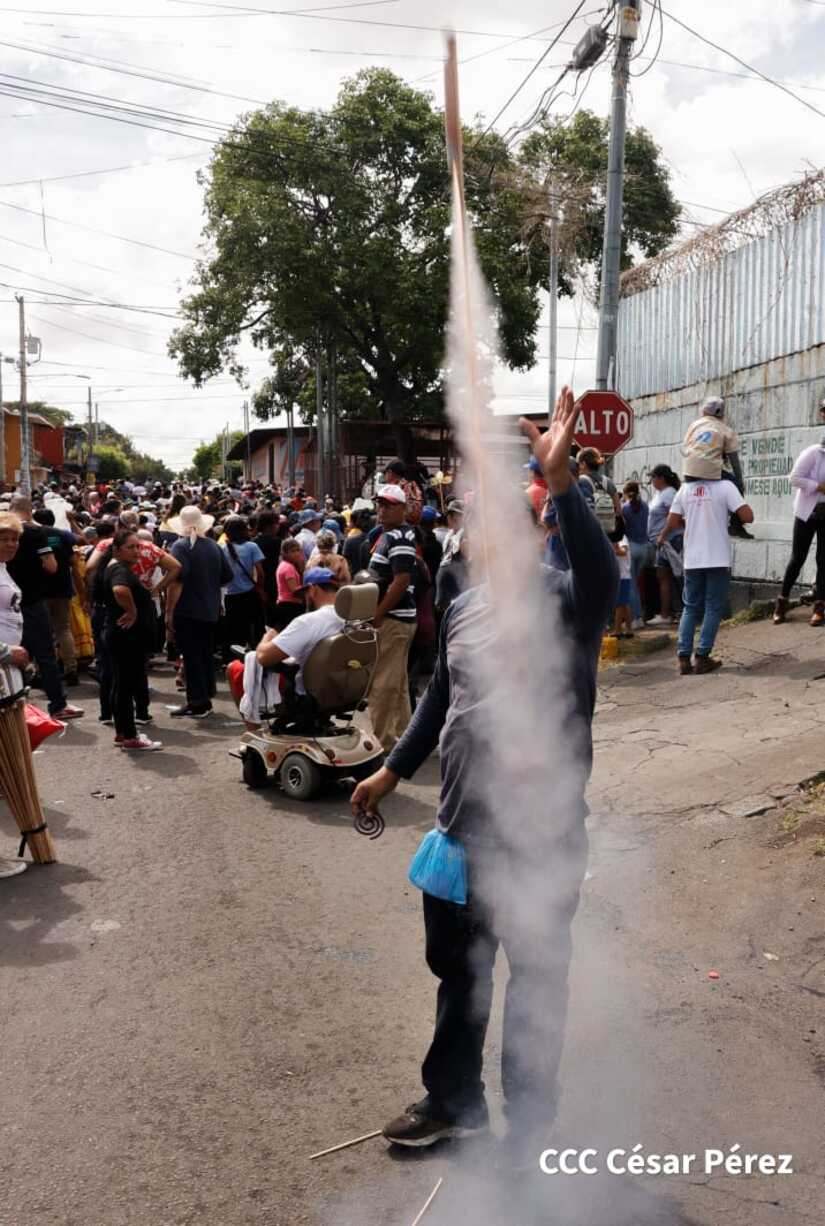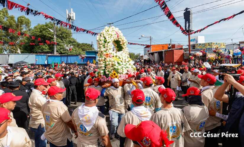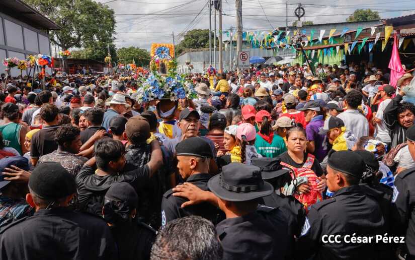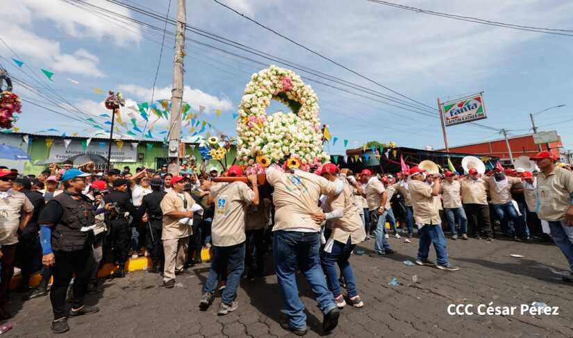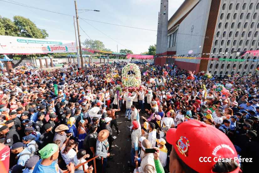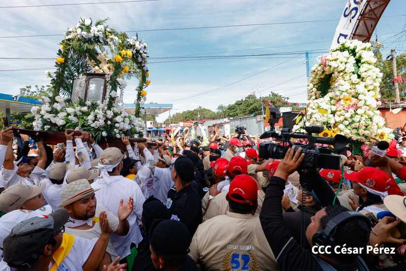 Con algarabía, bailes, filarmónicos y explosión de cohetes Santo Domingo de Guzmán, el patrono de los managuas, inició el recorrido la mañana de este 10 de agosto para regresar a la morada en Las Sierritas, tras 10 días en la capital.