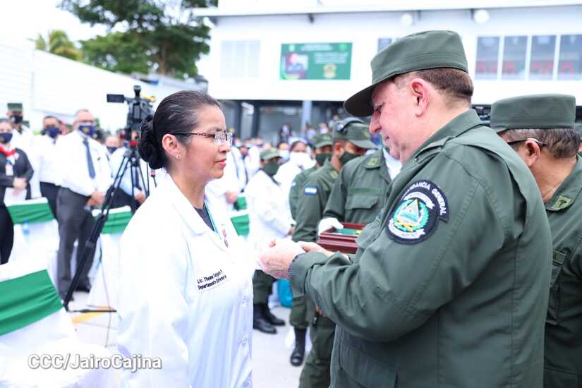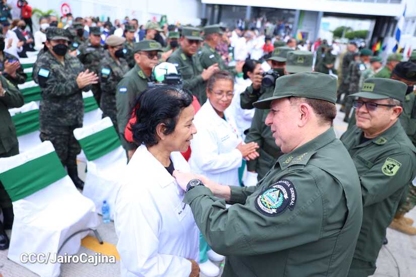 El acto que se realizó en el Hospital Militar Escuela Dr. Alejandro Dávila Bolaños, fue presidido por el Comandante en Jefe del Ejército de Nicaragua, General de Ejército, Julio César Avilés; el Jefe de Estado Mayor General, Mayor General Bayardo Ramón Rodríguez; el Inspector General, Mayor General Marvin Elías Corrales Rodríguez; Jefe del Cuerpo Médico Militar, Marco Antonio Salas Cruz, Ministra de Salud, Martha Reyes; el presidente ejecutivo del Instituto Nicaragüense de Seguridad Social (INSS), Roberto López y la Presidenta del Consejo Nacional de Universidades (CNU), maestra Ramona Rodríguez Pérez e invitados especiales.