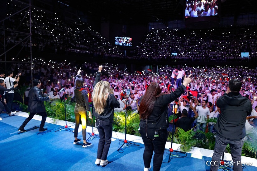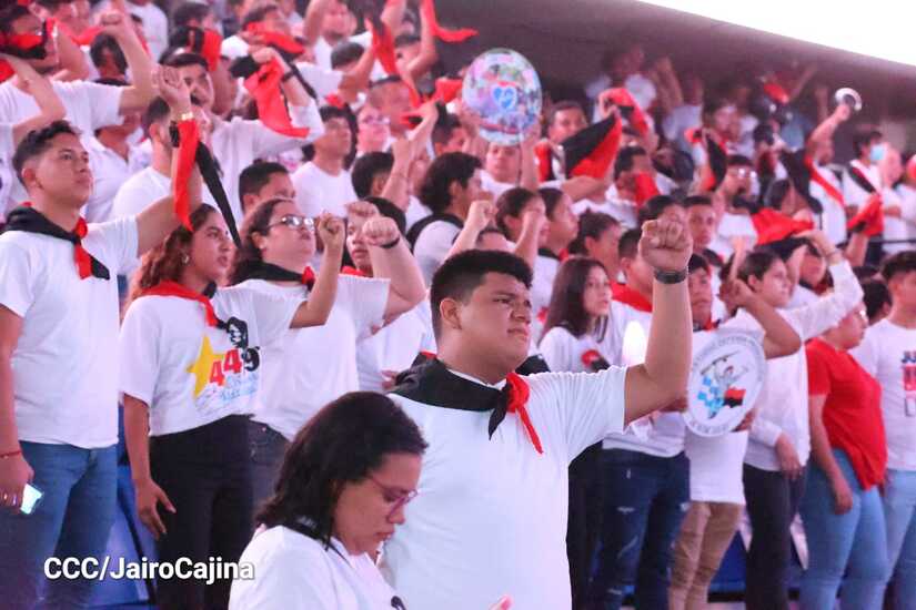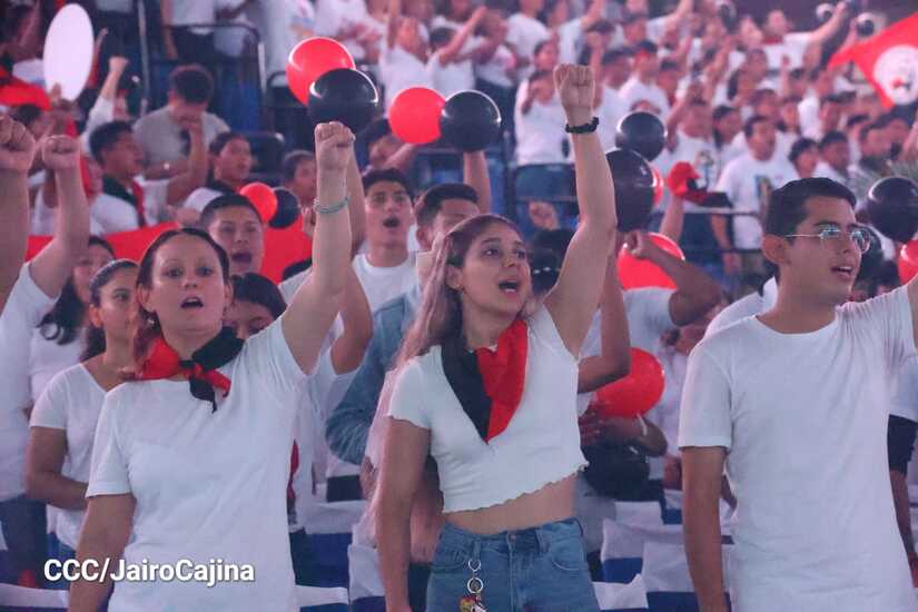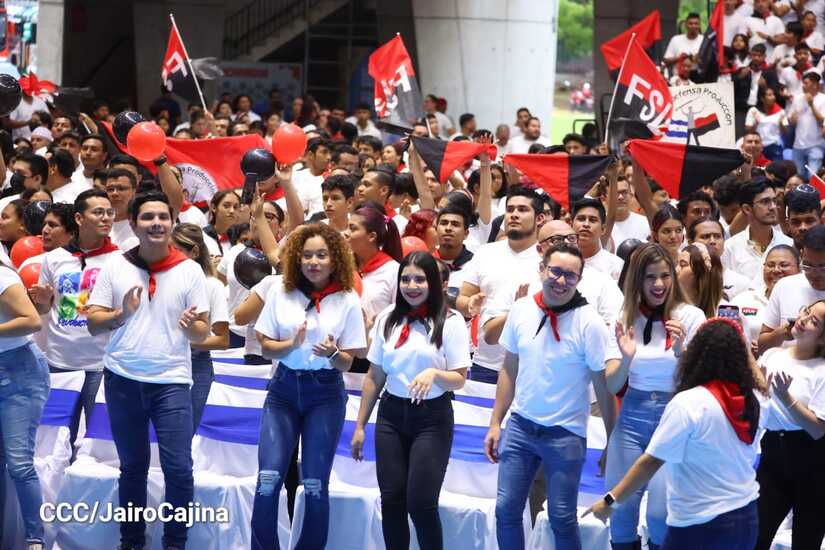 Este 23 de agosto se realizó el encuentro nacional de la Juventud Sandinista 19 de Julio. La actividad inició con un concierto de música revolucionaria, baile y la algarabía de muchachos y muchachas.