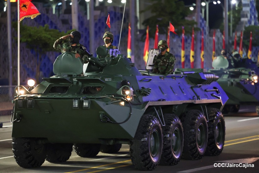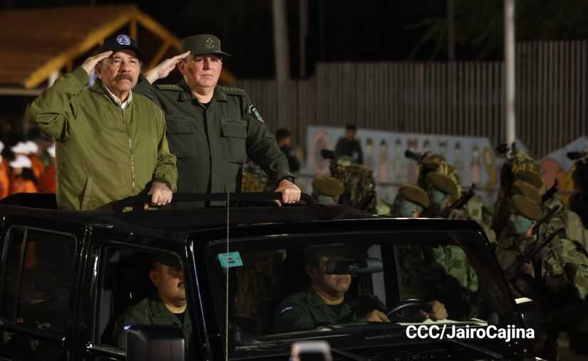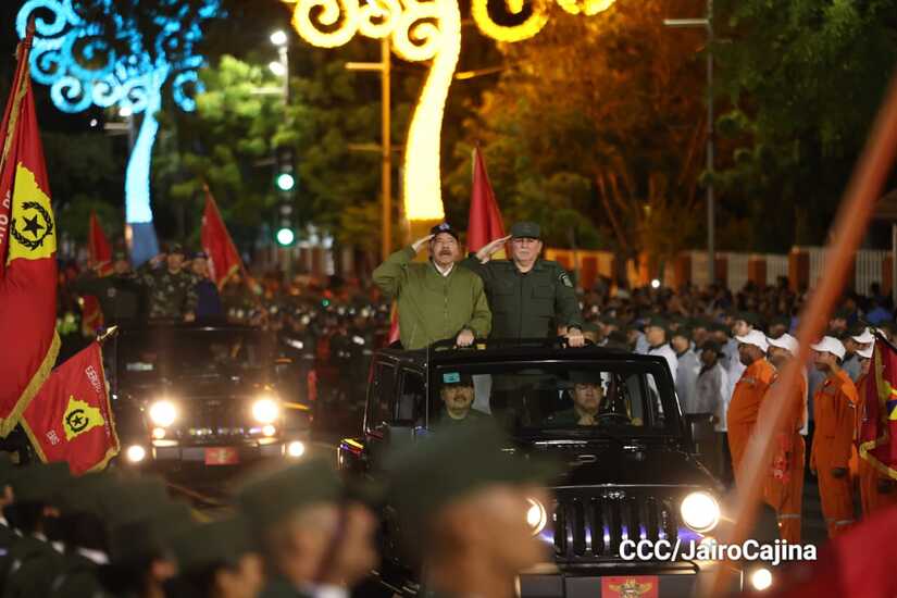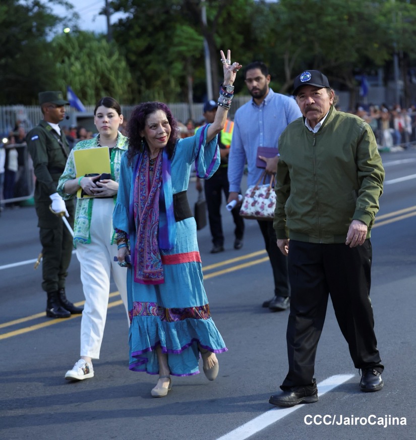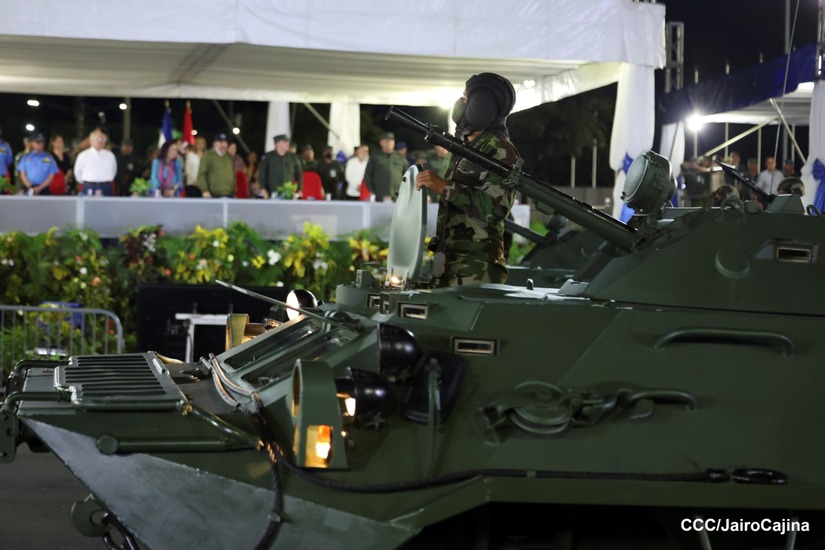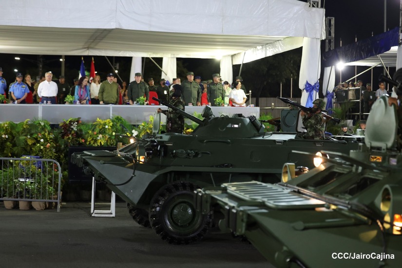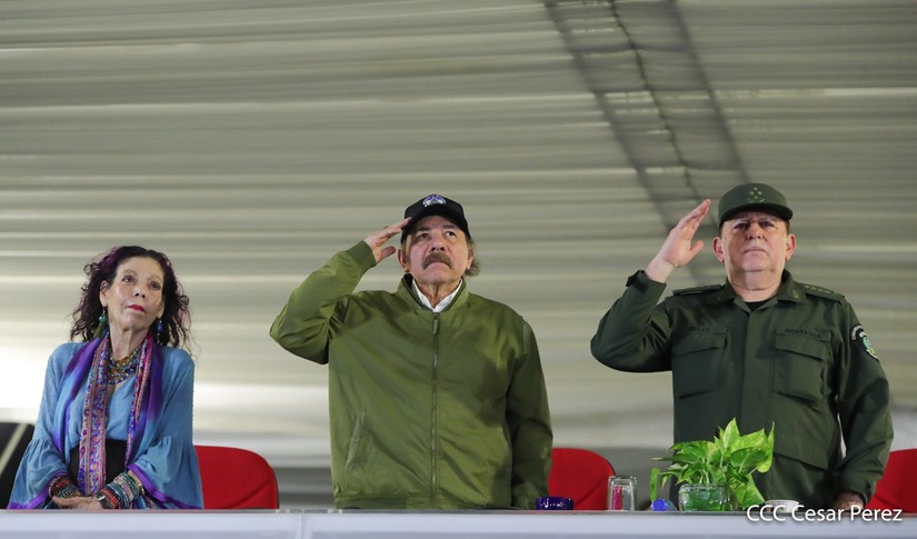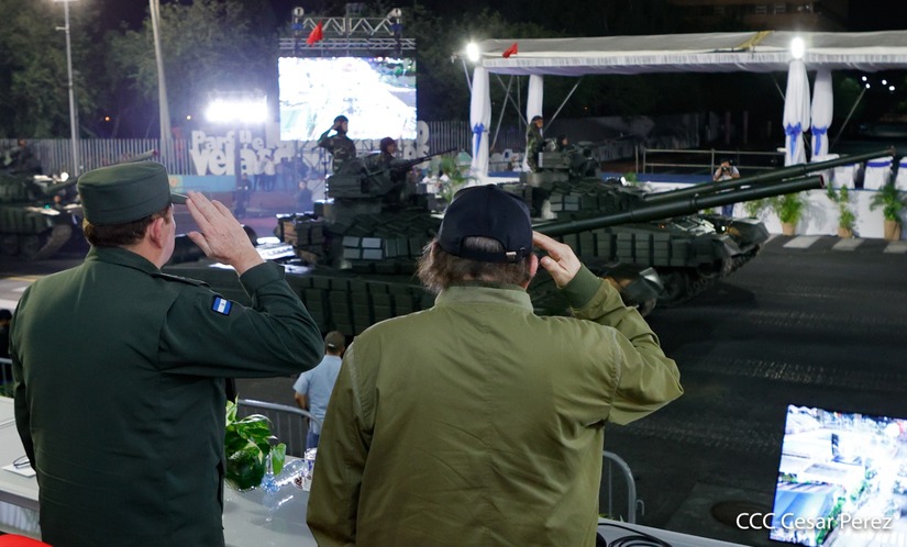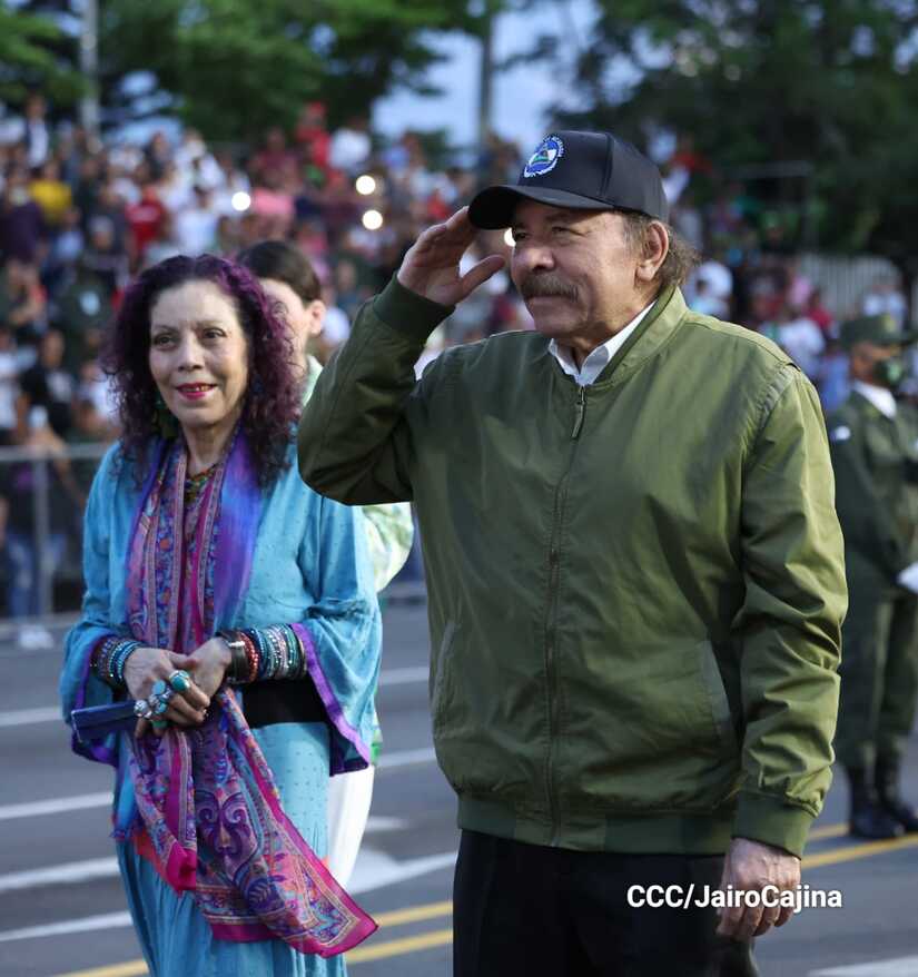 El Presidente de Nicaragua, Comandante Daniel Ortega y la Vicepresidenta Compañera Rosario Murillo participan en el Desfile Militar “Pueblo Ejército” en celebración del 44 aniversario de fundación del Ejército de Nicaragua.