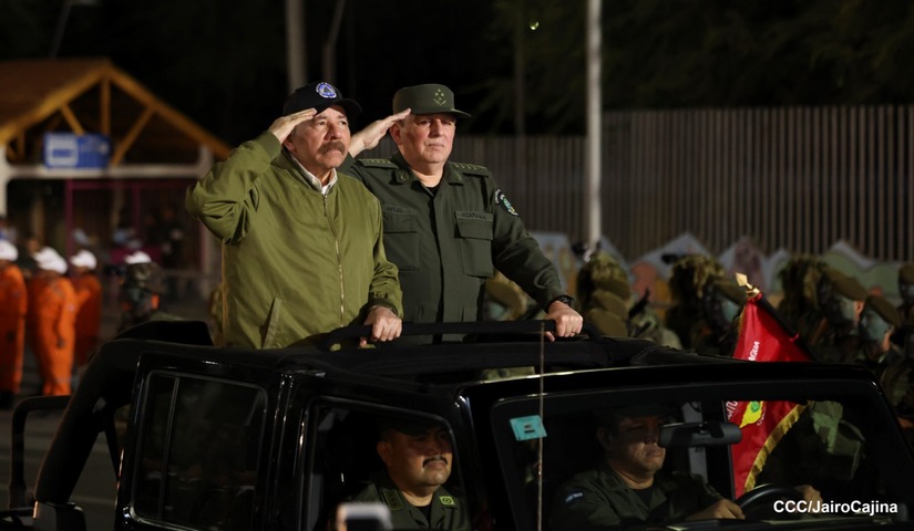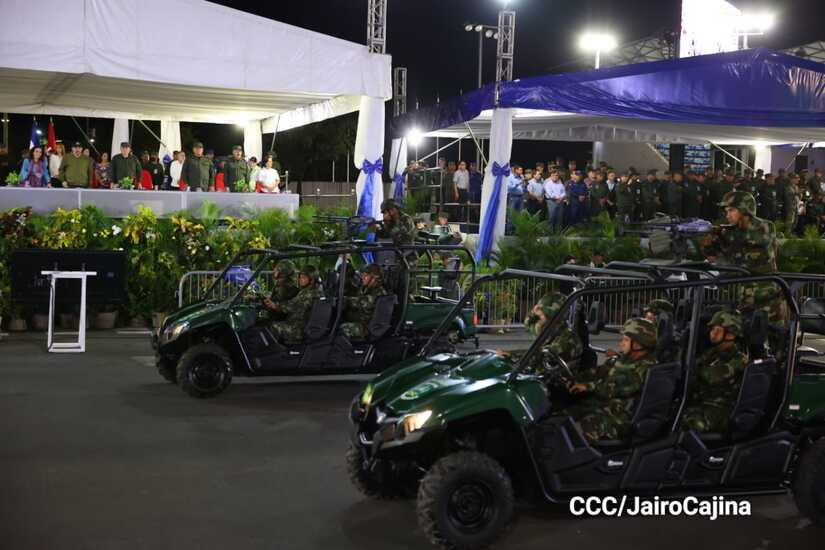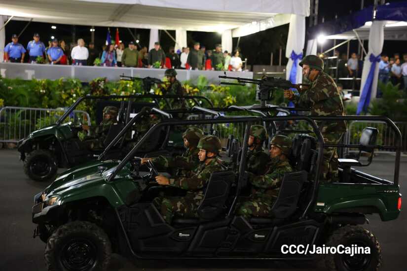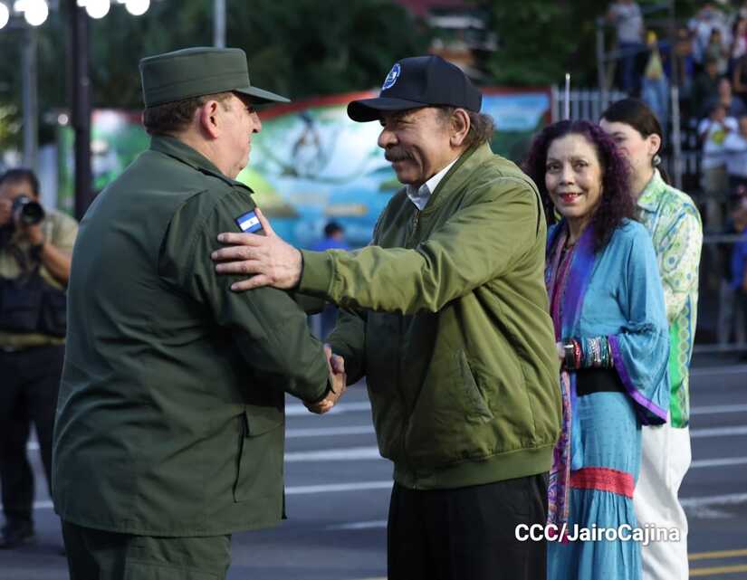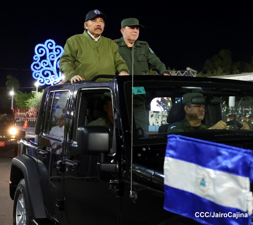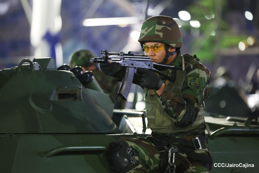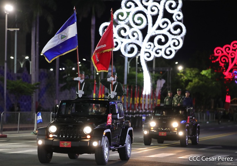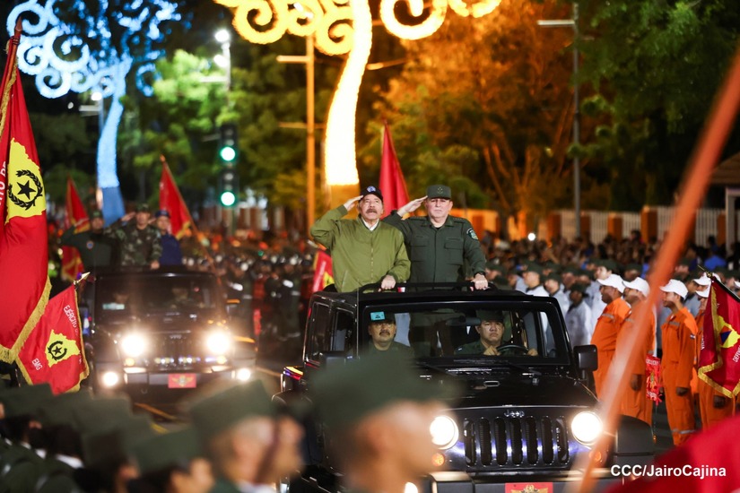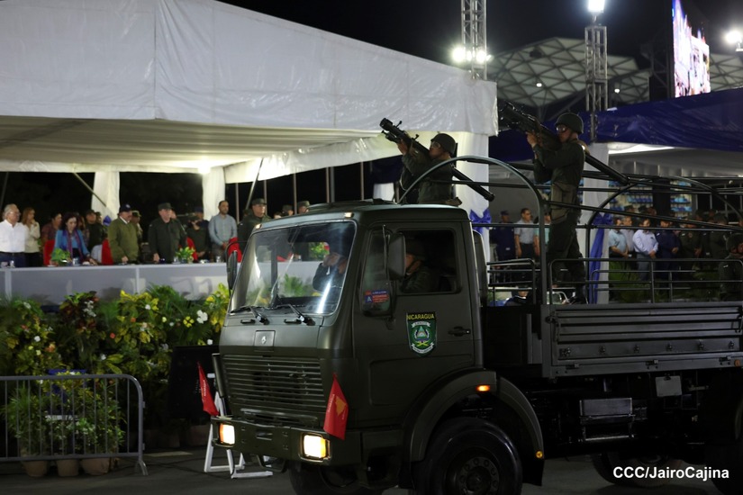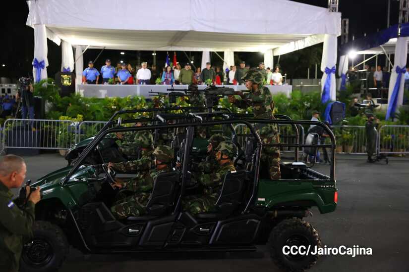 El Presidente de Nicaragua, Comandante Daniel Ortega y la Vicepresidenta Compañera Rosario Murillo participan en el Desfile Militar “Pueblo Ejército” en celebración del 44 aniversario de fundación del Ejército de Nicaragua.