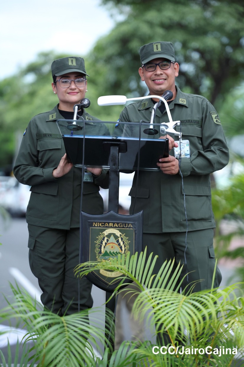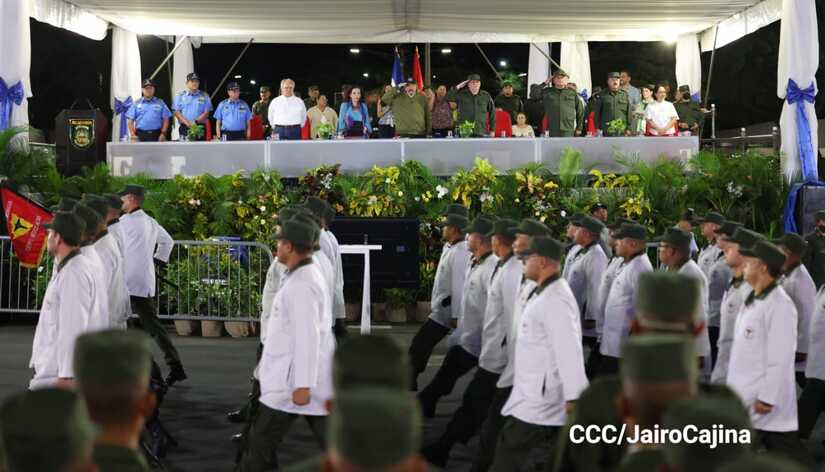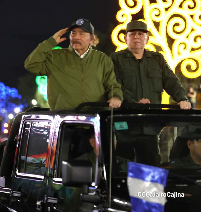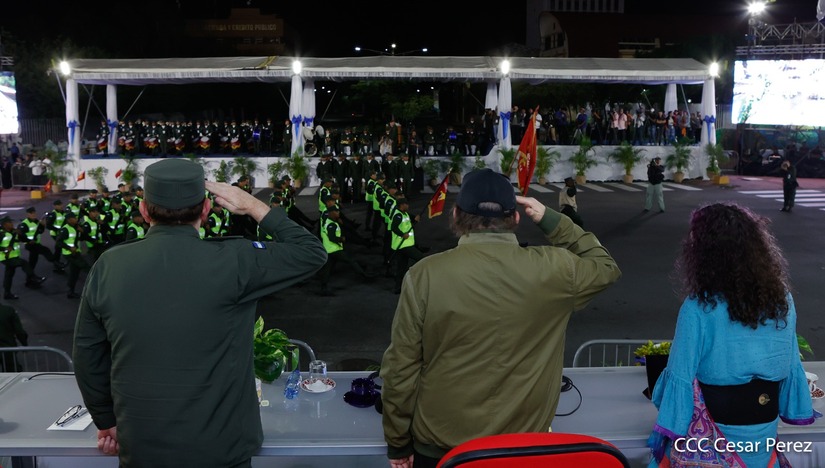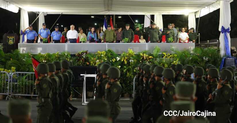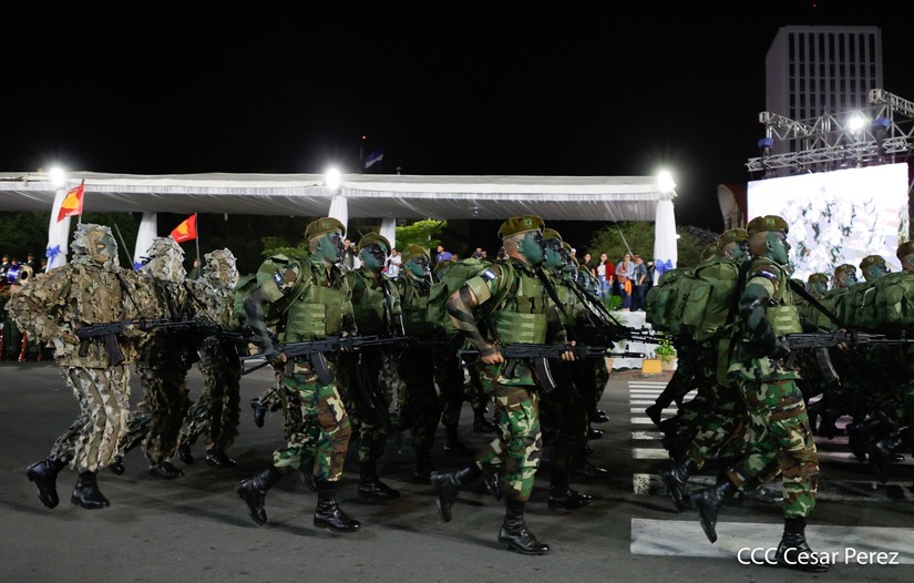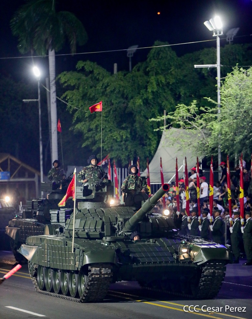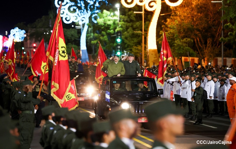 El Presidente de Nicaragua, Comandante Daniel Ortega y la Vicepresidenta Compañera Rosario Murillo participan en el Desfile Militar “Pueblo Ejército” en celebración del 44 aniversario de fundación del Ejército de Nicaragua.