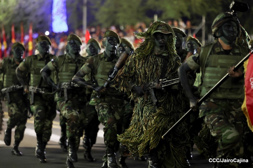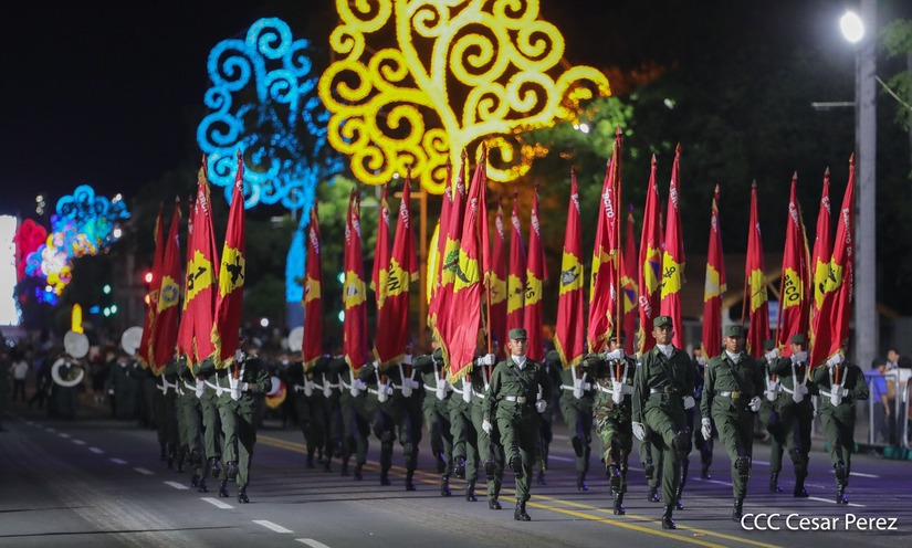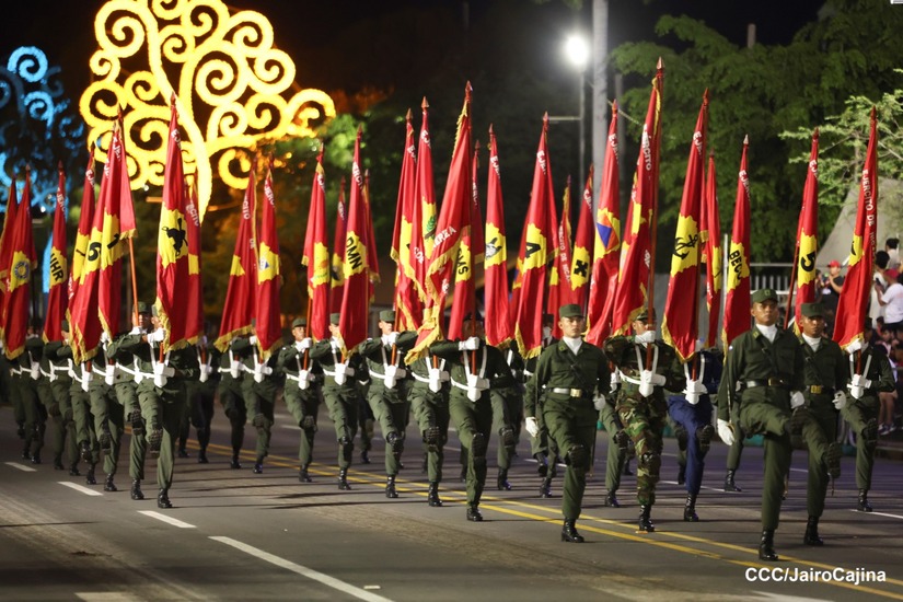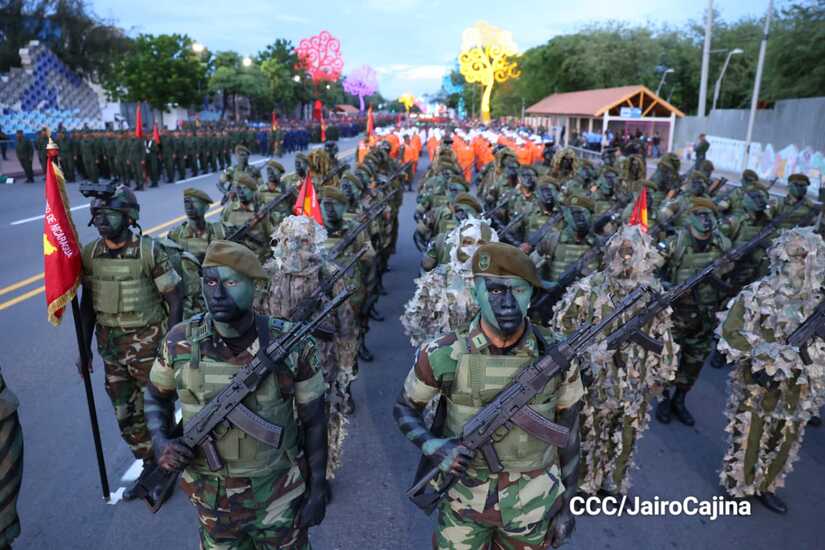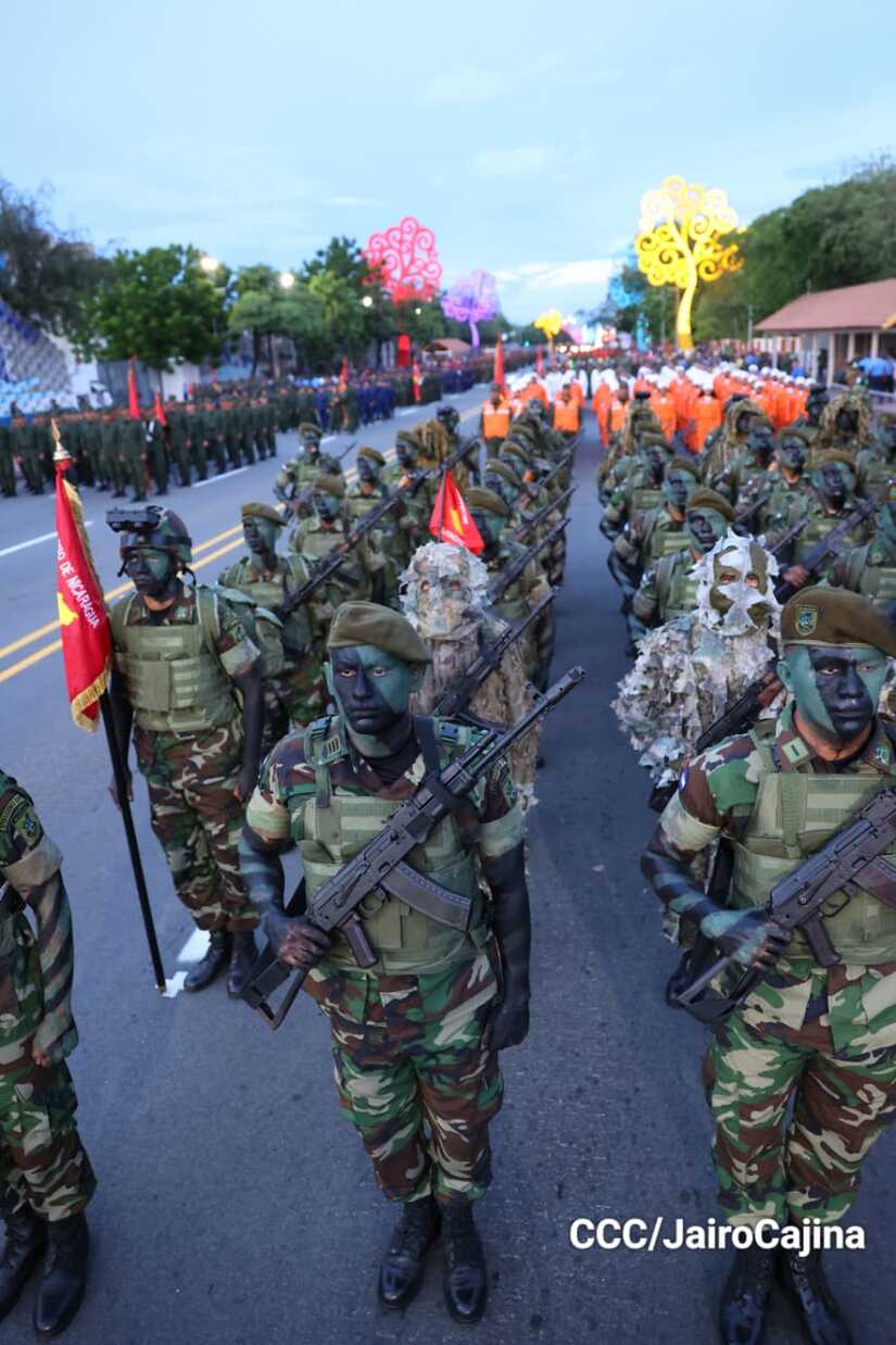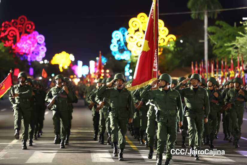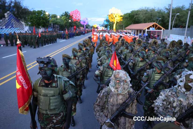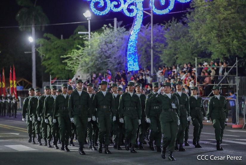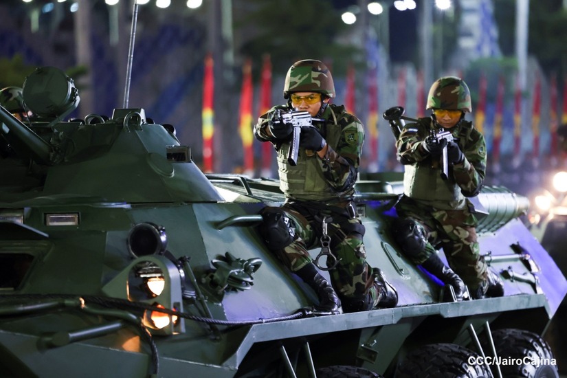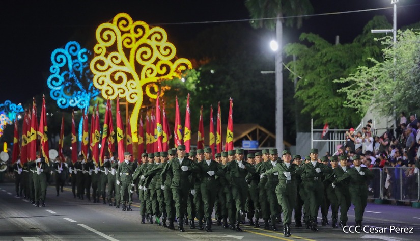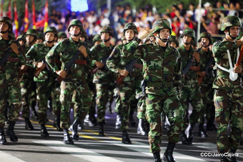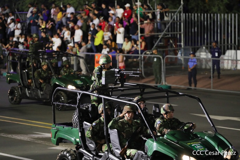 El Desfile Militar “Pueblo Ejército” se realiza desde la Avenida de Bolívar a Chávez, en donde las familias aprecian los diferentes componentes y bloques del Ejército de Nicaragua.
