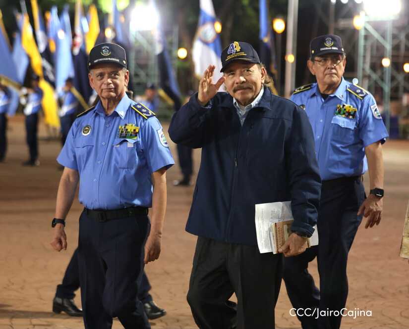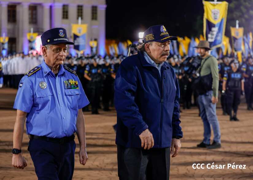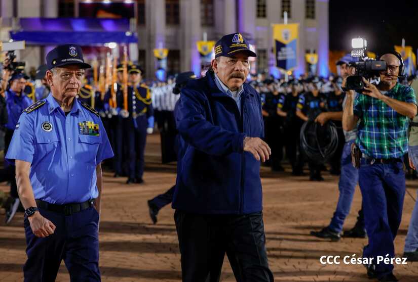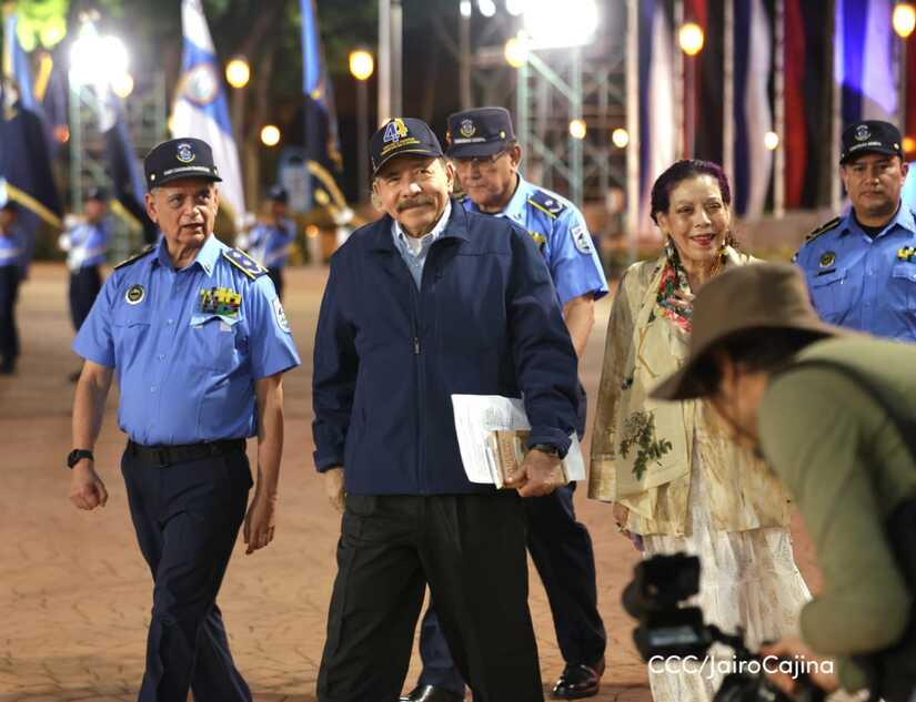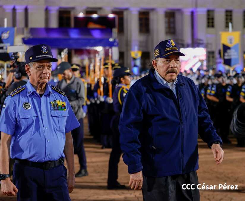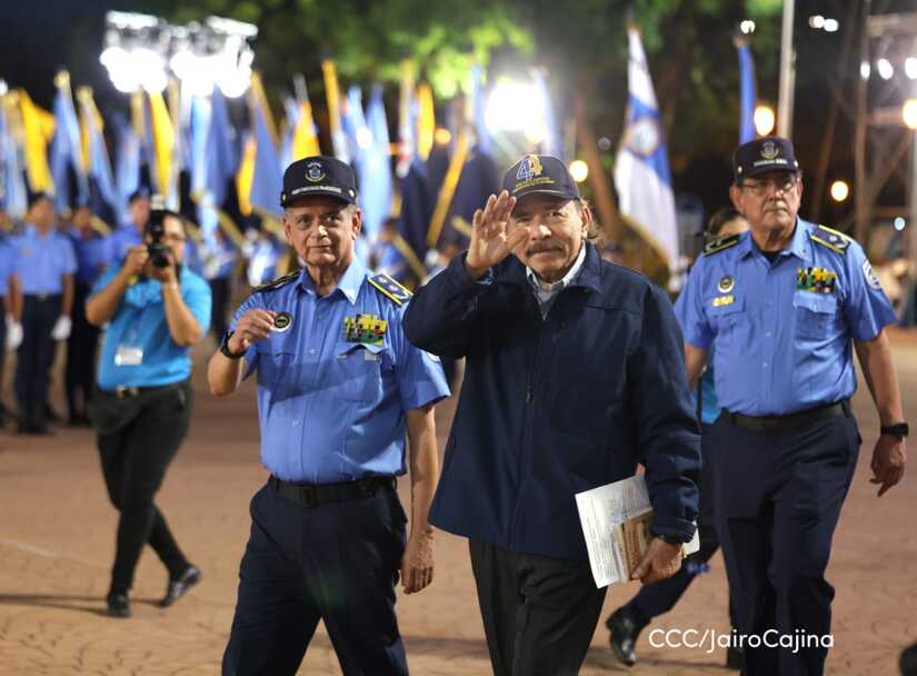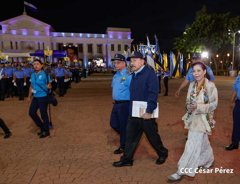 El Presidente de la República, Comandante Daniel Ortega Saavedra, y la Vicepresidenta compañera Rosario Murillo, encabezaron este lunes 11 de septiembre, el acto del 44 aniversario de la fundación de la Policía Nacional en la Plaza de la Revolución.