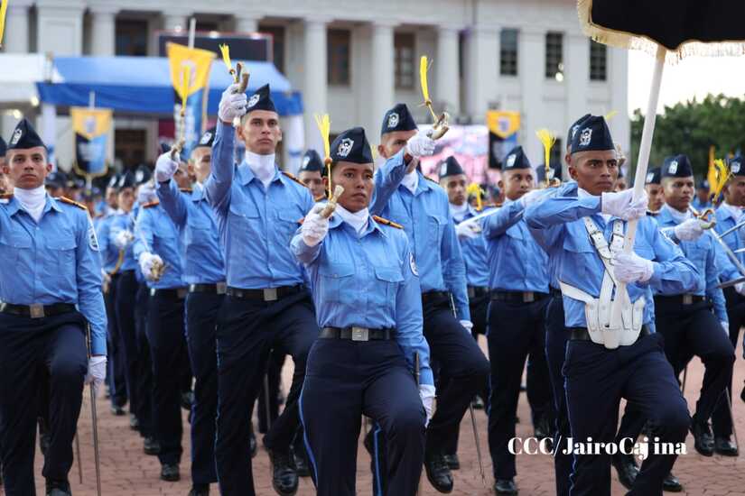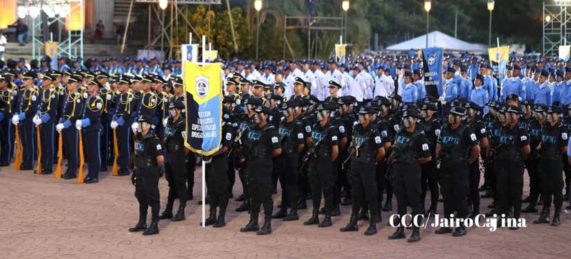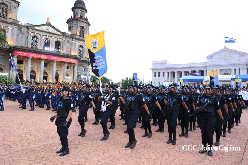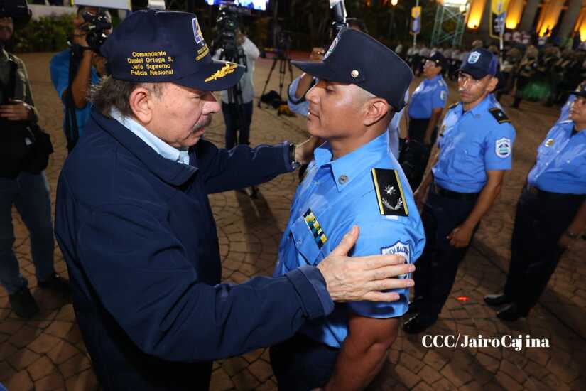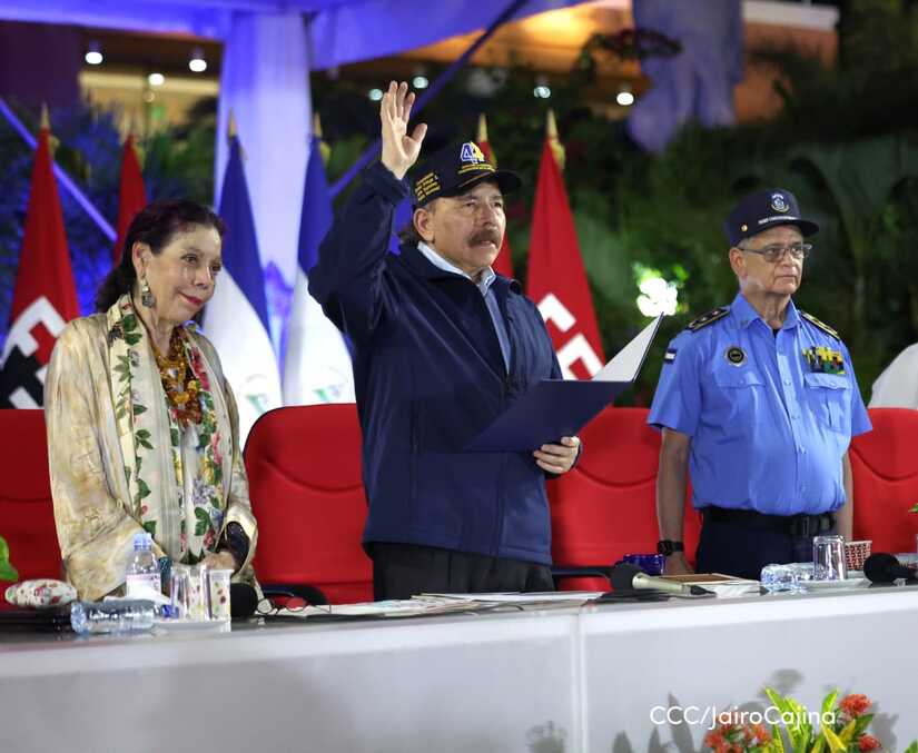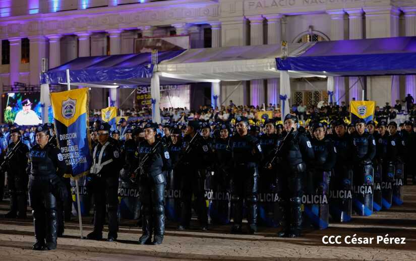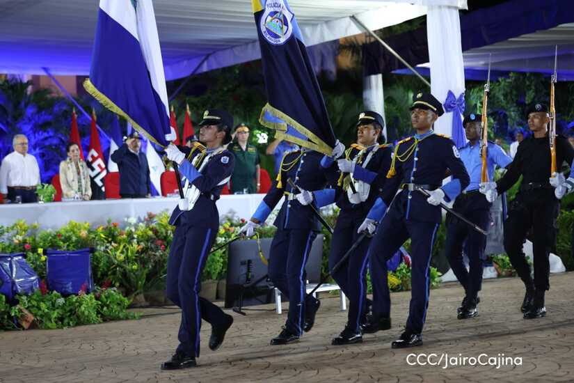 El Presidente de la República, Comandante Daniel Ortega Saavedra, y la Vicepresidenta compañera Rosario Murillo, encabezaron este lunes 11 de septiembre, el acto del 44 aniversario de la fundación de la Policía Nacional en la Plaza de la Revolución.