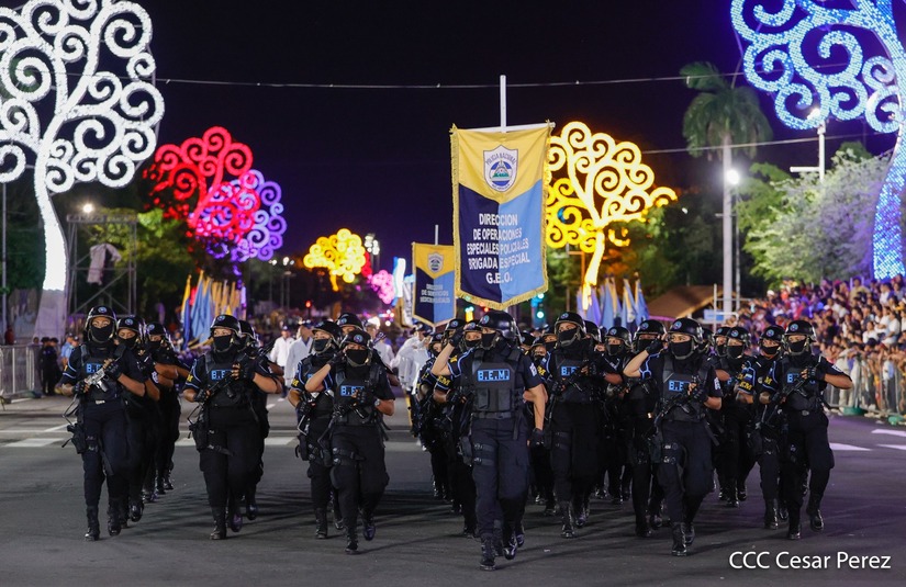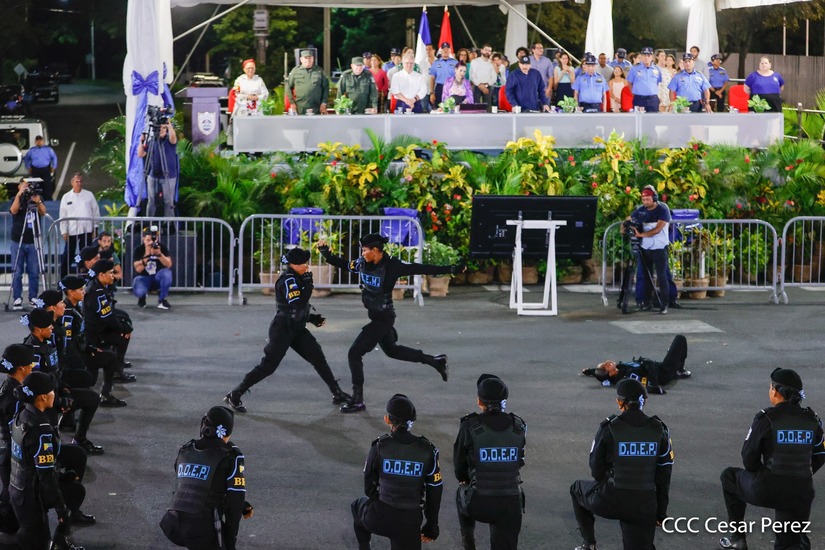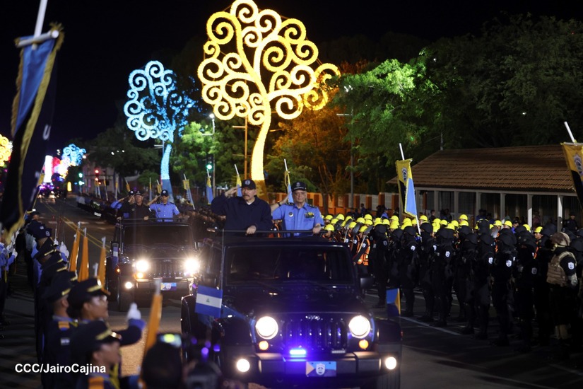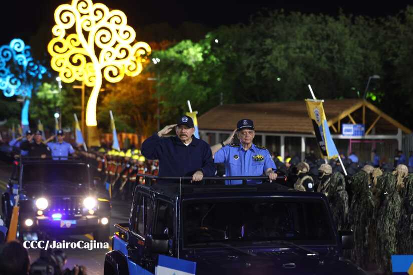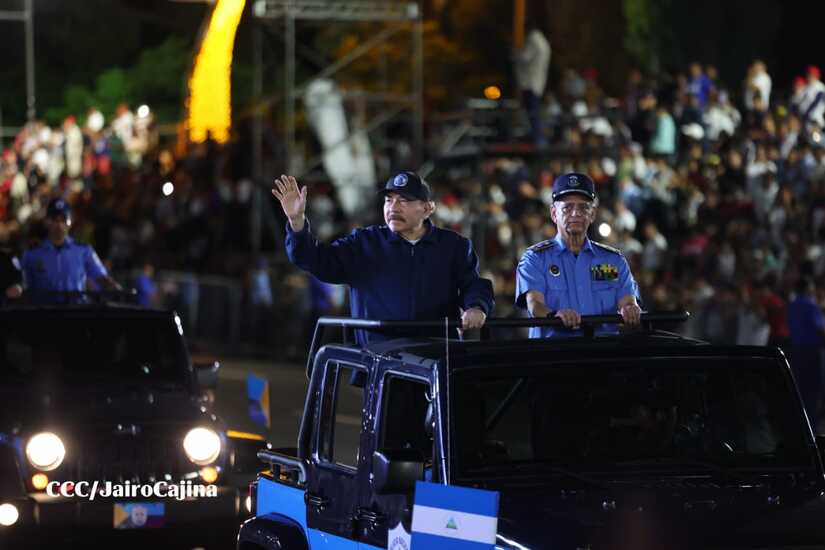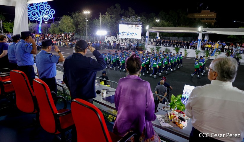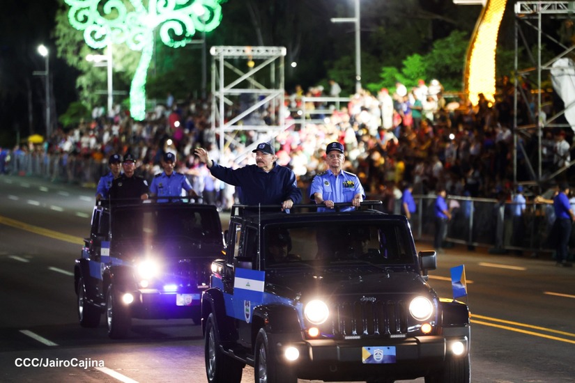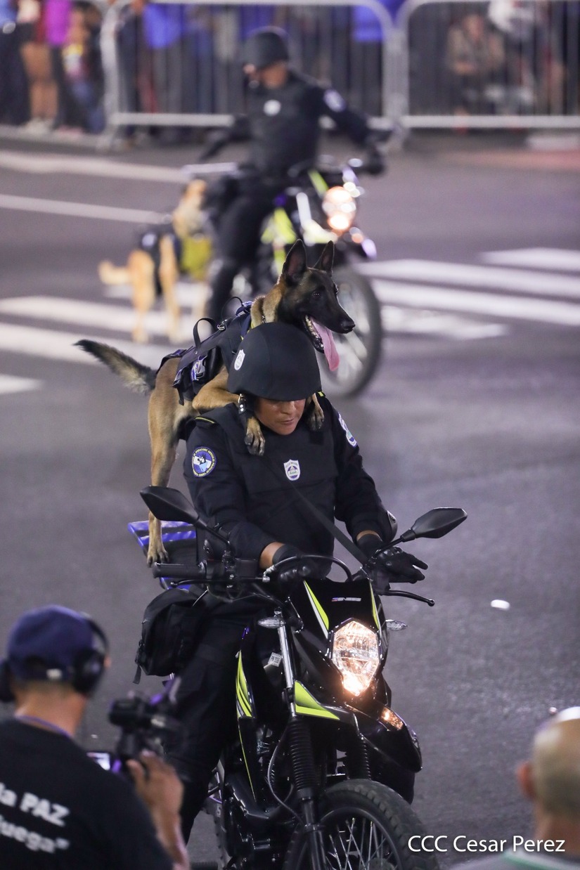 Este 12 de septiembre el Presidente de Nicaragua Comandante Daniel Ortega y la Vicepresidenta Compañera Rosario Murillo, participaron en el Desfile Policial "Con la Paz No se Juega" en saludo al 44 aniversario de fundación de la Policía Nacional, celebrado en la Avenida de Bolívar a Chávez.