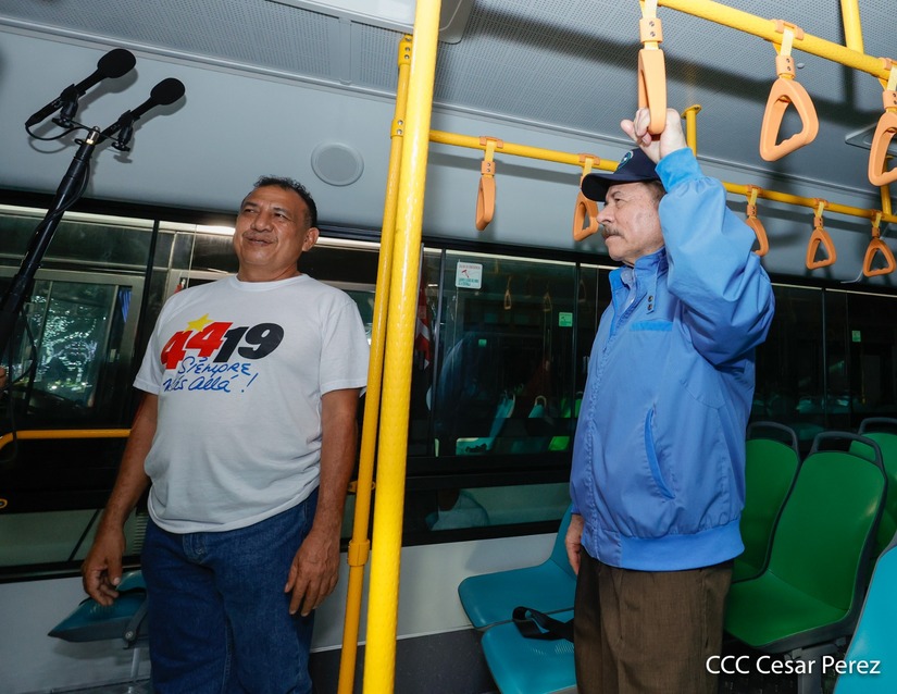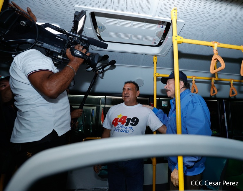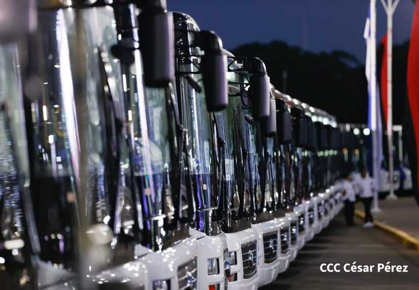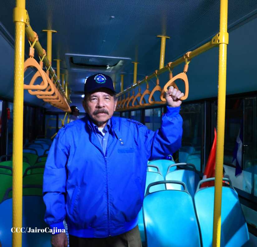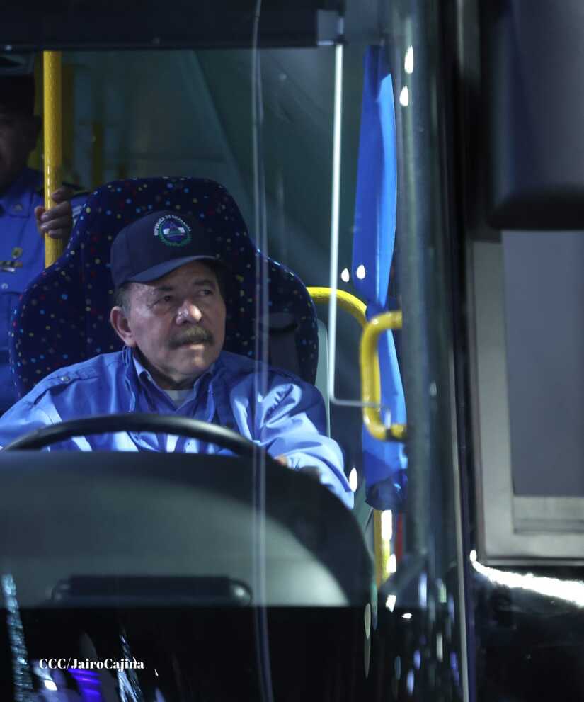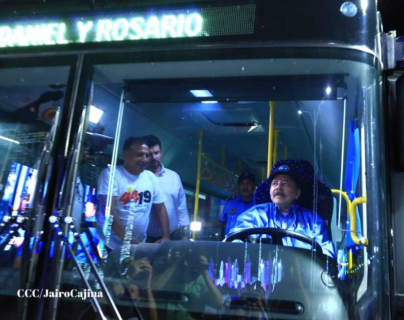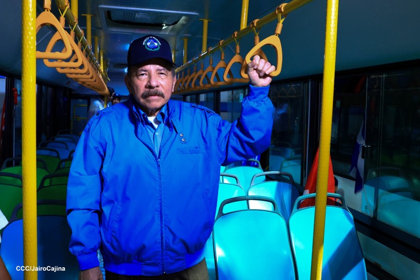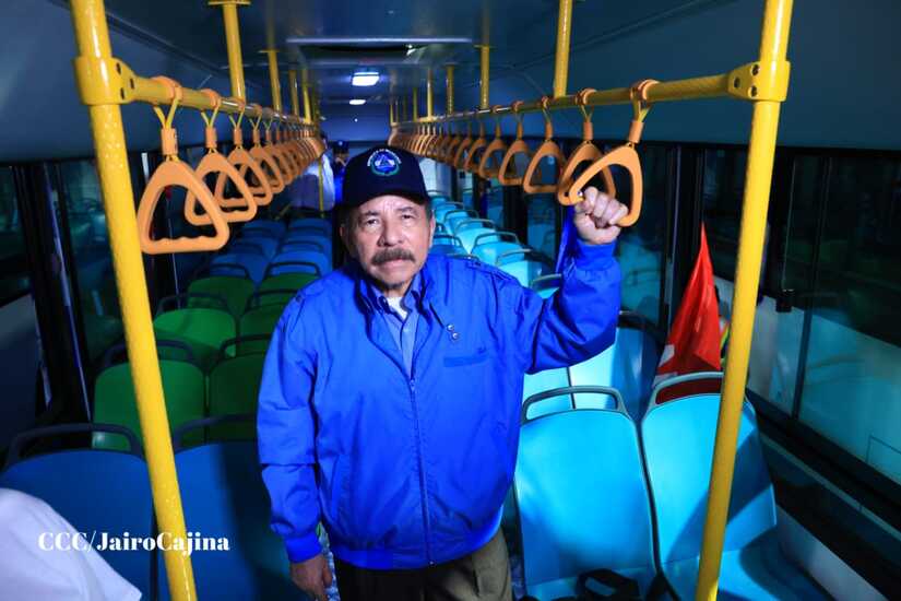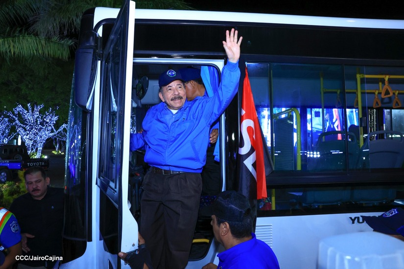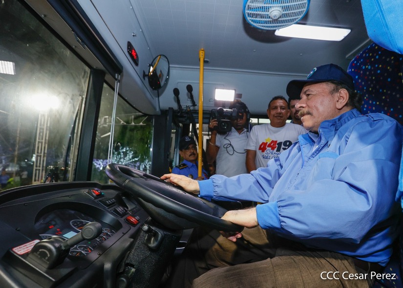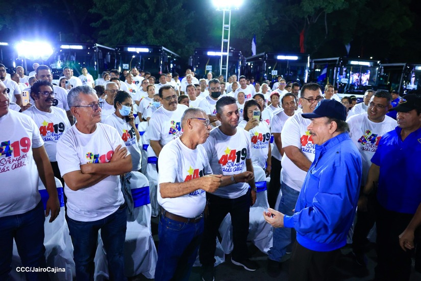 El Presidente de la República, Comandante Daniel Ortega y la Vicepresidenta Compañera Rosario Murillo, presiden el acto en donde se realiza la entrega de los 250 autobuses provenientes de la República Popular China a transportistas de Managua y Ciudad Sandino.