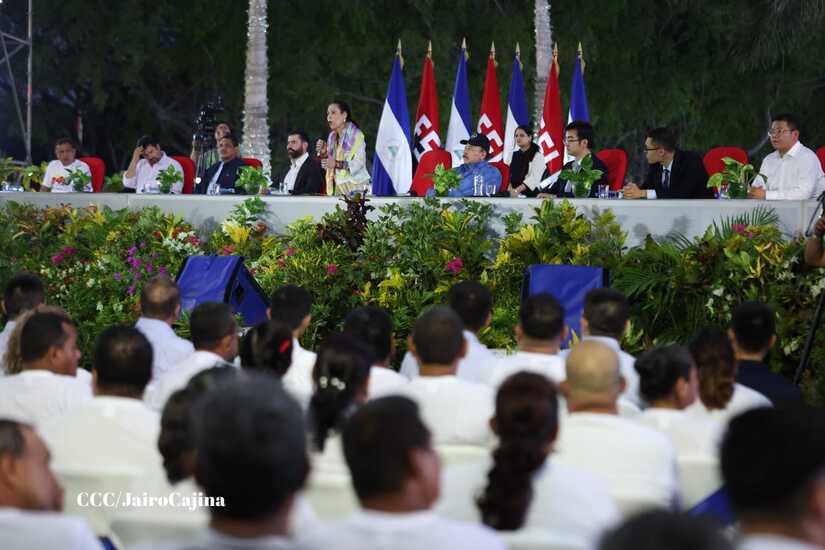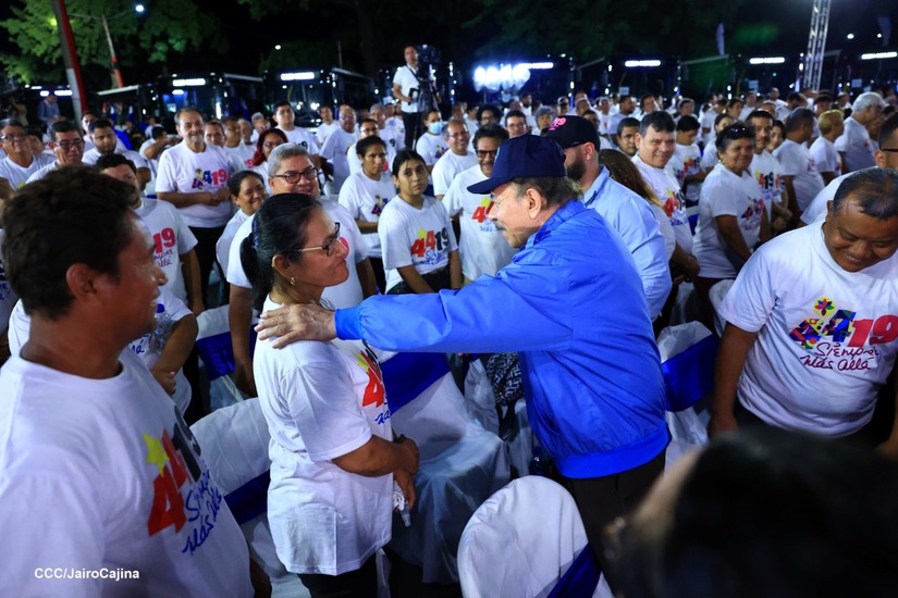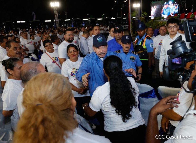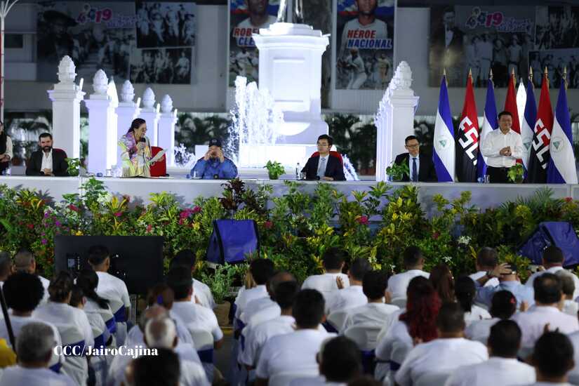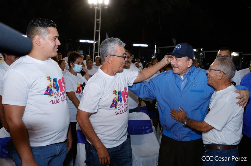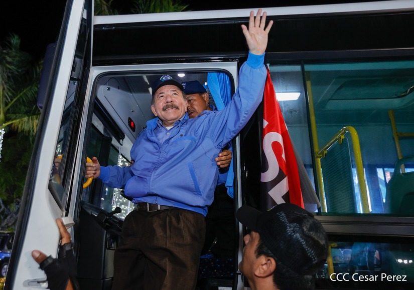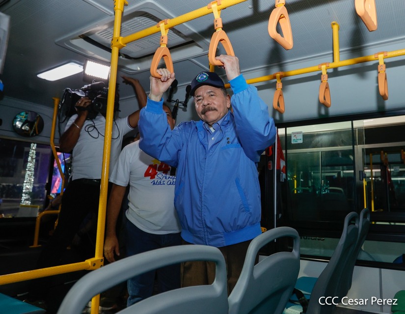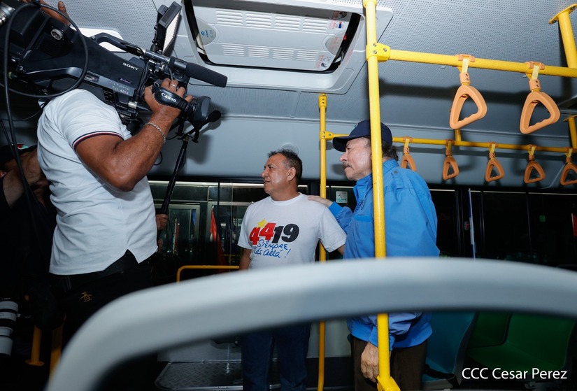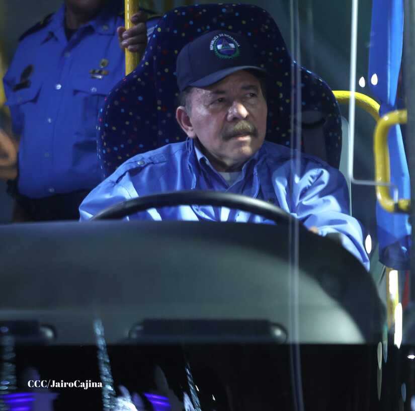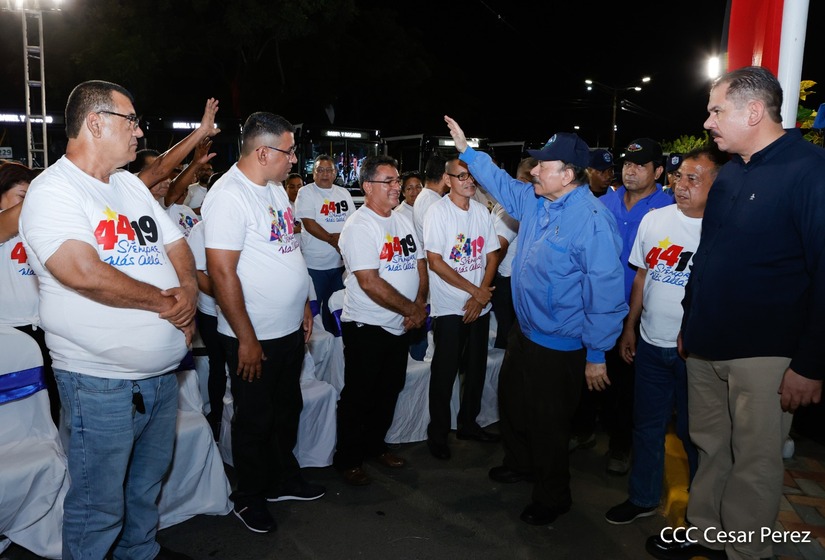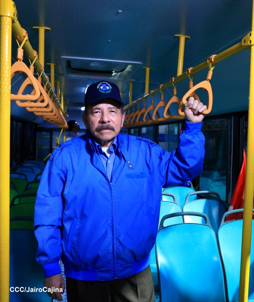 El Presidente de la República, Comandante Daniel Ortega y la Vicepresidenta Compañera Rosario Murillo, presiden el acto en donde se realiza la entrega de los 250 autobuses provenientes de la República Popular China a transportistas de Managua y Ciudad Sandino.