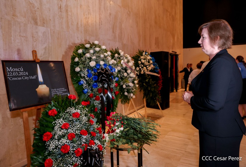 En el Salón de los Cristales del Teatro Nacional Rubén Darío se llevó a cabo un homenaje en solidaridad con el Pueblo y Gobierno de la Federación de Rusia, por las víctimas y lesionados que cobró el atentado terrorista en el Crocus City Hall en Moscú.