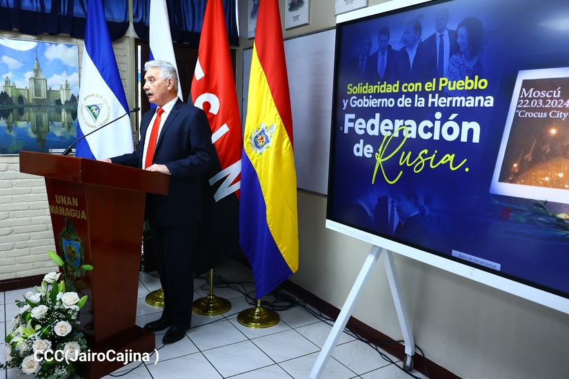 Representantes del Gobierno de Reconciliación y Unidad Nacional y sus instituciones muestran su solidaridad en memoria de las víctimas del atentado terrorista en el Crocus City Hall en Moscú.